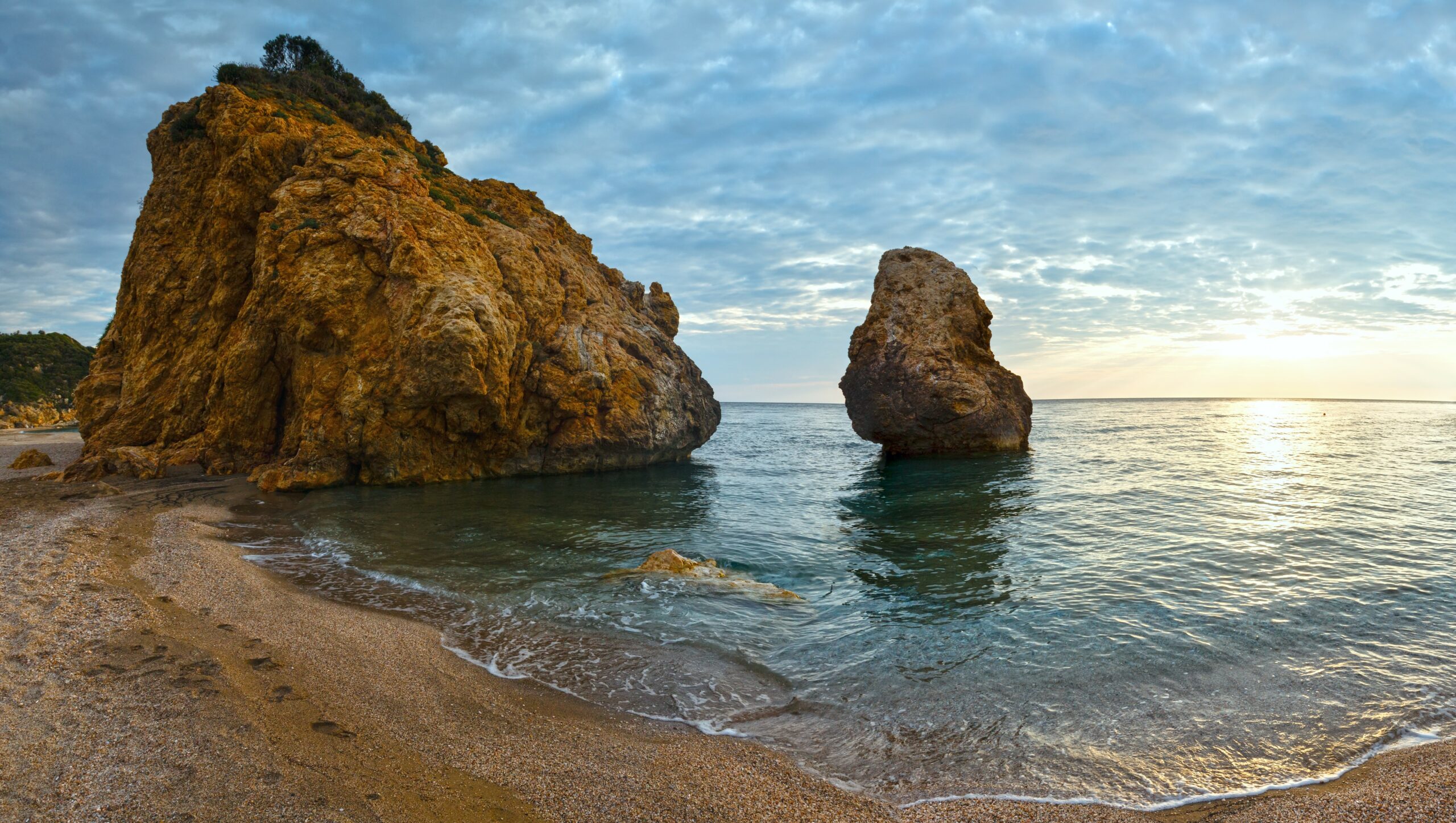 Ξεμπερδέψαμε γρήγορα με τις γεωγραφικές λεπτομέρειες ώστε να ασχοληθούμε με το «ψητό», δηλαδή την ίδια την παραλία. Πλησιάζοντας προς την ακτή θα εντυπωσιαστείτε από το φυσικό τοπίο. Μία αμμουδιά με μήκος που ξεπερνά το 1 χιλιόμετρο με τους μεγάλους βράχους μέσα στη θάλασσα στη μέση να οριοθετούν τον χώρο, π.χ. αν ψάχνετε ένα σημείο συνάντησης με την παρέα σας. Οι βράχοι αποτελούν και τον καλύτερο καμβά για ωραίες φωτογραφικές στιγμές ή βατήρας για βουτιές για τους τολμηρότερους.