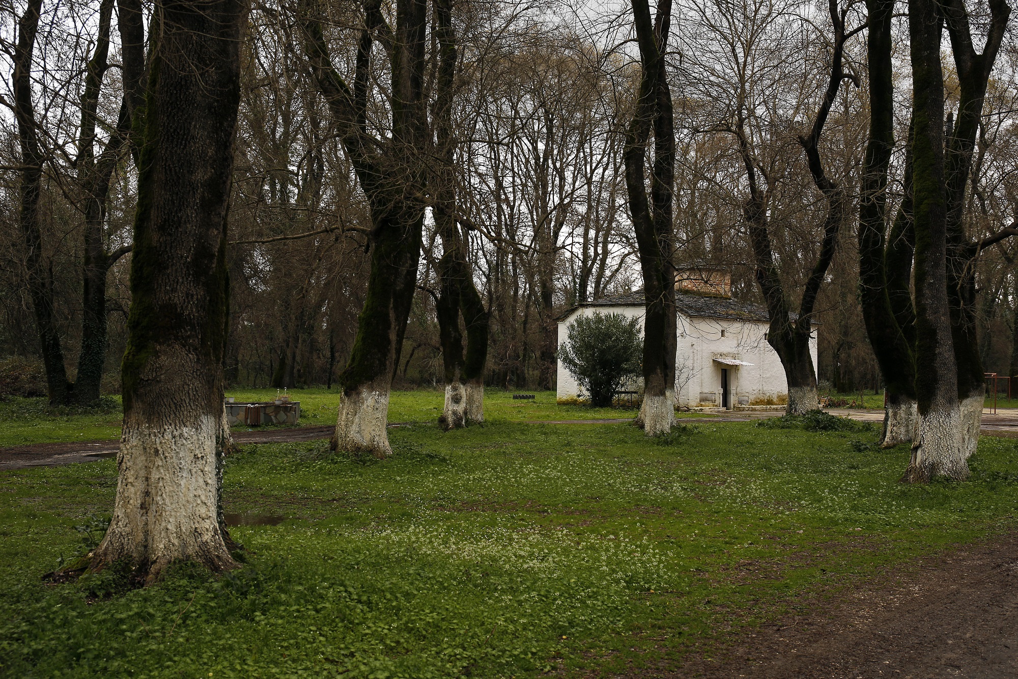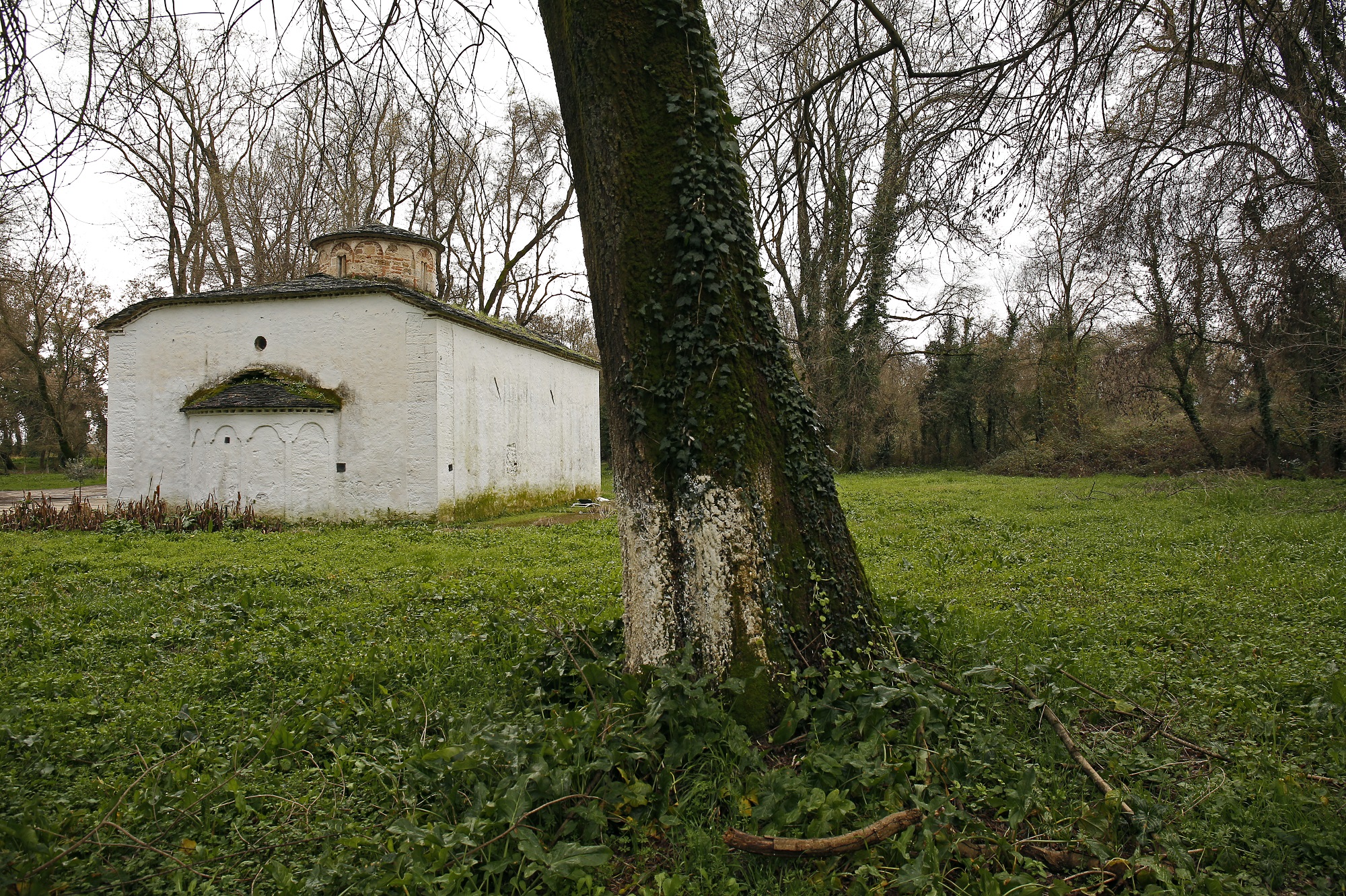 Διότι το παρόχθιο δάσος είναι αυτό ακριβώς: μια απροσδόκητη όαση γαλήνης και ησυχίας, γεμάτη θροΐσματα φύλλων και τιτιβίσματα πουλιών. Πλατάνια, ασημόλευκες, σκλήθρα παντού, ενώ σε ένα ξέφωτο στη μέση των δέντρων προβάλλει το έρημο εκκλησάκι του Αγίου Βαρνάβα, το οποίο πρωτοθεμελιώθηκε το 1149, καταστράφηκε και ξαναχτίστηκε.
