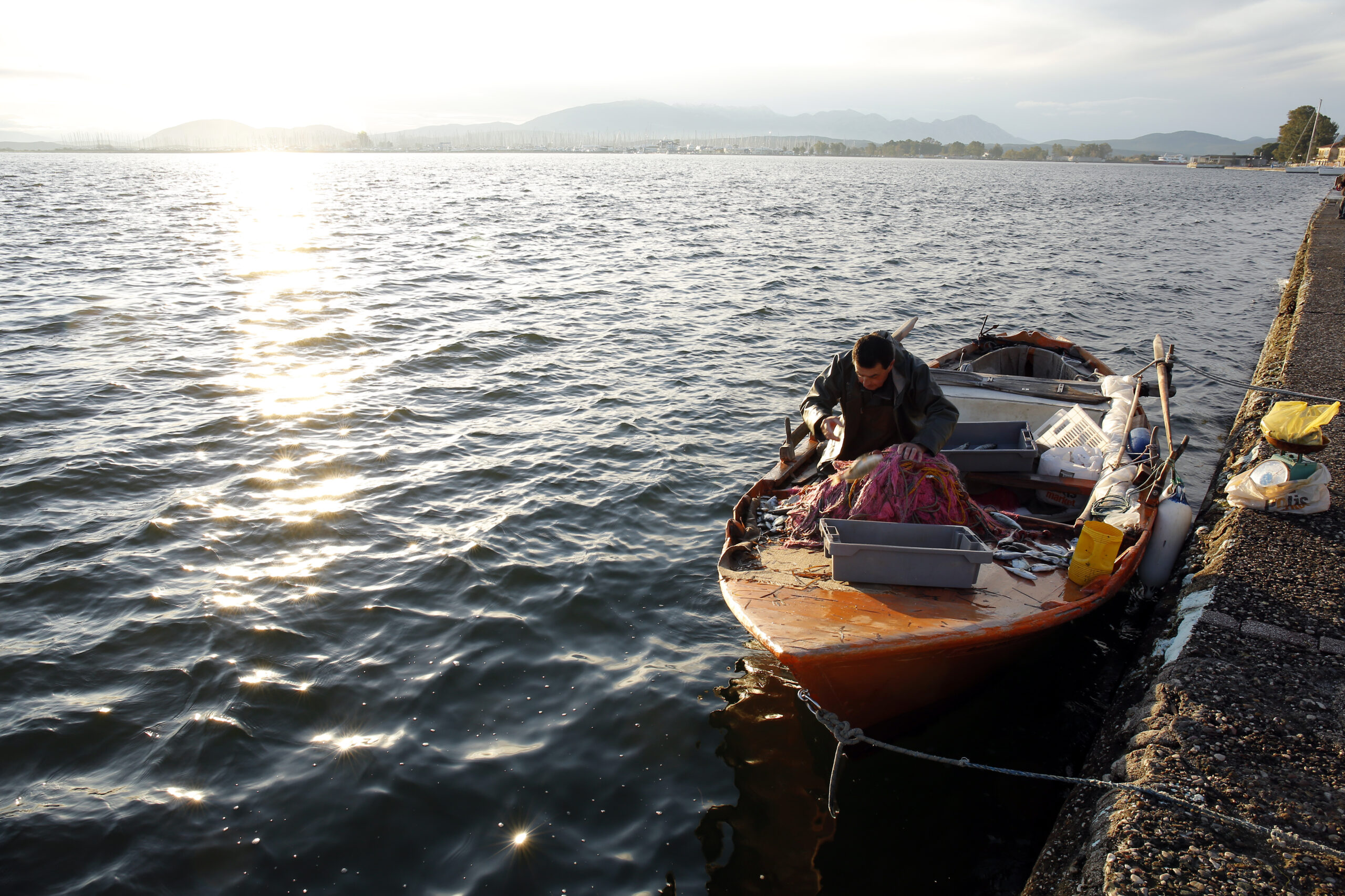 Ιδιοκτήτες εστιατορίων, απλοί πολίτες αλλά και υποψιασμένοι επισκέπτες, βρίσκονται εδώ, σε αυτήν τη, σχεδόν τελετουργική, καθημερινή διαδικασία. Γνωρίζονται με τα μικρά τους ονόματα, τα πειράγματα δίνουν και παίρνουν, τα αλιεύματα εμφανίζονται σε πλαστικές λεκάνες προσαρμοσμένες στο πλάι των καϊκιών. Αυστηρά. Η διάσημη σαρδέλα Αμβρακικού έχει την τιμητική της, οι αλιείς την ετοιμάζουν προς πώληση ευλαβικά, με σεβασμό.