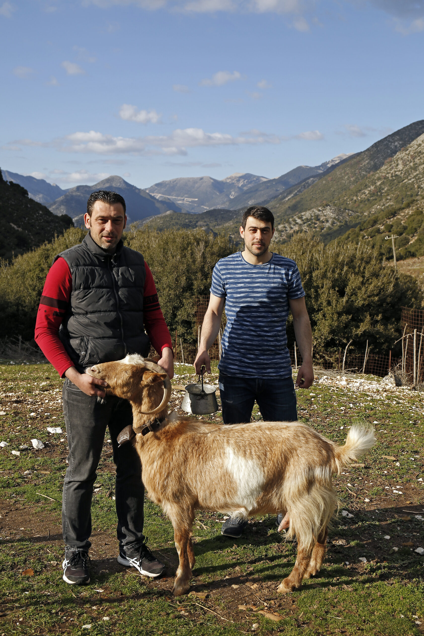 Ο ήλιος φωτίζει με τις τελευταίες του ηλιαχτίδες τη στάνη των αδελφών Φώτη και Φίλιππου Παπαϊωάννου πριν κρυφτεί πίσω από τις άγριες βουνοκορφές στα δυτικά. Τα κατσίκια μπαίνουν με τάξη μέσα στον περιφραγμένο χώρο για να ταϊστούν πριν πέσει η νύχτα. Ο παππούς των δύο νέων, Σωτήρης Τσιρώνης, έτοιμος εδώ και ώρα για τη διαδικασία, περιμένει υπομονετικά μέχρι και το τελευταίο ζώο να πλησιάσει στην ταΐστρα πριν αρχίσει το δίκαιο μοίρασμα. Μυρωδιά ξυλόφουρνου απλώνεται τριγύρω, ετοιμάζοντας νοστιμιές για τους ίδιους αλλά και για τον απρόσμενο επισκέπτη τους.