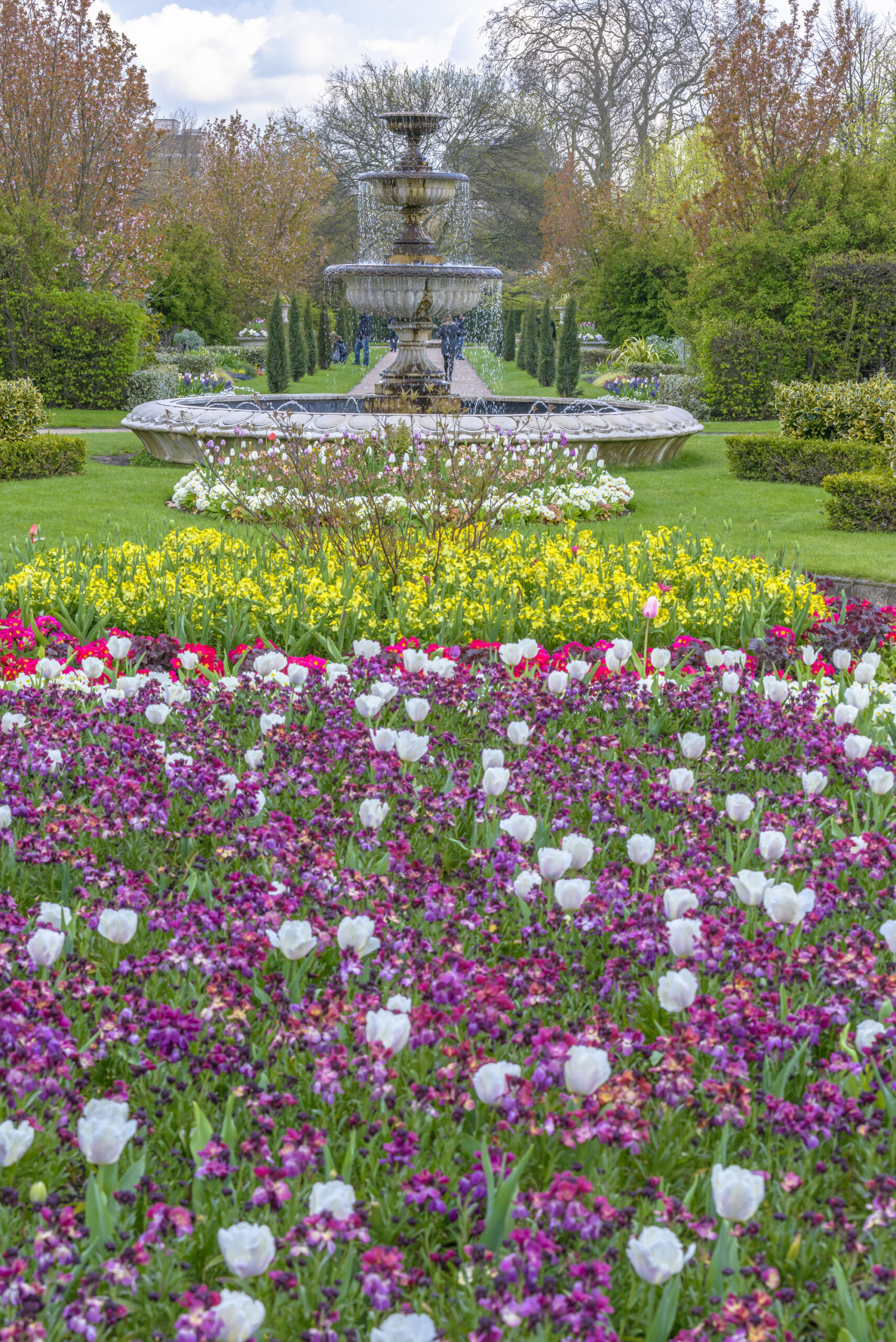 Ο ευχάριστος περίπατος κατά μήκος του Broad Walk οδηγεί στην Chester Road κι από εκεί, στρίβοντας αριστερά, βρίσκεστε στην εκθαμβωτική καρδιά του πάρκου. Ο Inner Circle περικλείει το πιο μαγευτικό θέαμα του Regent’s Park, τους κήπους που η ποιήτρια Sylvia Plath περιέγραψε ως «wonderland». Πρόκειται για τον ροδώνα της Βασίλισσας Μαρίας -Queen Mary’s Gardens, ένα άριστο δείγμα κηπουρικής τελειότητας, που απαρτίζουν 85 εκτενή παρτέρια από αντίστοιχες ποικιλίες τριαντάφυλλων, ένα σκηνικό ονειρεμένο, με 12.000 ροδόδεντρα να μαγνητίζουν το βλέμμα από τον Ιούνιο που ανθίζουν και να πλημμυρίζουν κυριολεκτικά τον αέρα με τα μεθυστικά αρώματά τους. Κάθε ποικιλία συναγωνίζεται την επόμενη με τα πανέμορφα τριαντάφυλλά της αλλά και το ευφάνταστο όνομά της, που αναγράφεται σε ξύλινο ταμπελάκι. Από την «Royal Parks», που απαντάται μόνο σε αυτό το πάρκο, ως την πορτοκαλοκίτρινη «Your Lovely Eyes», τις «Free Spirit» και «Living Wish» σε έντονο ροζ, και τις «Burgundy Ice» και «Rock n’ Roll» σε βυσσινί τόνους, δεν θα ξέρετε πού να στρέψετε το βλέμμα. Ωστόσο, τις εντυπώσεις κλέβει η κλασικά υπέροχη «English Rose», με βελούδινα πέταλα σε αποχρώσεις του λευκού, του σωμών και του ροζ και την ασύγκριτη ευωδιά που δεν χορταίνεις να μυρίζεις. Αλλά οι θεσπέσιοι αυτοί κήποι, που εμπνεύστηκε η Βασίλισσα Μαρία, σύζυγος του Βασιλιά Γεωργίου Ε’, και άνοιξαν για το κοινό το 1934, δεν αποτελούν μόνο προορισμό για ρομαντικούς ή για όσους αγαπούν τα τριαντάφυλλα. Καθώς συμπληρώνονται από μια μικρή λίμνη με γιγάντια νούφαρα, έναν μεσογειακό κήπο, έναν ακόμη κήπο με 9.000 μπιγκόνιες και άφθονα παγκάκια διαμέσου των παρτεριών, αποτελούν ένα ιδανικό καταφύγιο χαλάρωσης και αποσύνδεσης, που για πολύ καιρό θα κλείνετε τα μάτια και θα ανατρέχετε στη γαλήνη του.
