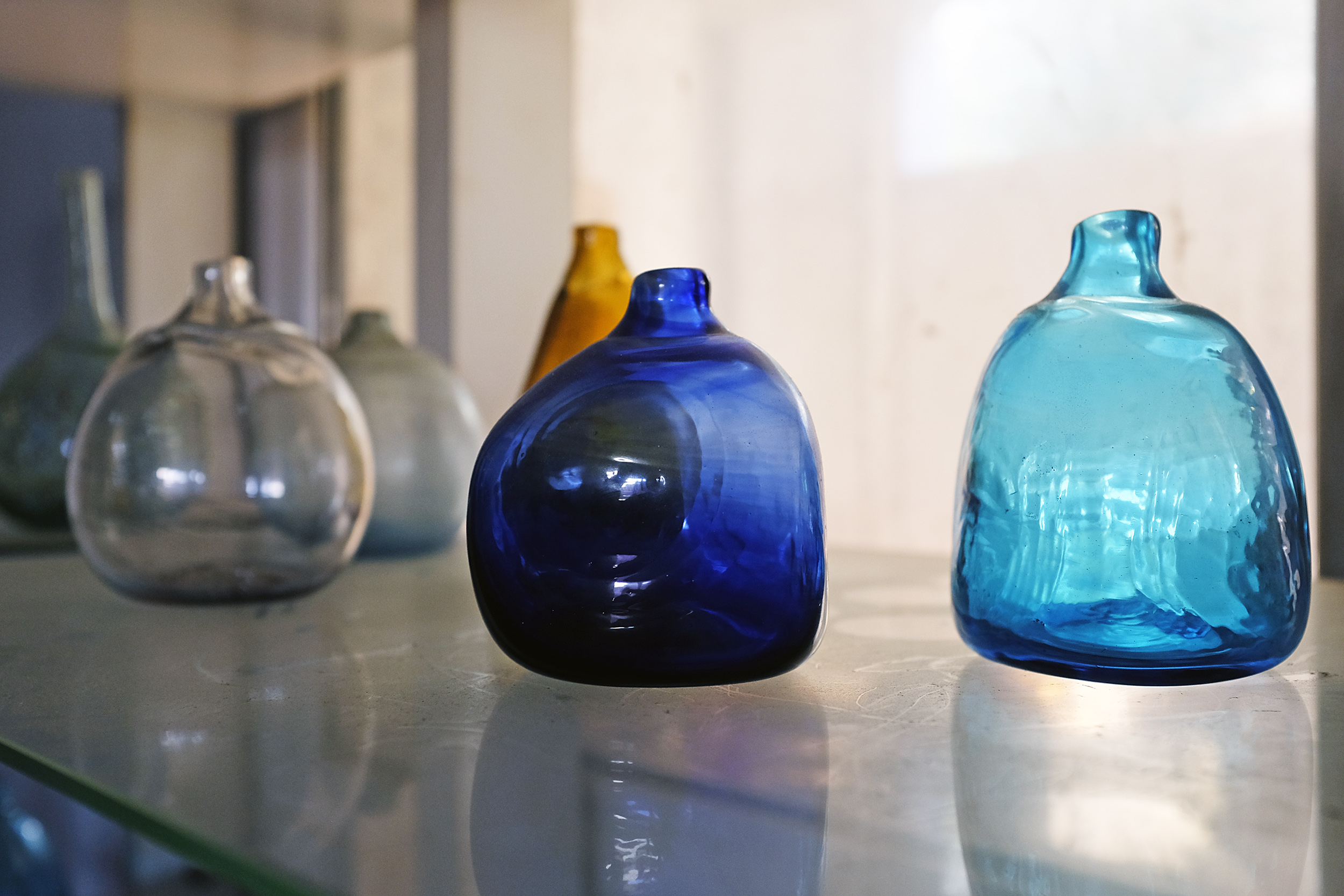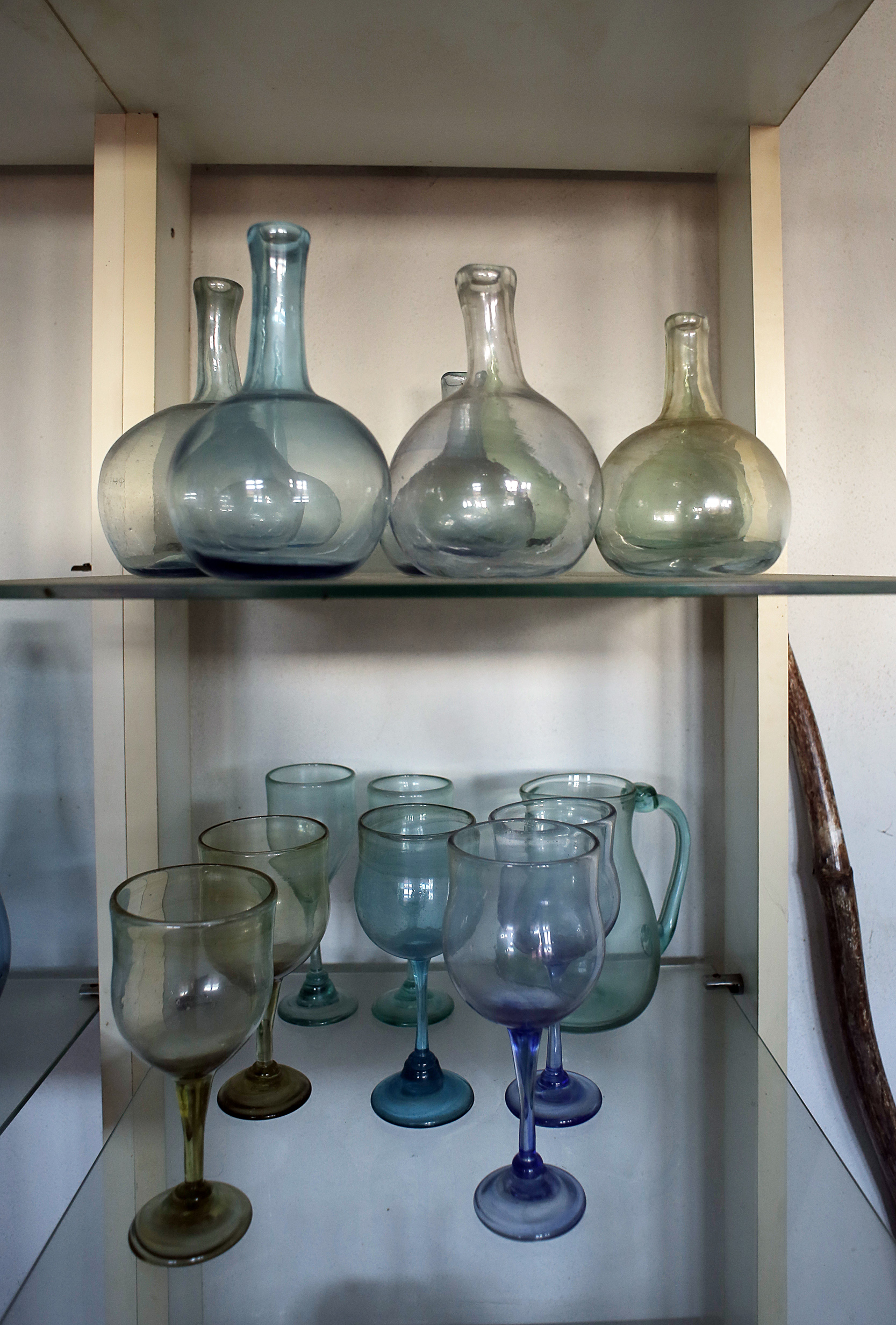 Λίγο έξω από την Αγία Γαλήνη, ένα βενζινάδικο, ανοιχτό μεν αλλά χωρίς κάποια κίνηση αυτήν την εποχή, φιλοξενεί στο κτίριό του το εργαστήριο του Νίκου Χαριτάκη. Ο χώρος είναι ταυτόχρονα και σαν σπίτι του αφού στους ορόφους του βιομηχανικού κτιρίου φιλοξενούνται οι φούρνοι, παλιές, πολύ όμορφες ξύλινες προθήκες, άλλες μεταλλικές, αμέτρητες δημιουργίες γυαλιού, ποτήρια, βάζα, διακοσμητικά αλλά και μια κάμαρη, ένα κουζινάκι και ό,τι χρειάζεται η αυτονομία.