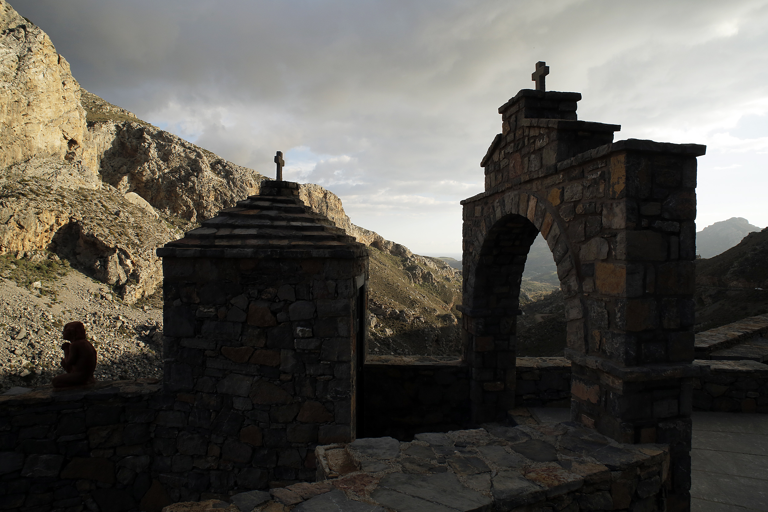 Πριν χαθεί το φως της ημέρας, ο παραθαλάσσιος δρόμος προς τη Μονή Πρέβελη, μετατρέπεται σε χαρτί σχεδίου, όπου με παραδοσιακό ραπιδογράφο, με γραμμές λιτές και καθαρές, με θέα όπου το χρώμα δεν έχει τόση σημασία, συντίθενται όλες εκείνες οι εικόνες που θα μείνουν ανεξίτηλες στην ψυχική μνήμη του ειλικρινούς ταξιδιώτη της Κρήτης.