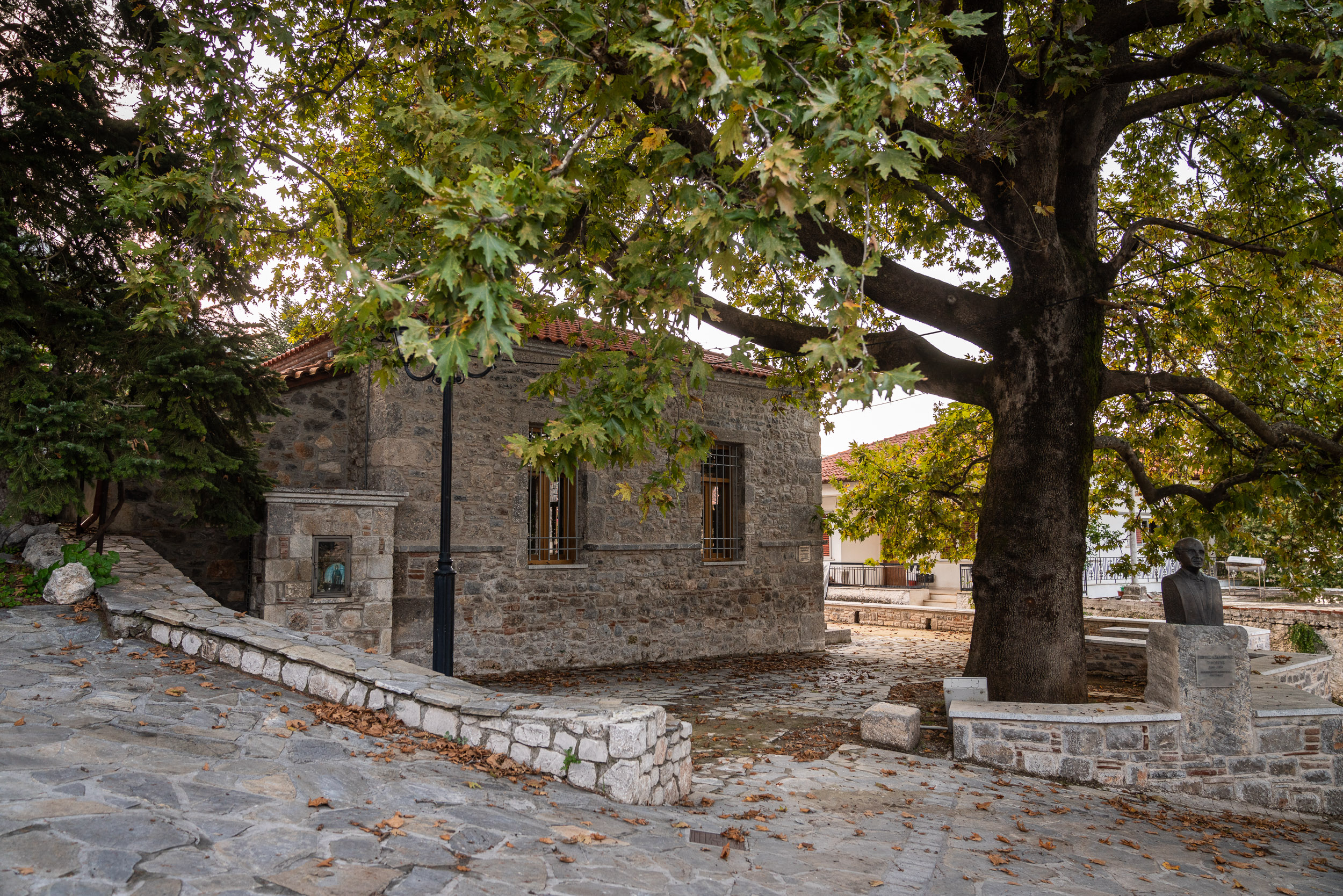 Η φυσική ομορφιά του ορεινού τοπίου -πράσινο ατελείωτο, τρεχούμενα νερά- φιλοξενεί ένα εξίσου όμορφο αρχιτεκτονικό «τοπίο»: πετρόκτιστα σπίτια, πλακτόστρωτα δρομάκια, η υπερυψωμένη πλατεία, σημείο αναφοράς του χωριού, που τη διασχίζει ο Αγοριανίτης ποταμός, σχηματίζοντας με τα νερά του έναν καταπληκτικό καταρράκτη.