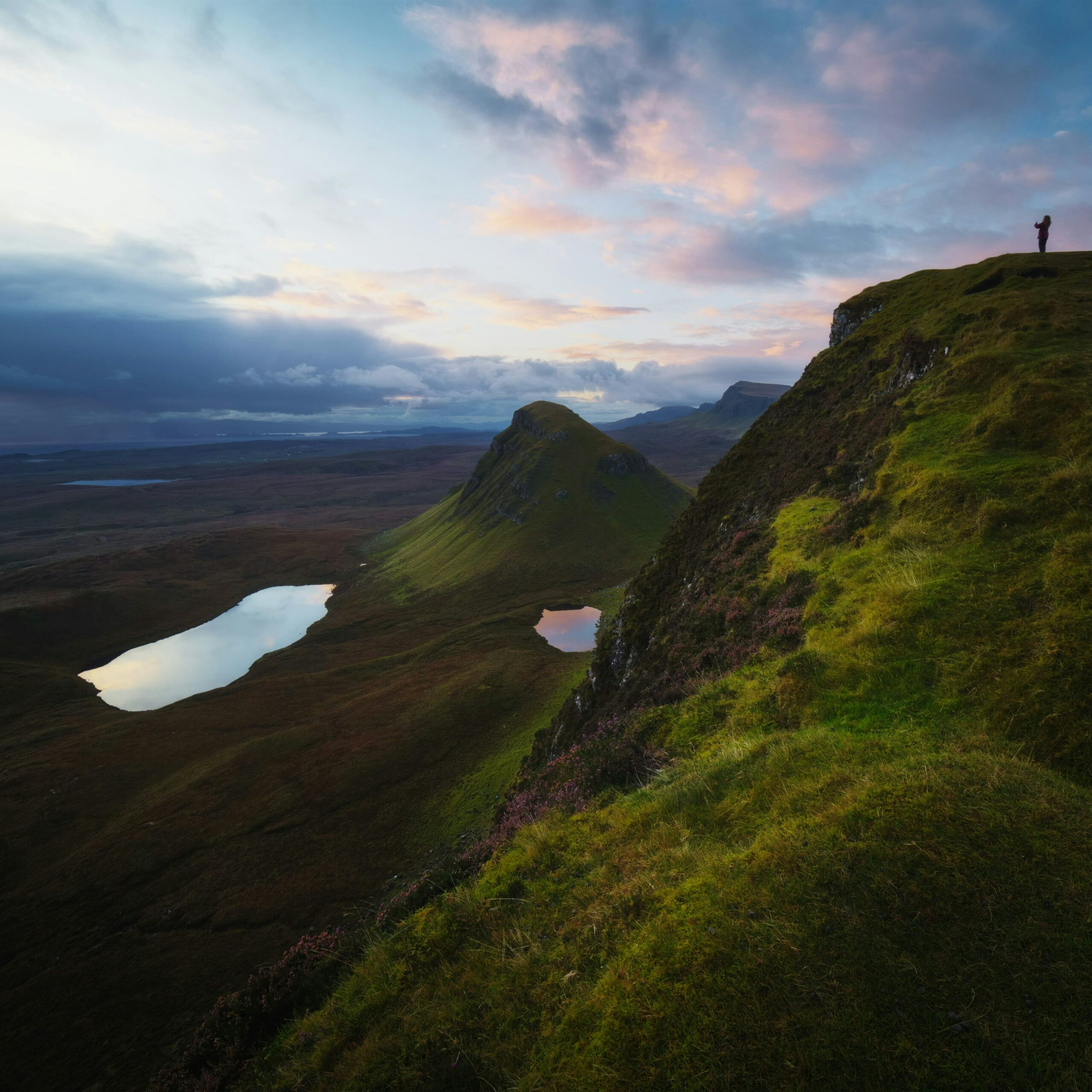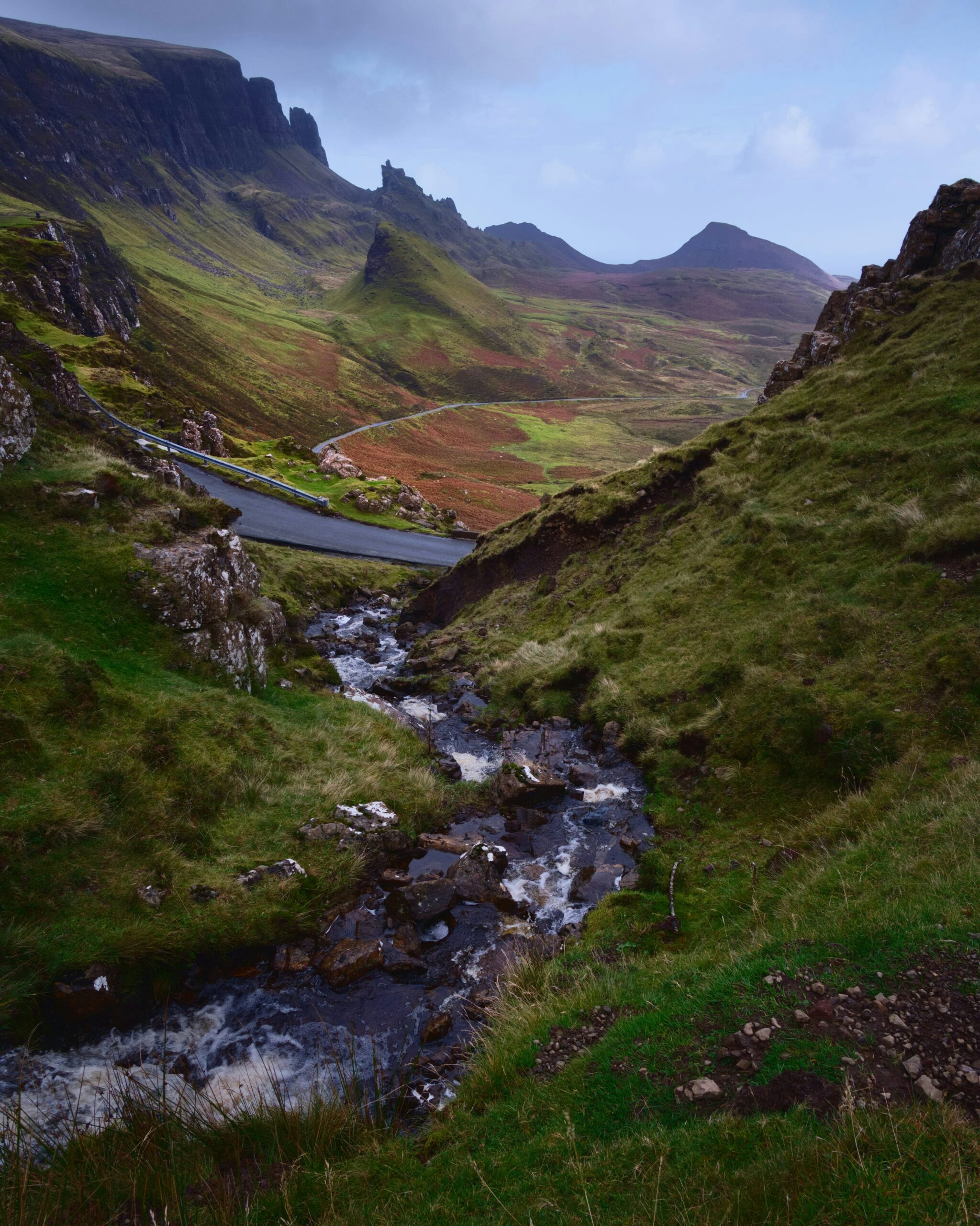 Μόλις έφτασα, η βροχή είχε ήδη κοπάσει, αφήνοντας πίσω της έναν ουρανό σχεδόν καθαρό. Σταδιακά, ουράνιο τόξο άπλωσε τις πολύχρωμες γραμμές του από άκρη σε άκρη των βουνοπλαγιών, σκορπίζοντας λίγη ακόμη μαγεία σε αυτόν τον τόπο. Στο Quiraing, στην καρδιά της νήσου Skye, η φύση υφαίνει τη δική της ιστορία εδώ και αιώνες. Τοπίο δραματικό και απόκοσμο, γεμάτο αντιθέσεις – απόκρημνοι γκρεμοί που σκίζουν τον ορίζοντα, χρυσοπράσινες πλαγιές, μικρές λιμνούλες αντανακλούν τον ουρανό, βραχώδεις προεξοχές και καταρράκτες ξετρυπώνουν και κυλούν από το σκληρό πέτρωμα. Ένα τοπίο ζωντανό και διαρκώς μεταβαλλόμενο. Λόγω της γεωλογικής του δραστηριότητας, η γη εδώ συνεχίζει να κινείται, έστω και ανεπαίσθητα.