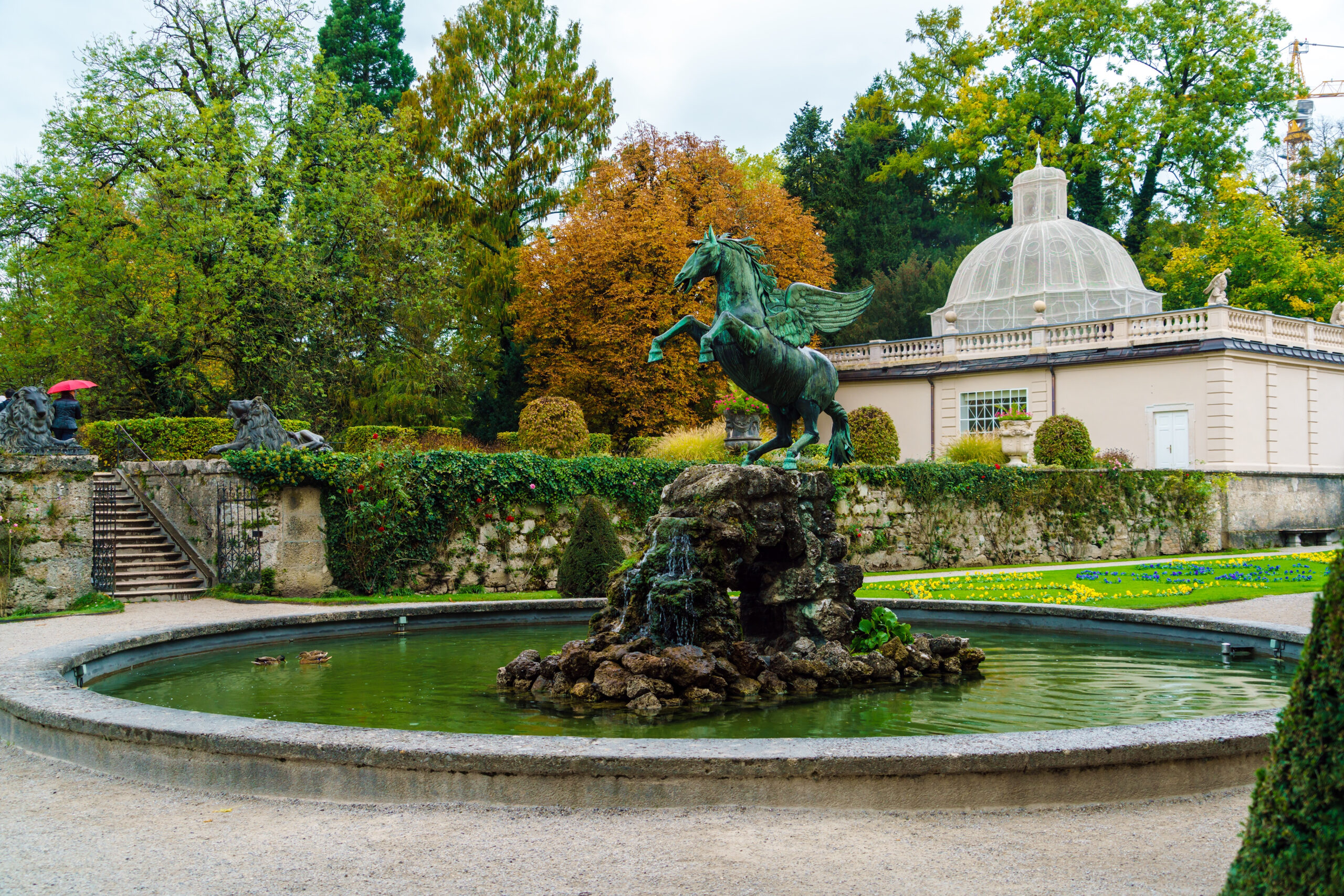 Ξεχωρίζει η καταπληκτική θέα στο Καθεδρικό του Σάλτσμπουργκ, όπως και το όμορφο μπαρόκ σιντριβάνι με το μπρούτζινο άγαλμα του φτερωτού Πήγασου να δεσπόζει στο κέντρο, έτοιμος να πετάξει. Αν αγαπάτε τις αρχοντικές βόλτες μέσα σε ολάνθιστα τοπία, χαζεύοντας υπέροχα δείγματα ευρωπαϊκής αρχιτεκτονικής, είναι το ιδανικό μέρος για εσάς.