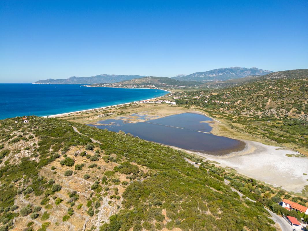 Βρίσκεται στο ανατολικό τμήμα του νησιού, απέναντι από τα Μικρασιατικά παράλια. Για αιώνες χρησιμοποιούνταν ως αλυκή, για την παραγωγή αλατιού. Μετά το 1960 εξελίχθηκε σε έναν πλούσιο υγροβιότοπο, φιλοξενώντας μεγάλο πληθυσμό αποδημητικών πουλιών και ενδημικών ζώων. Εδώ βρίσκουν ασφαλές καταφύγιο περισσότερα από 150 είδη προστατευόμενων πουλιών, όπως λευκοτσικνιάδες, φοινικόπτερα, χαλκόκοτες, καστανόπαπιες, βαρβάρες, νησιωτικές πέρδικες, φιδαετοί, αετογερακίνες, καλαμοκανάδες, μουστακογλάρονα κ.ά. Ο υγροβιότοπος έχει συνολική έκταση 420 στρέμματα, έχει ενταχθεί στο δίκτυο προστατευόμενων περιοχών NATURA 2000, ενώ έχει αναγνωριστεί ως βιότοπος στον κατάλογο του Ελληνικού Κέντρου Βιότοπων & Υγρότοπων.