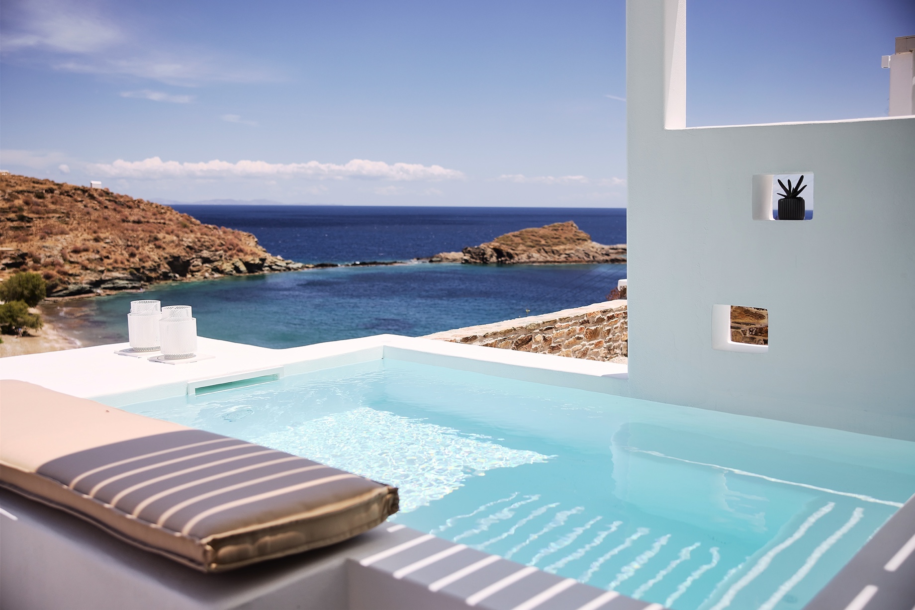 Wise Luxury Suites: πέτρινο συγκρότημα μόλις τριών σουιτών με ιδιωτική πισίνα και θέα στη θάλασσα. Έχουν όμορφη διακόσμηση σε λευκούς τόνους με ξύλινα στοιχεία σε έπιπλα και λεπτομέρειες. Ιδανικές για ζευγάρια (Καλό Λιβάδι, 2152159879, www.wisesuites.gr).