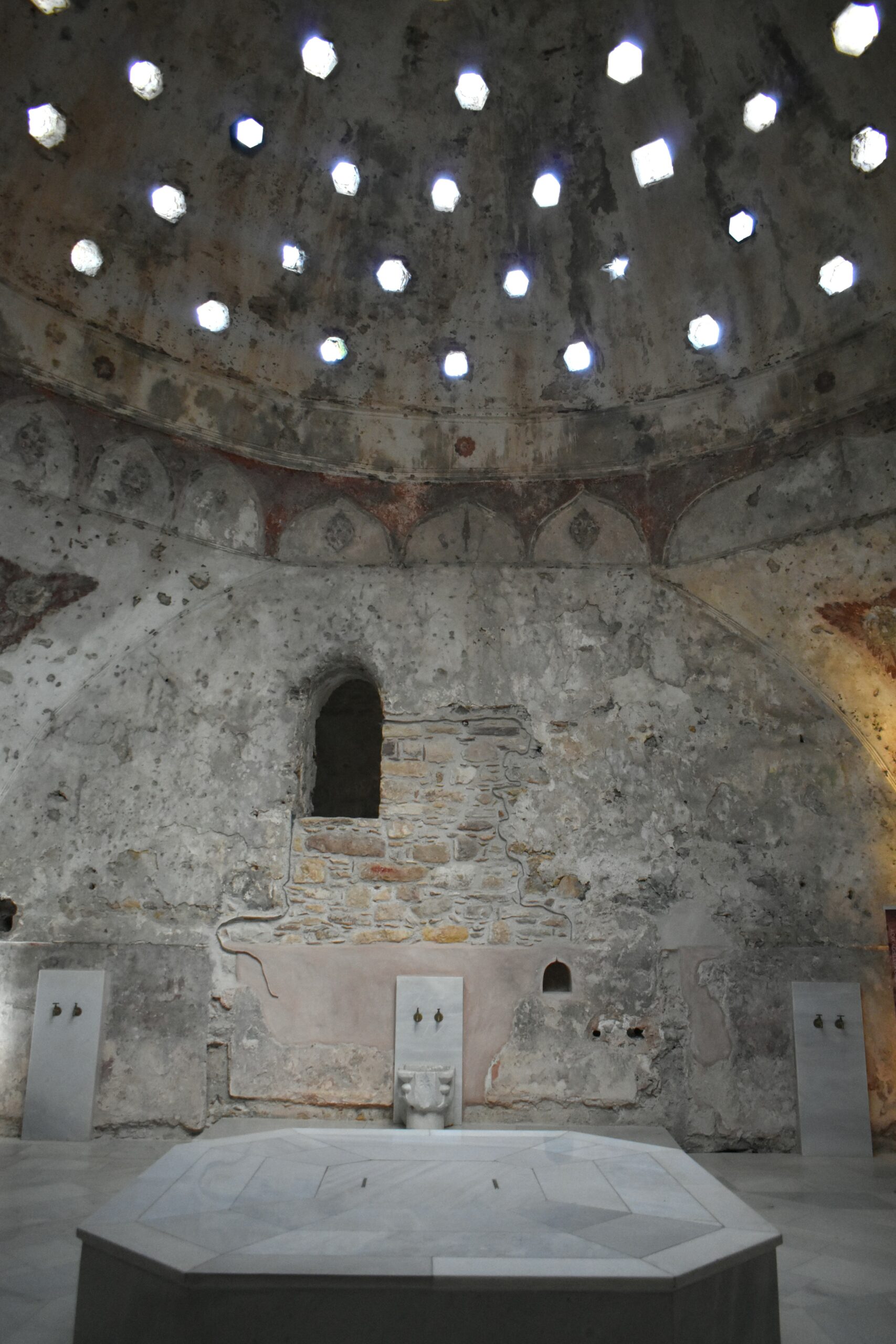 Όχι μόνο για να αγναντέψετε τη θέα ως τους ανεμόμυλους και τα τουρκικά παράλια, αλλά και για μια μυστικιστική επίσκεψη προηγουμένως στα εντυπωσιακά ανακαινισμένα Οθωμανικά Λουτρά του 18ου αιώνα, εμπειρία που μοιάζει με βουτιά στον χρόνο και στο αυθεντικό τελετουργικό ενός χαμάμ. Με το φως που εισβάλλει από τις οπές των ημισφαιρικών ή μοναστηριακών θόλων -κάποιες σε ονειρικά σχήματα αστεριών- να ζωντανεύει τα πετρόκτιστα, στιβαρά κτήρια με τους πολύπλευρους, μαρμάρινους πάγκους του μασάζ, μπορεί εύκολα να φανταστεί κανείς πλούσιους και φτωχούς, αστούς και χωρικούς, να συρρέουν στους χώρους που είχαν συνδεθεί τόσο στενά με την με την καθημερινότητα των κατοίκων της πόλης.