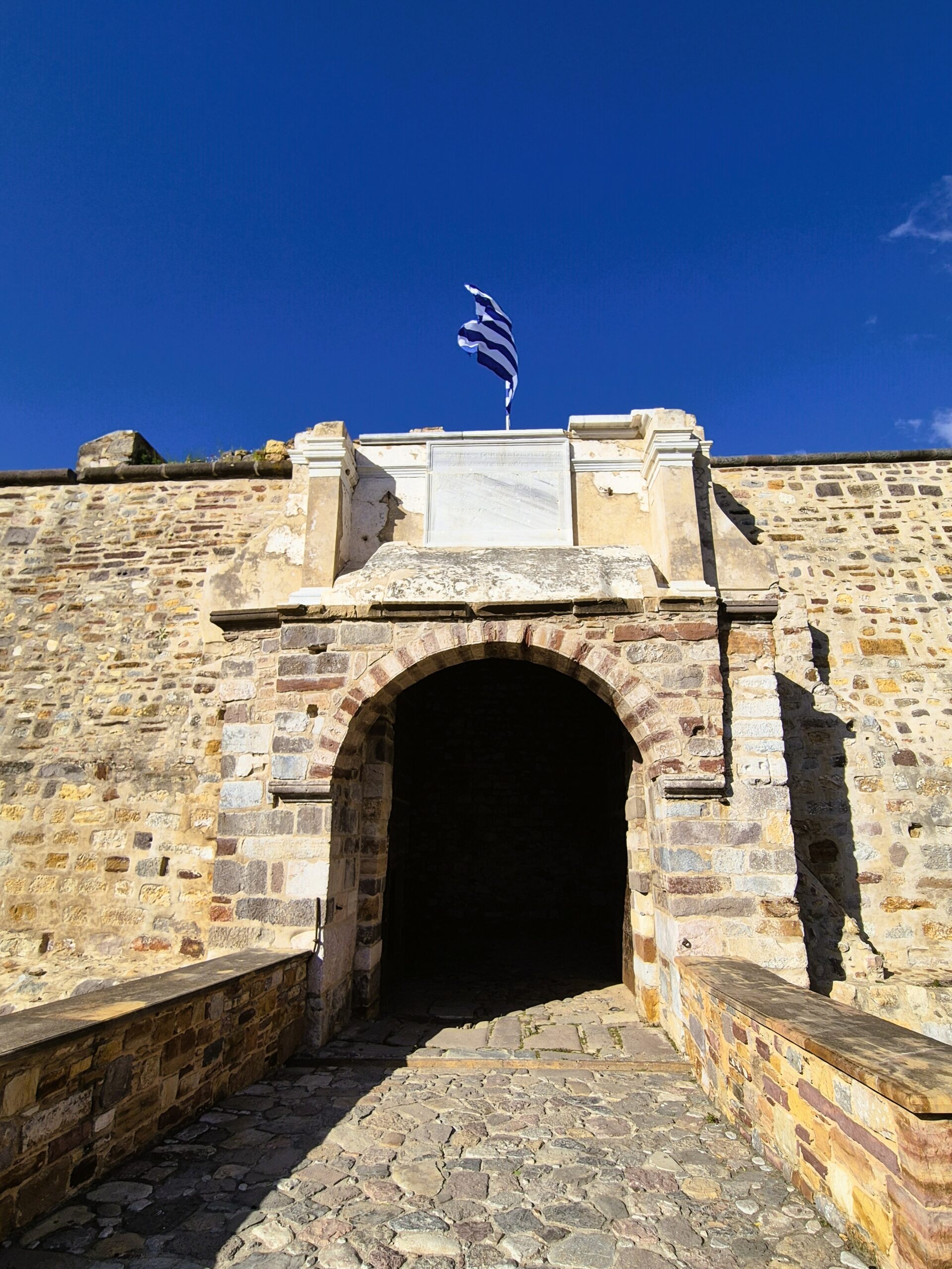 Από εδώ, είτε ακολουθήσετε τον κύριο οδικό άξονα του Κάστρου, την οδό Αγ. Γεωργίου, είτε τα ανηφορικά στενά, το βέβαιο είναι ότι θα σας αποζημιώσει από μια αίσθηση γαλήνης κι από πανέμορφες εικόνες. Παρατηρήστε τα σπίτια με τους κιοσέδες, τις γλάστρες στις εισόδους τους και τις μικρές αυλές, προσπαθήστε να φανταστείτε την αρχιτεκτονική και τη ζωή στο Κάστρο πριν από τον καταστροφικό σεισμό του 1881, κάντε μια στάση στο Οθωμανικό σχολείο και τον διπλανό ναό του Αγ. Γεωργίου, που χτίστηκε στη θέση του τεμένους Εσκί, αναζητήστε το Χαμηδιέ Τζαμί, χτισμένο το 1892 που παραμένει κλειστό και προχωρήστε ως το βορειοδυτικό άκρο του επιθαλάσσιου τείχους.