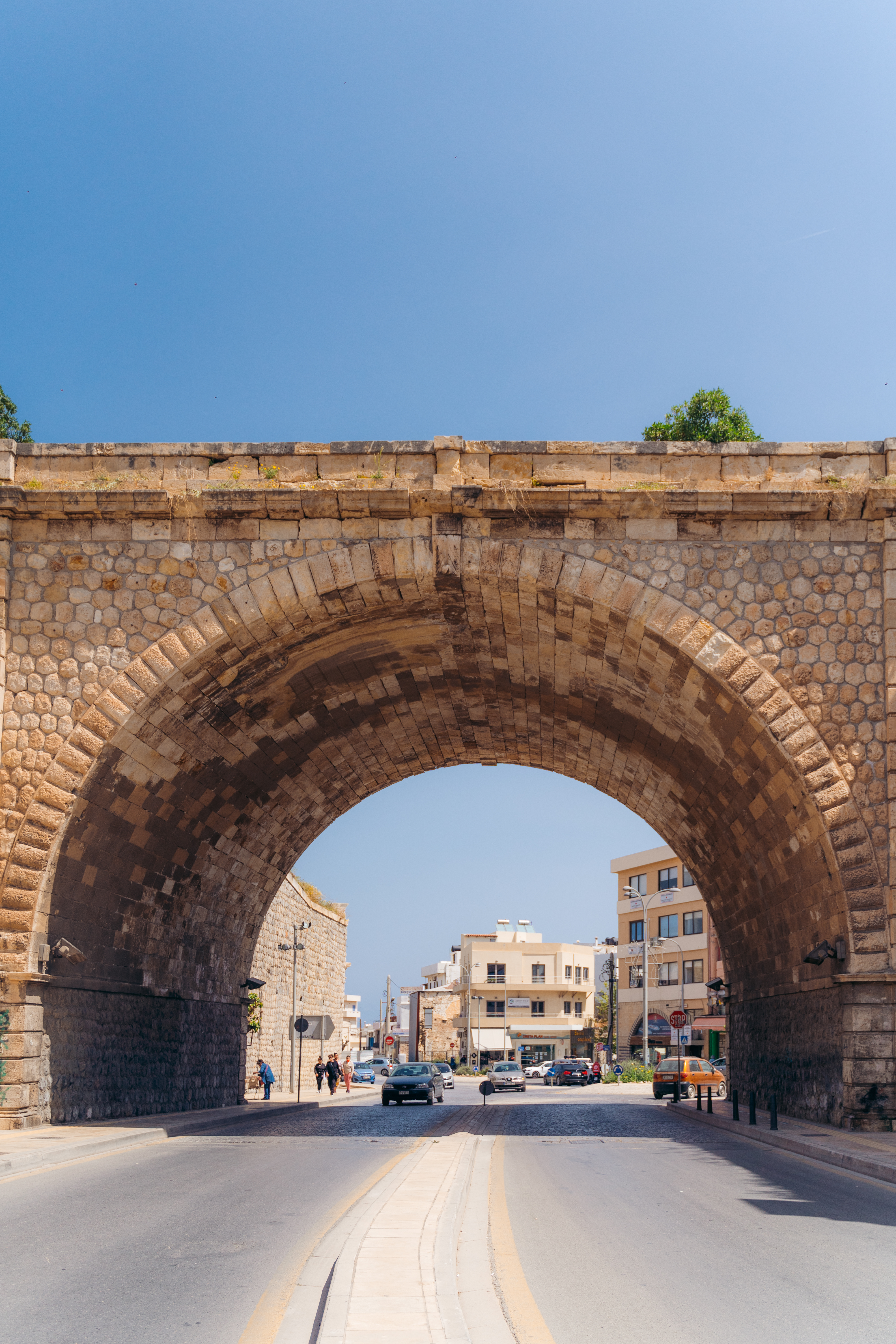Περπατώντας επάνω στα τείχη θα απολαύσετε πανοραμική θέα στην πόλη και τη θάλασσα. Στο μεγαλύτερο τμήμα τους έχουν διαμορφωθεί μονοπάτια και υπάρχουν παγκάκια για ξεκούραση. Τα ενετικά τείχη, που οριοθετούν και σήμερα την παλιά πόλη, ήταν ένα έργο θαυμαστό και λόγω αυτών το Ηράκλειο αναδείχθηκε στην πιο καλά οχυρωμένη πολιτεία της Μεσογείου. Κατασκευάστηκαν σε σχέδια του διάσημου μηχανικού της Βενετίας, Michele Sanmicheli και χρειάστηκαν περισσότερα από 100 χρόνια για να ολοκληρωθούν. Έχουν μήκος 3 χλμ., 4 πύλες και 7 προμαχώνες. Χάρη σε αυτά η πόλη άντεξε για 25 χρόνια την πολιορκία των Τούρκων, οι οποίοι την κατέλαβαν τελικά το 1669, ύστερα από προδοσία ενός Ενετού μηχανικού που τους έβαλε νύχτα από μια μυστική είσοδο. Στη σύγχρονη εποχή τα τείχη έχουν επισκευαστεί σε διάφορες φάσεις.