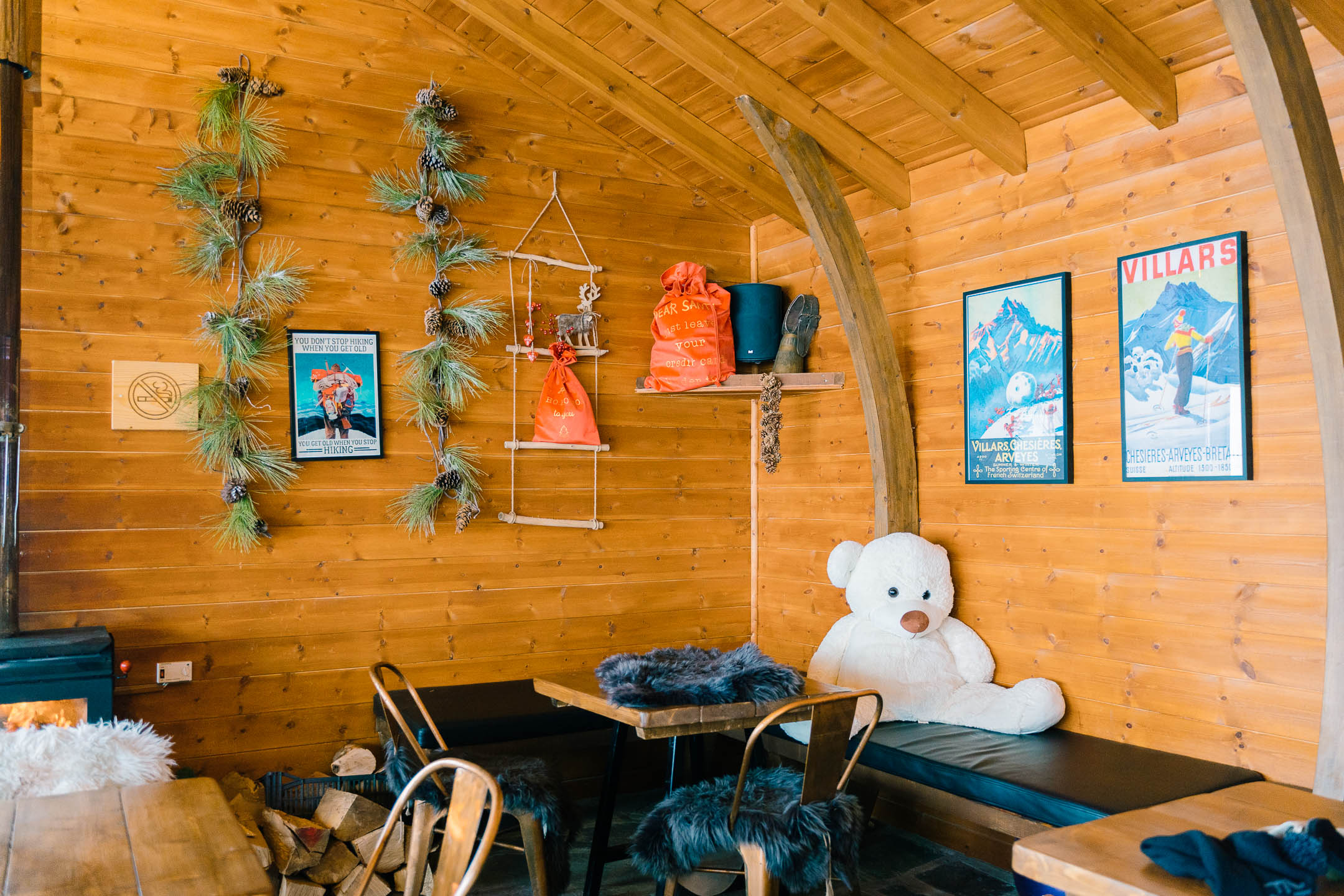 Είμαστε στο μικρό σαλέ, καθώς το μεγαλύτερο και νεότερης κατασκευής, σήμερα είναι κλειστό. Μία τεράστια σόμπα καίει μανιωδώς και την πλησιάζουμε καθώς το κρύο είναι τσουχτερό. Είναι αληθινή απόλαυση να βρίσκεσαι μέσα σε ένα τέτοιο χώρο, με το ξύλο να κυριαρχεί, τη ζέστη να είναι ικανοποιητική και την ίδια στιγμή, έξω από το τζάμι να χιονίζει μανιασμένα. Ο φίλος μας ο Χρήστος, που ξέρει το χιόνι, αλλά και την περιοχή όσο κανείς, μας καθησυχάζει ότι ο δρόμος θα μείνει ανοιχτός και δεν υπάρχει λόγος ανησυχίας.