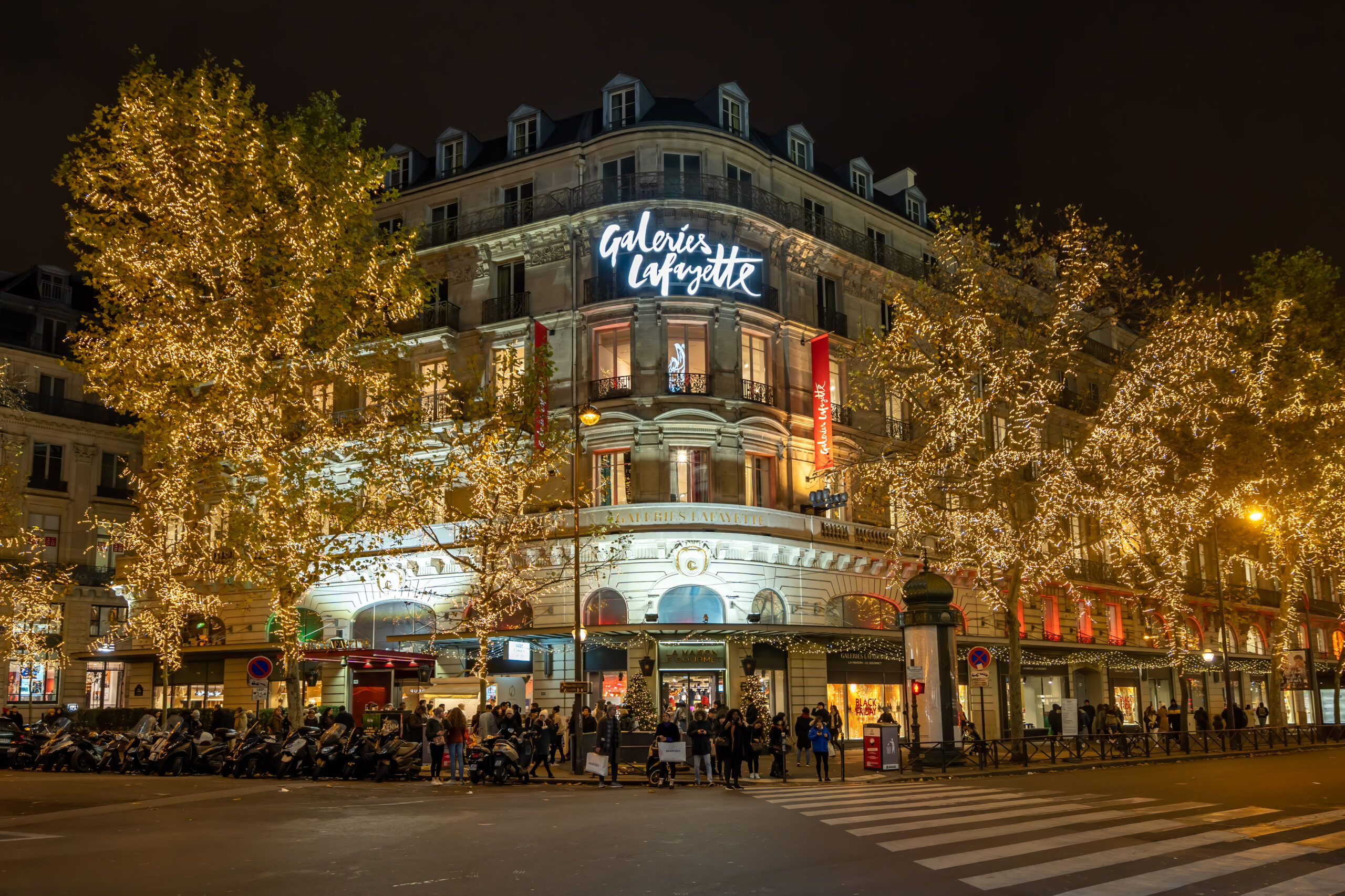 Στο Printemps Haussmann φέτος ξεχωρίζει το χριστουγεννιάτικο εξπρές, στο Le Bon Marché Rive Gauche -πρωτοπόρο στο θέμα του γιορτινού στολισμού από το 1909-, τις βιτρίνες διακοσμούν Αγιοβασίληδες, τεράστια κουτιά δώρων και σκηνές από την πόλη το Παρισιού και το το La Samaritain έχει μεταμορφωθεί σε χειμωνιάτικο κήπο με γιγαντιαία φυτά. Εκτός από τα πολυκαταστήματα, ιδιαίτερη γοητεία έχουν οι ιστορικές σκεπαστές εμπορικές στοές με τις γυάλινες οροφές που χρονολογούνται από τον 19ο αιώνα.
