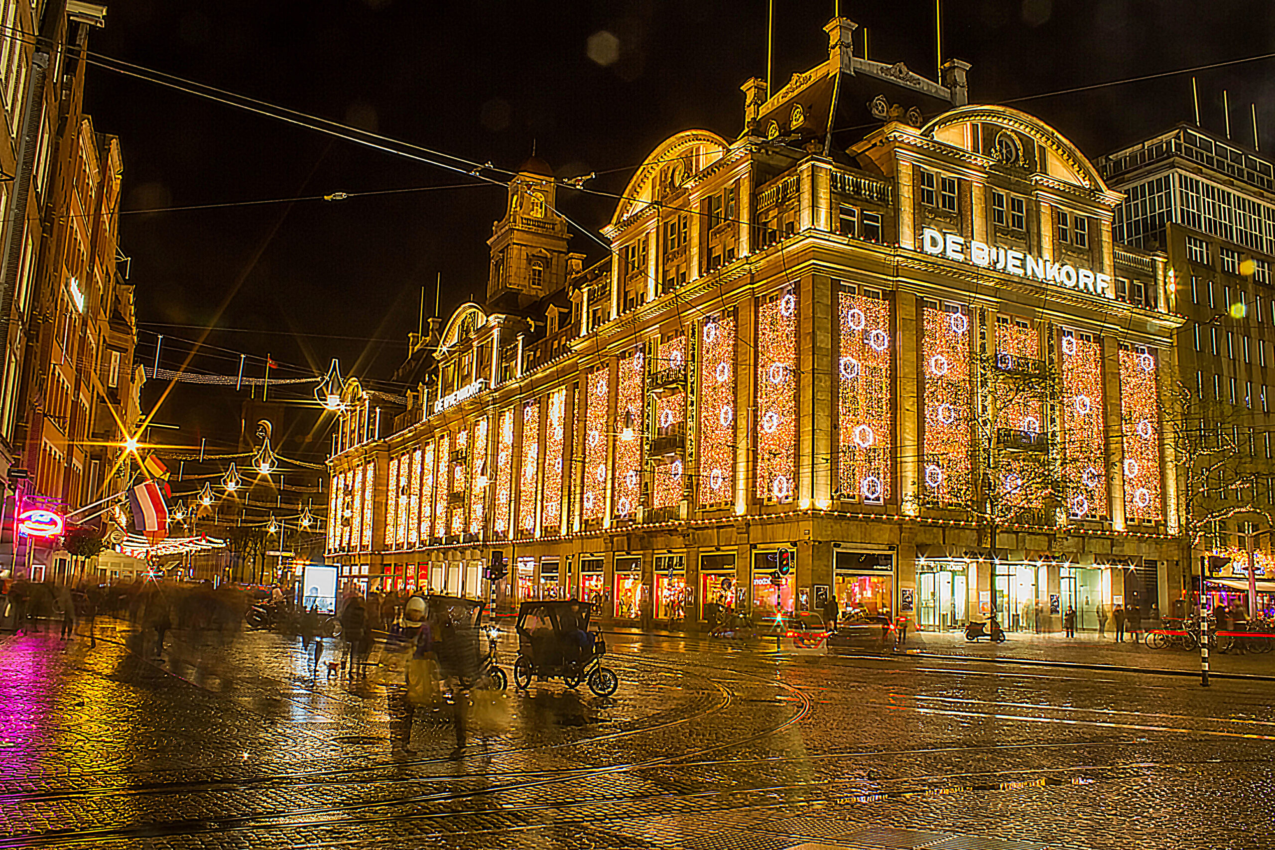 Με ιστορία που κρατά από το 1870 και πολλά υποκαταστήματα σε διάφορες πόλεις της Ολλανδίας, το De Bijenkorf είναι από μόνο του μία αληθινή, χριστουγεννιάτικη εμπειρία και όχι μόνο για τα ψώνια. Ακόμα και για όσους δεν βρίσκουν ιδιαίτερο ενδιαφέρον στις γιορτινές αγορές μία στάση στο μεγάλο κτήριο που θυμίζει παλάτι του 19ου αιώνα αξίζει τον κόπο.