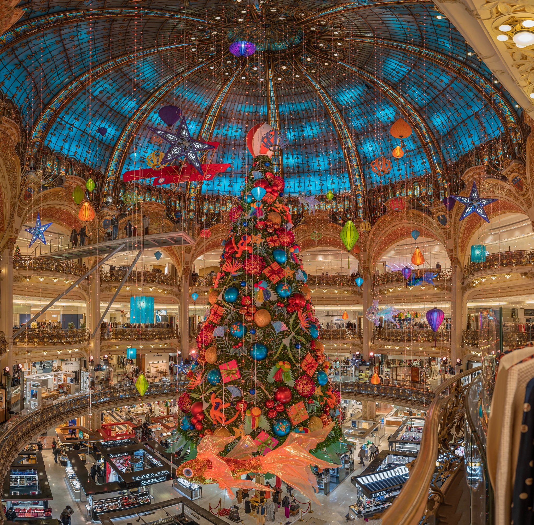 Κάθε χρόνο, τον Noέμβριο, στο πιο γνωστό εμπορικό κέντρο του Παρισιού (το οποίο κάποιος αξίζει να επισκεφθεί ανεξαρτήτου εποχής) στήνεται ένα τεράστιο, πολλές φορές πολύχρωμο, παραμυθένιο χριστουγεννιάτικο δέντρο.