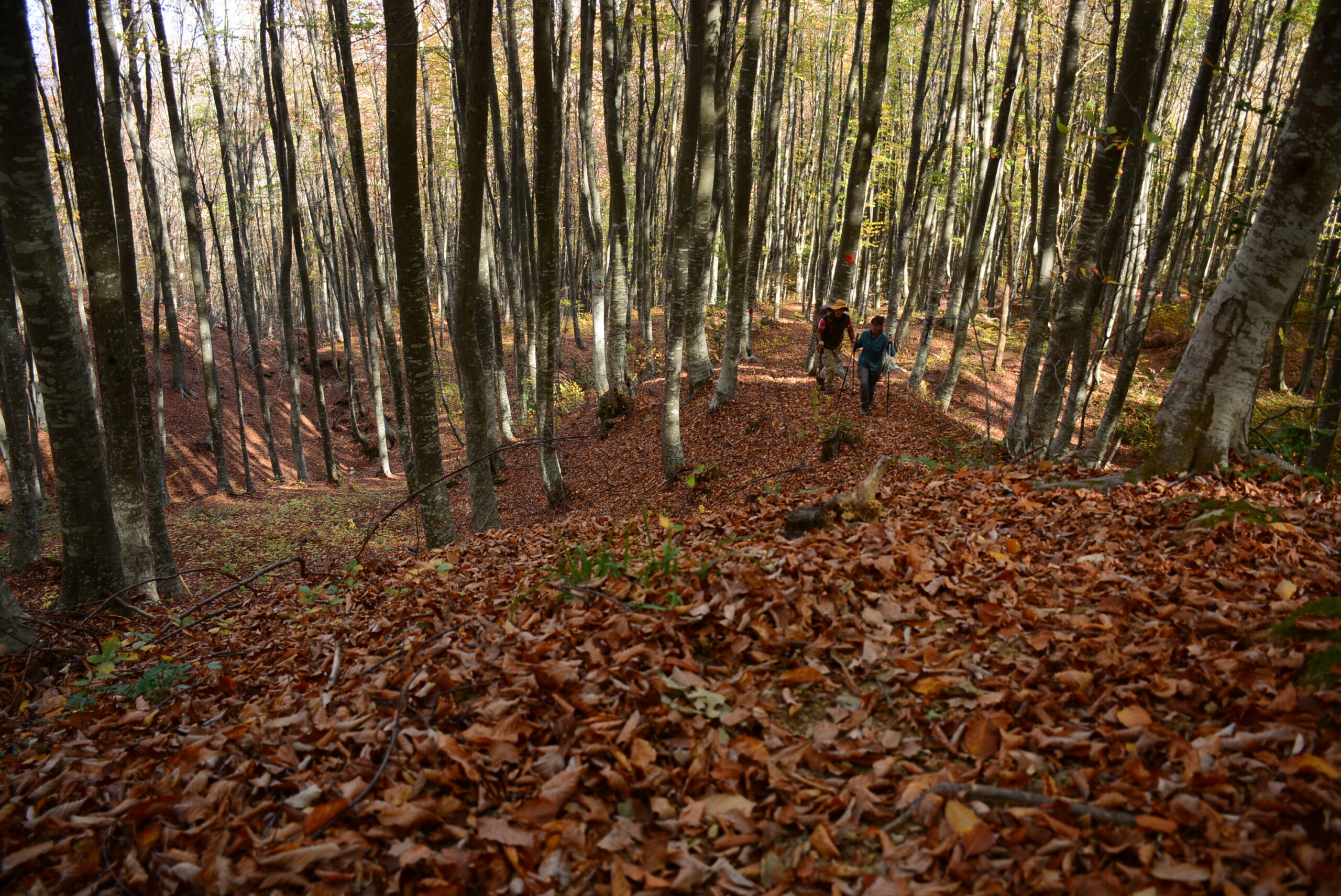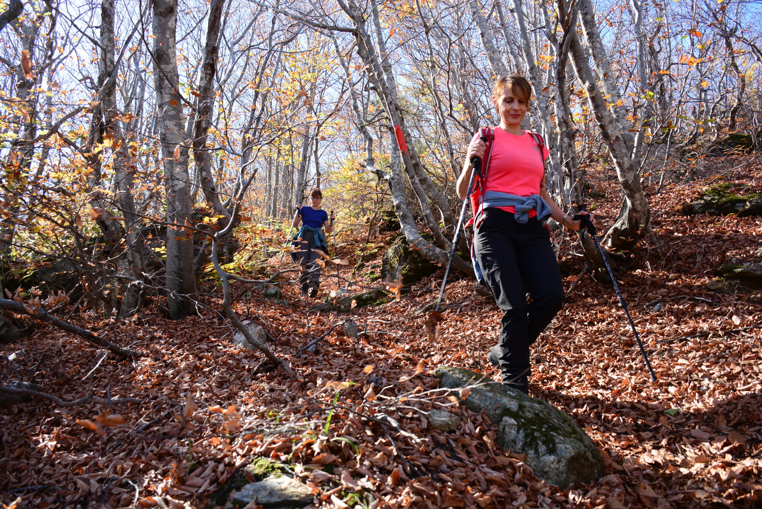 Όλη αυτή η βουνοπλαγιά είναι σκεπασμένη με ένα πυκνό δάσος από οξιές, καστανιές, πλατάνια στις ρεματιές και πολλές φτέρες. Παρά την απότομη κλίση της βουνοπλαγιάς στο μεγαλύτερο τμήμα της, τα ψηλόκορμα δέντρα και η έλλειψη πυκνών αγκαθωτών θάμνων επέτρεψαν σε κάποιους ορειβάτες του ΕΟΣ Βόλου να διασχίσουν την άνοιξη του 2016 αυτό το παρθένο τοπίο, μια πραγματική εξερεύνηση σε αχαρτογράφητο έδαφος. Την επόμενη χρονιά επανέλαβαν τη διάσχιση, και το 2019 αποφάσισαν να σηματοδοτήσουν τη διαδρομή με τα μέσα που διέθεταν, δηλαδή με κόκκινη μπογιά πάνω στους κορμούς των δέντρων και να διανοίξουν μερικά εντελώς φραγμένα τμήματα στα χαμηλότερα σημεία της βουνοπλαγιάς με πολύ κόπο και εντυπωσιακά αποτελέσματα, δημιουργώντας μια από τις ομορφότερες πεζοπορικές διαδρομές στο Πήλιο.