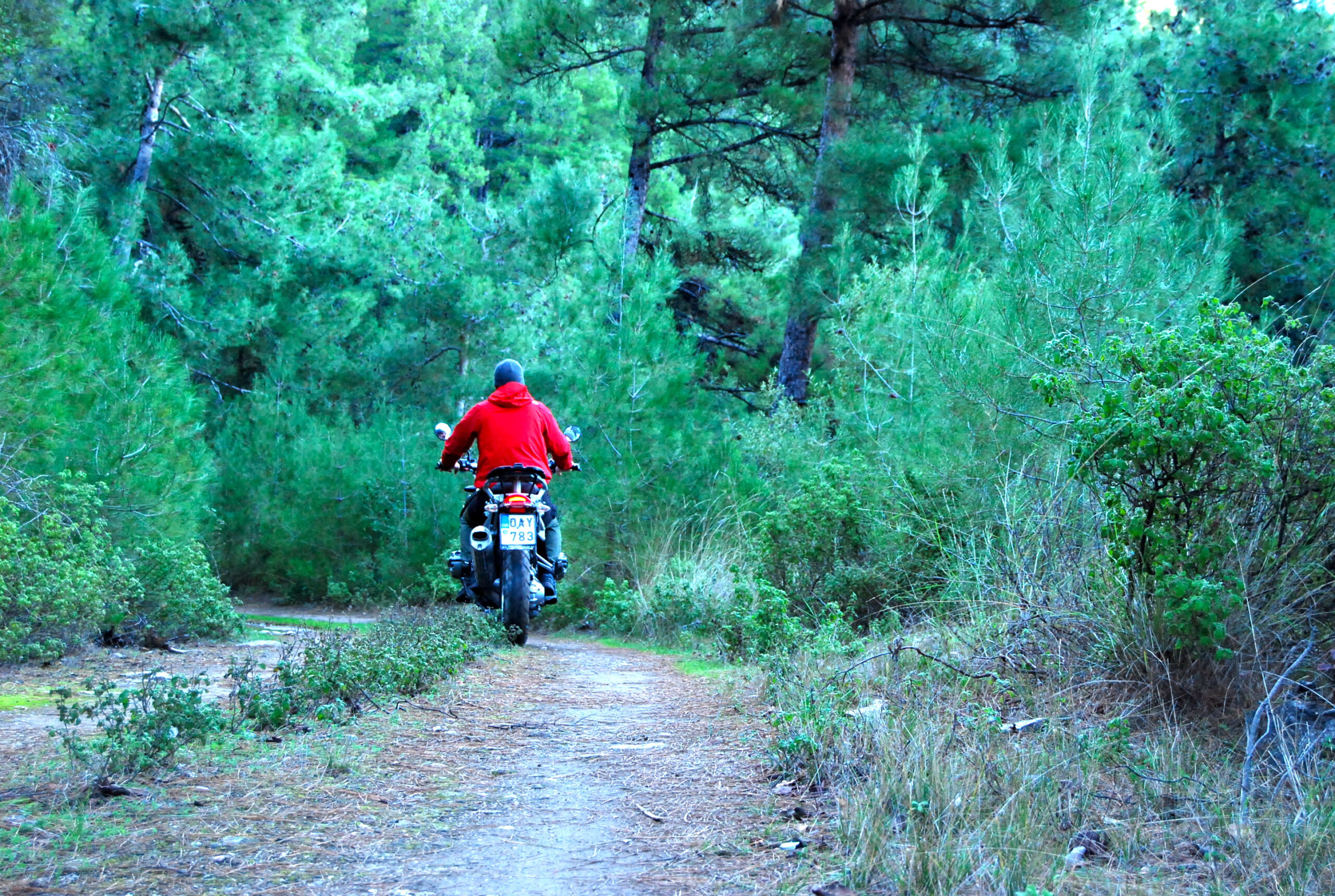 Από το σημείο αυτό ακολουθείτε τον χωματόδρομο που φεύγει βορειοδυτικά, και μετά από 1.100 μ. (αφού αγνοήσετε μια διασταύρωση με έναν δευτερεύοντα δρόμο στα δεξιά σας, στα 200 μ.) φτάνετε σε μια άλλη διασταύρωση με έναν άλλο δύσβατο χωματόδρομο στα αριστερά σας, τον οποίο ακολουθείτε, και μετά από 80 μέτρα ακολουθείτε έναν άλλο, εξίσου δύσβατο χωματόδρομο που θα συναντήσετε στα δεξιά σας, μέχρι το τέρμα του. Από εδώ και πέρα κατηφορίζετε με πορεία προς τα δυτικά σε ένα απολαυστικό μονοπάτι που διασταυρώνεται κάθε τόσο με τον κεντρικό χωματόδρομο, και μετά από 2 χλμ. έχετε φτάσει στη ρεματιά, στην ανατολική́ άκρη του Θεολόγου.