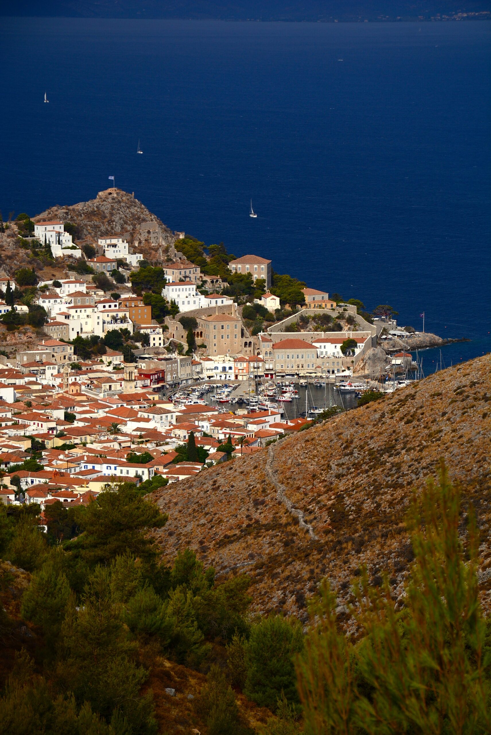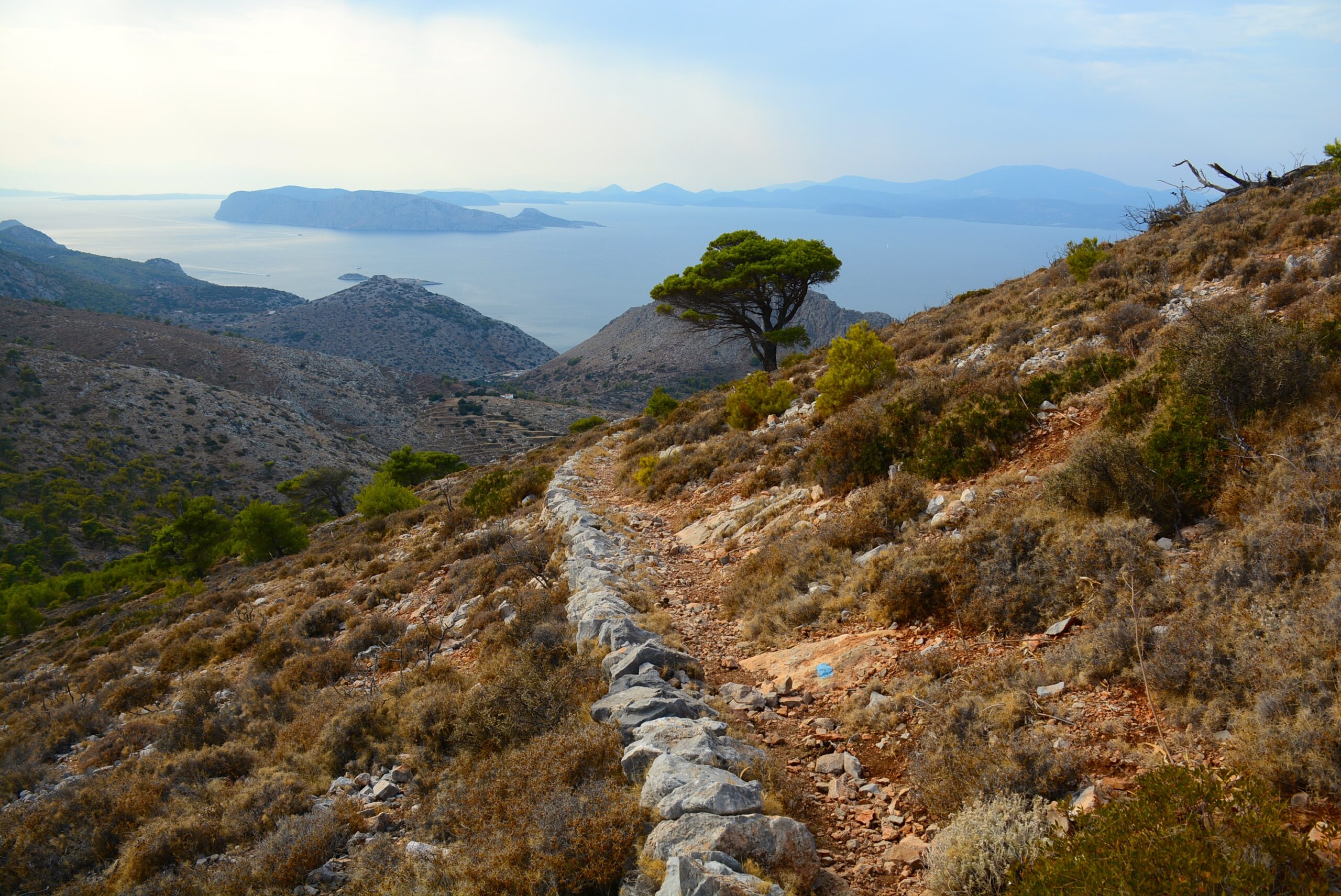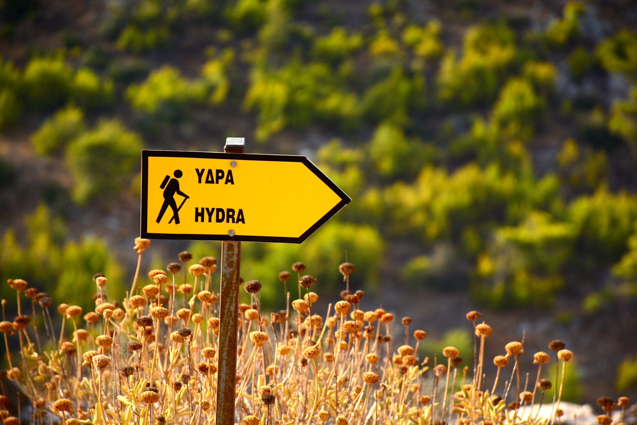 Σε αυτό το πανέμορφο νησί, το μόνο ελληνικό νησί στο οποίο απαγορεύεται η κυκλοφορία οχημάτων και στο οποίο πρακτικά δεν υπάρχουν δρόμοι και δεν έχει υποβαθμιστεί η φυσική ομορφιά του, ένα νησί που διατηρεί όλα τα παλιά μονοπάτια που το διασχίζουν απ’ άκρη σ’ άκρη, αν είχε φροντίσει κάποιος φορέας να σηματοδοτήσει σωστά αυτά τα μονοπάτια η Ύδρα θα ήταν σήμερα ένας από τους κορυφαίους πεζοπορικούς προορισμούς στην Ελλάδα. Μια μελέτη που έγινε το 2012 για τη σηματοδότηση πεζοπορικών διαδρομών δεν έχει υλοποιηθεί μέχρι σήμερα (2022). Στο λιμάνι του νησιού ο επισκέπτης θα δει μια μεγάλη πινακίδα-χάρτη που παρουσιάζει ένα σηματοδοτημένο δίκτυο πέντε διαδρομών με αρίθμηση από το 1 ως το 5, αλλά στο πεδίο δεν θα βρείτε καμία σηματοδότηση που να αντιστοιχεί σε αυτή την αρίθμηση, και τίποτα άλλο πέρα από κάποιες ελάχιστες πινακίδες που αναφέρουν κάποιους προορισμούς χωρίς όμως χιλιομετρικές αποστάσεις ή χρόνο πορείας, καθώς και μερικά σήματα με μπογιά στις πέτρες. Στην ιστοσελίδα του Δήμου Υδραίων (www.hydra.gr) το πεδίο που αναφέρει τις πεζοπορικές διαδρομές παραπέμπει σε έναν πεζοπορικό οδηγό κάποιου ιδιώτη, που ωστόσο δίνει διαφορετική αρίθμηση και χάραξη στις “σηματοδοτημένες” πεζοπορικές διαδρομές από αυτήν που εμφανίζεται στην ενημερωτική πινακίδα του Δήμου στο λιμάνι, ενώ μια τρίτη εκδοχή του «σηματοδοτημένου» δικτύου παρουσιάζεται στην ιστοσελίδα www.hydratrails.gr. Όμως, μην πτοείστε! Οι περιγραφές που ακολουθούν, θα σας βοηθήσουν να απολαύσετε τα μονοπάτια της Ύδρας χωρίς να χαθείτε.
