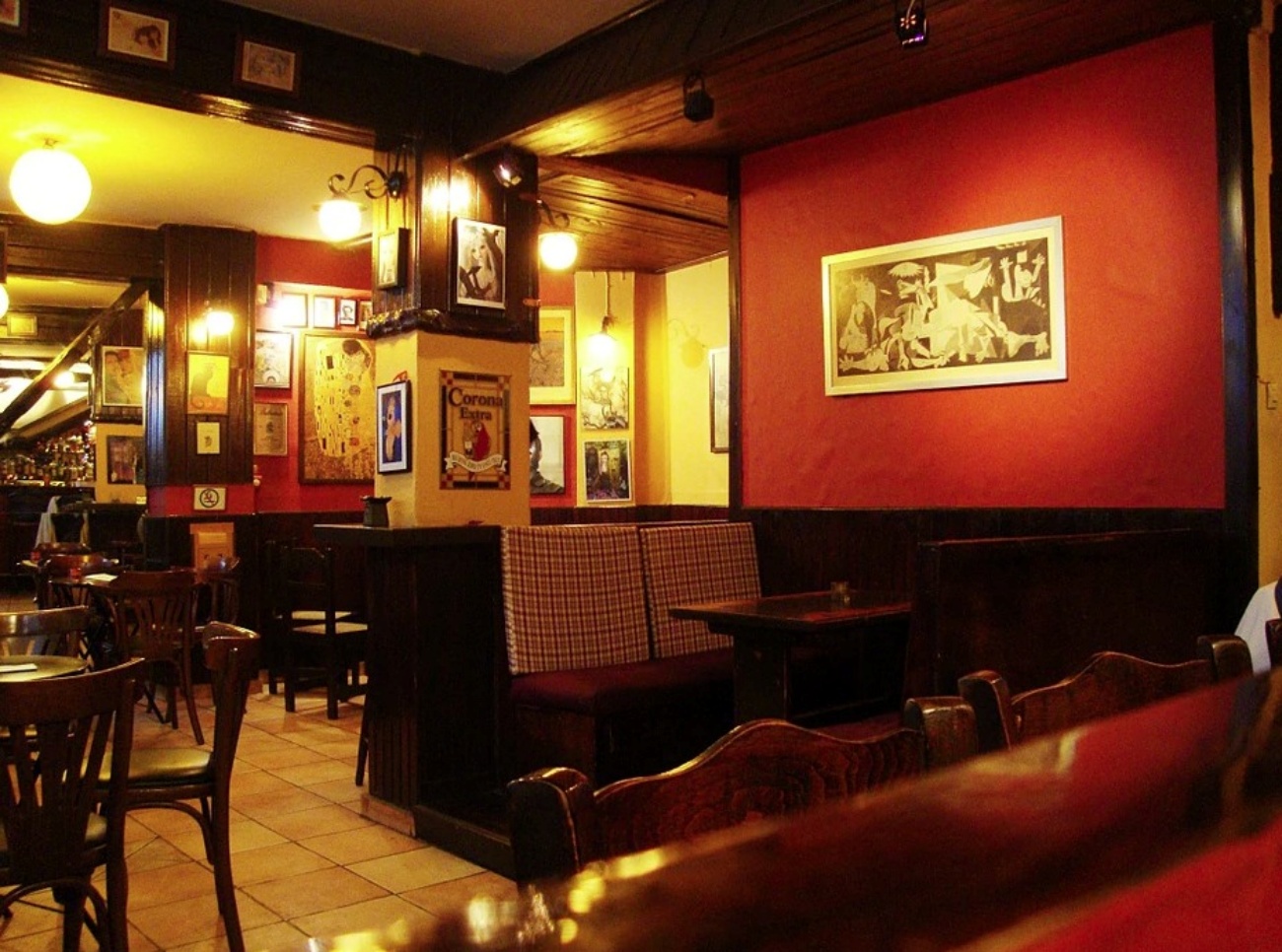 Την ατμόσφαιρα τη φτιάχνουν με το που διαβείς την πόρτα το The Kiss του Κλιμτ, το πορτρέτο του Che από τον Ρενέ Μπουρί και η Guernica του Πικάσο. Στάση πρώτη για τον επισκέπτη το μπαρ που βλέπει απέναντι στον θυρεό του μαγαζιού και αποτελείται από δύο αντικριστά τσεκούρια, το κλασικό μεσαιωνικό γαλλικό άνθος και τη σιδηρόφρακτη κεφαλή του ιππότη.