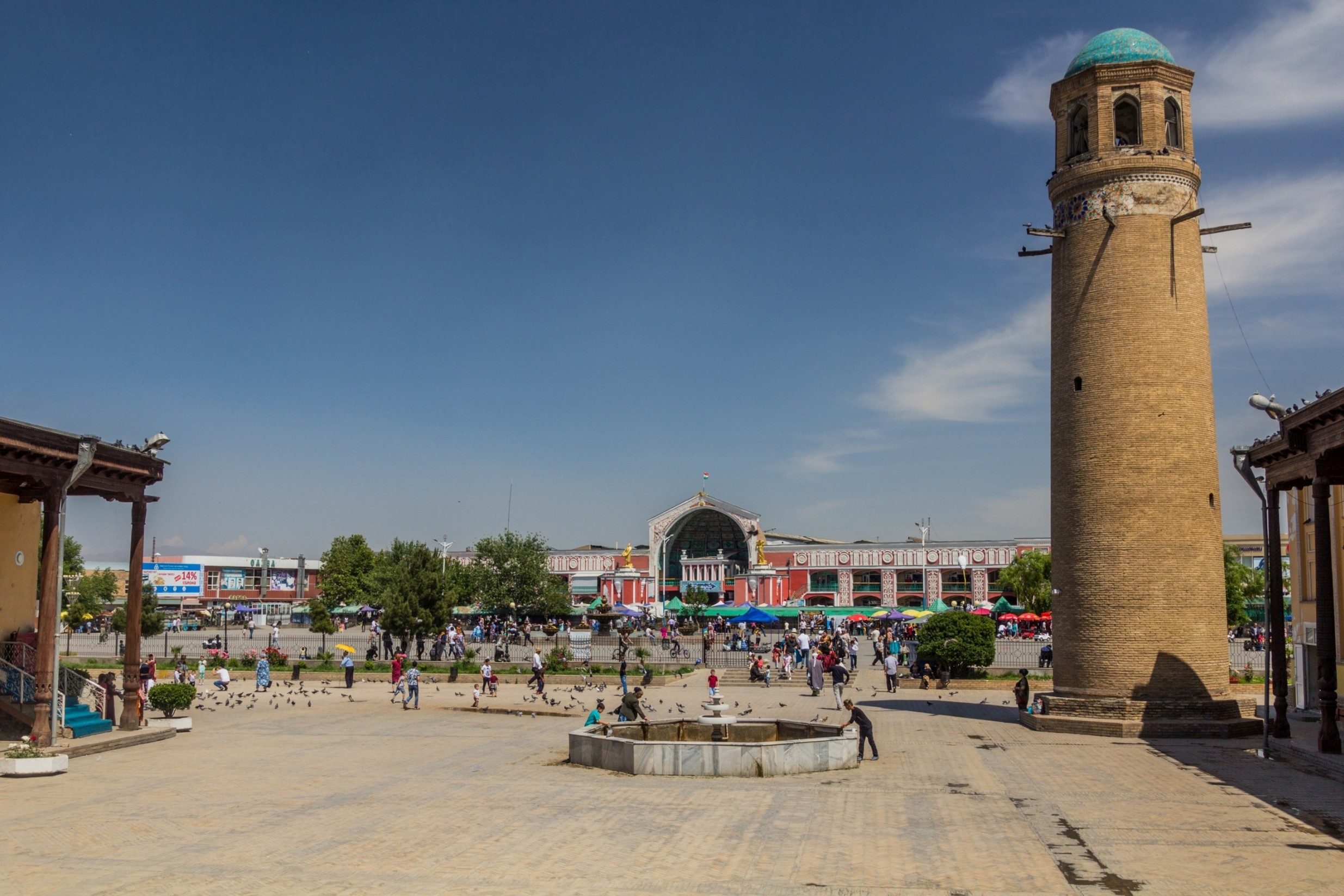 Καταλήγουμε στην κεντρική πλατεία με τα τέμενος της Παρασκευής και το εντυπωσιακό Μαυσωλείο Σεΐχ Μουσλιχιντίν. Απέναντι από το Μουσλιχιντίν βρίσκεται η σκεπαστή αγορά Παντζσανμπέ, ένα από τα πιο πολύχρωμα αξιοθέατα της Χουτζάντ. Το εσωτερικό της εντυπωσιάζει με τη μοναδική αρχιτεκτονική και το σχεδιασμό που συνδυάζει σοβιετικά και ανατολίτικα στοιχεία. Η Παντζσανμπέ που σημαίνει «Αγορά της Πέμπτης» είναι μια από τις μεγαλύτερες στεγασμένες αγορές της Κεντρικής Ασίας.