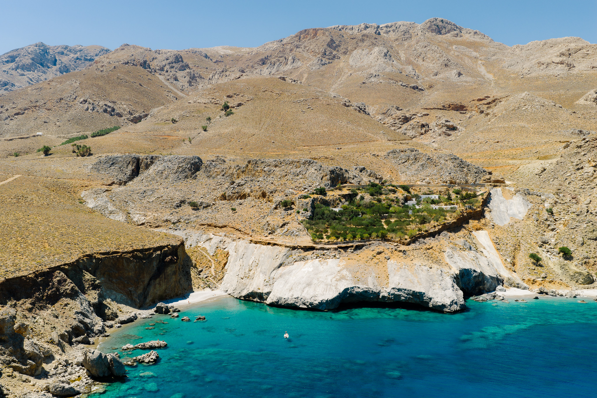 Αφήνοντας το χωριό, η διαδρομή συνεχίζεται μέσα από ένα μονοπάτι που σας οδηγεί στη μονή του Αγίου Νικήτα. Η μονή είναι χτισμένη σε απομονωμένο σημείο, με τη φύση να την αγκαλιάζει και να εντείνει τη μοναδικότητα της εμπειρίας. Ακολουθώντας τα σκαλιά που βρίσκονται κάτω από το μοναστήρι, φτάνετε σε μια απόμερη παραλία για μια δροσερή βουτιά κάτω από τις ζεστές ακτίνες του ήλιου.