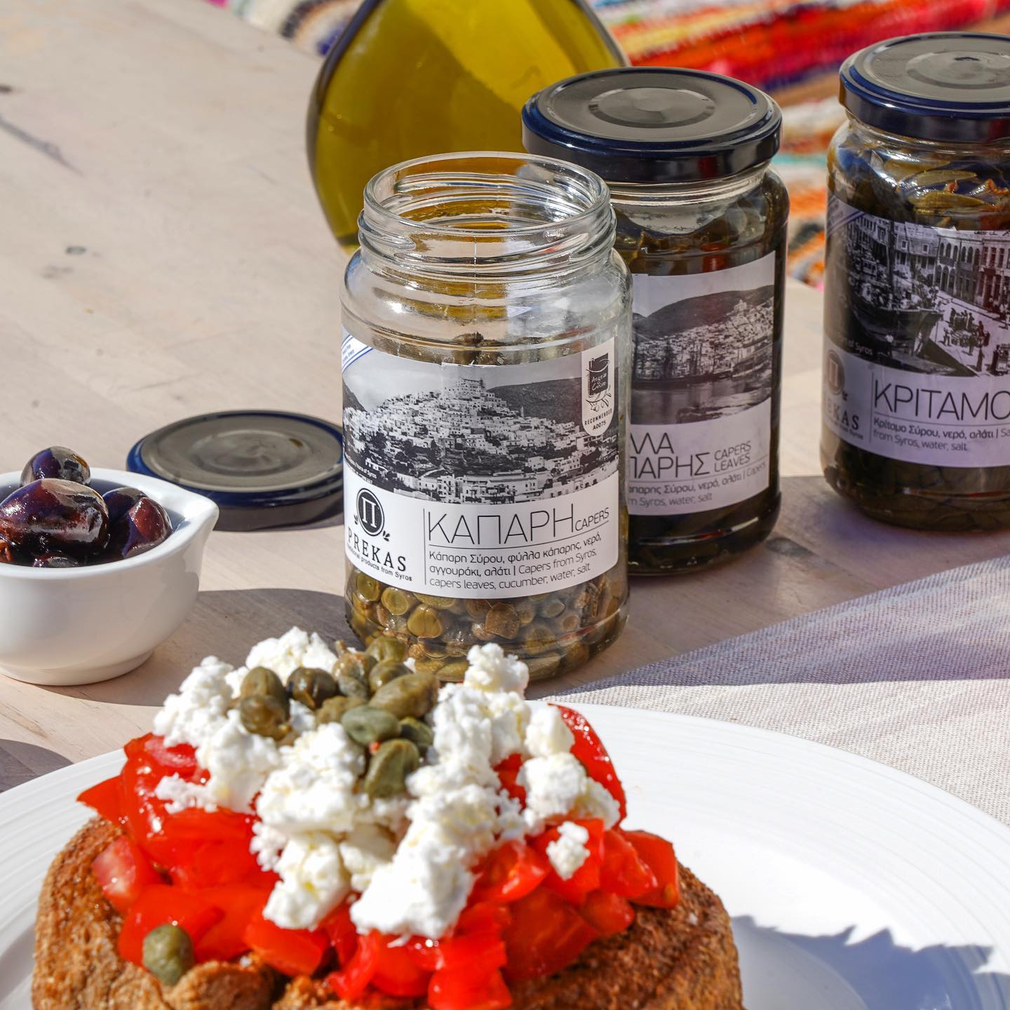 Στον πεζόδρομο της Χίου βρίσκεται η παραδοσιακή αγορά τροφίμων με μανάβικα, ψαράδικα και άλλα μαγαζιά. Διάσημο είναι το μεγάλο κατάστημα Πρέκα, μια αληθινή κιβωτός προϊόντων και βοτάνων από τη Σύρο και όλη την Ελλάδα. Πολύ γνωστό είναι το «Οινοπνευματοπωλείον» του Κριτσίνη, η μεγάλη κάβα που λειτουργεί από το 1917. Διατηρεί ακόμη τα μπουκάλια από το μπράντι, τα λικέρ, τα ούζο, τη μαστίχα που έφτιαχνε ο παππούς. Αξίζει να μπείτε και στο φαρμακείο του Κωβαίου, του 1837, που είναι, όπως λέει ο ιδιοκτήτης του, το «παλαιότερο της νεότερης Ελλάδας».