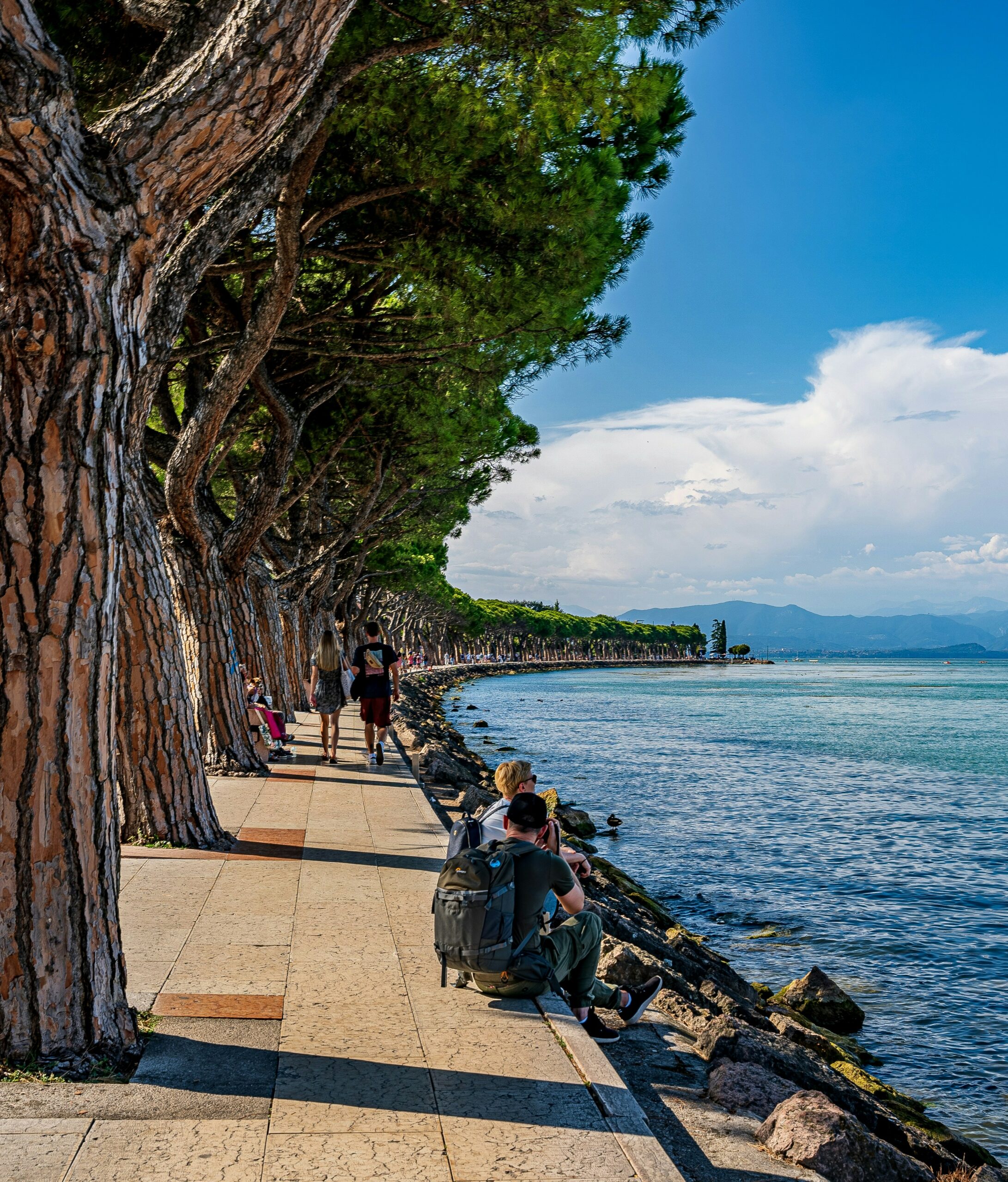 Στα βορειοανατολικά της λίμνης, το Malcesine αποτελεί μία ακόμη στάση που αξίζει να εντάξετε στη διαδρομή. Τα παραλίμνια κτίρια του είναι βαμμένα σε έντονες, χαρούμενες αποχρώσεις, ενώ το βλέμμα τραβά το Castello Scaligero, χτισμένο πάνω σε βραχώδη έξαρση ακριβώς στην όχθη της λίμνης. Το παλαιό τμήμα της πόλης, που εκτείνεται πίσω από το κάστρο, διατηρεί αναλλοίωτη την ατμόσφαιρά του, με στενά βοτσαλωτά δρομάκια και μικρές πλατείες που ενισχύουν τη γοητεία του.