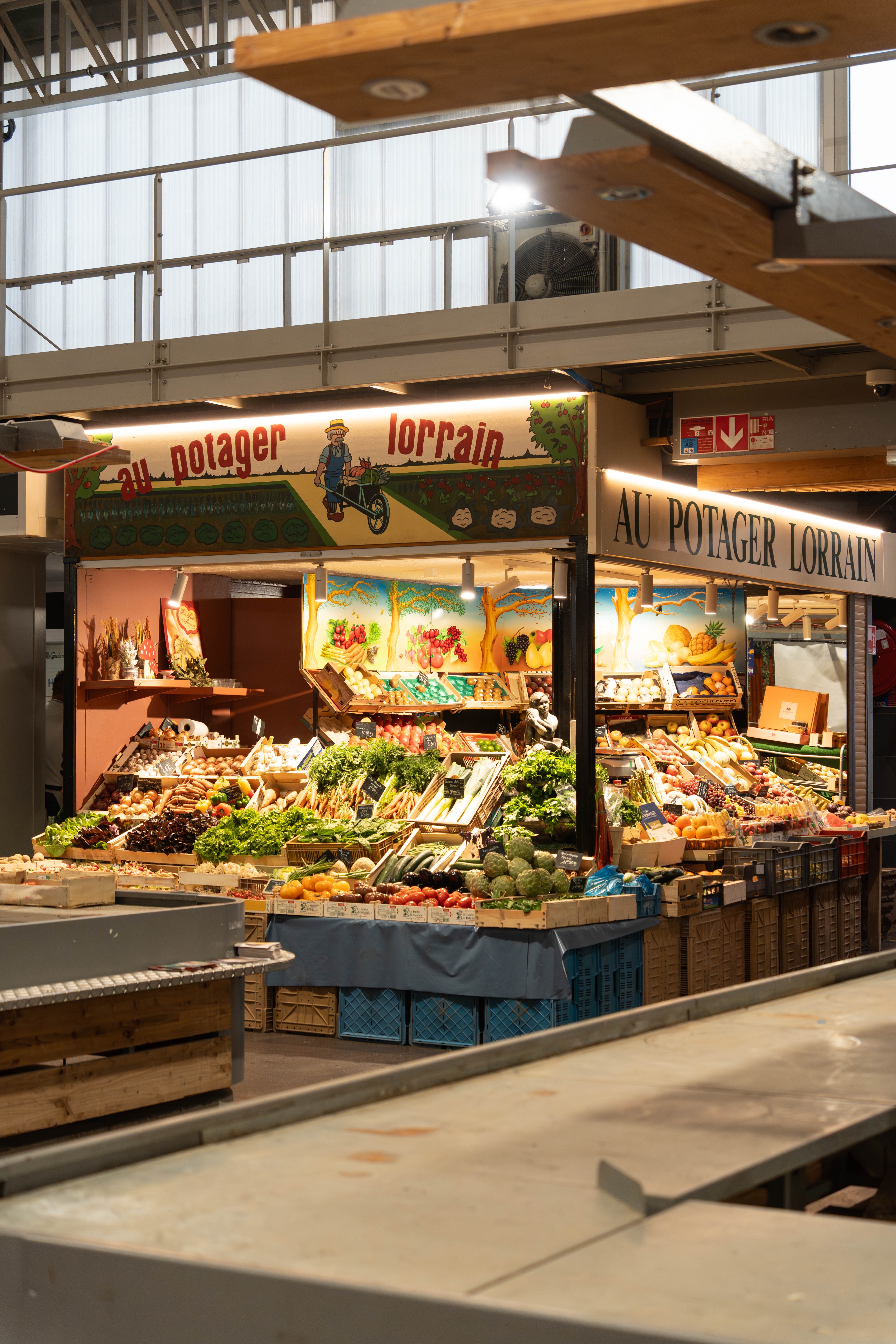 Ένα ακόμα σημείο που αξίζει να επισκεφθείτε είναι η κεντρική αγορά της πόλης. Στεγάζεται σε ένα όμορφο κτήριο του 19ου αιώνα και φιλοξενεί περισσότερα από εξήντα καταστήματα, όπου θα βρείτε φρέσκα φρούτα, λαχανικά, ψάρια, κρέατα, αλλαντικά και φυσικά πολλές τοπικές σπεσιαλιτέ της Λωρραίνης. Μεταξύ αυτών, η διάσημη quiche Lorraine, που έχει γίνει γνωστή και στην Ελλάδα, αλλά και τα macaron de Nancy, οι madeleines de Liverdun και οι παραδοσιακές καραμέλες Bergamote de Nancy, με γεύση περγαμόντου, ένα χαρακτηριστικό τοπικό προϊόν.