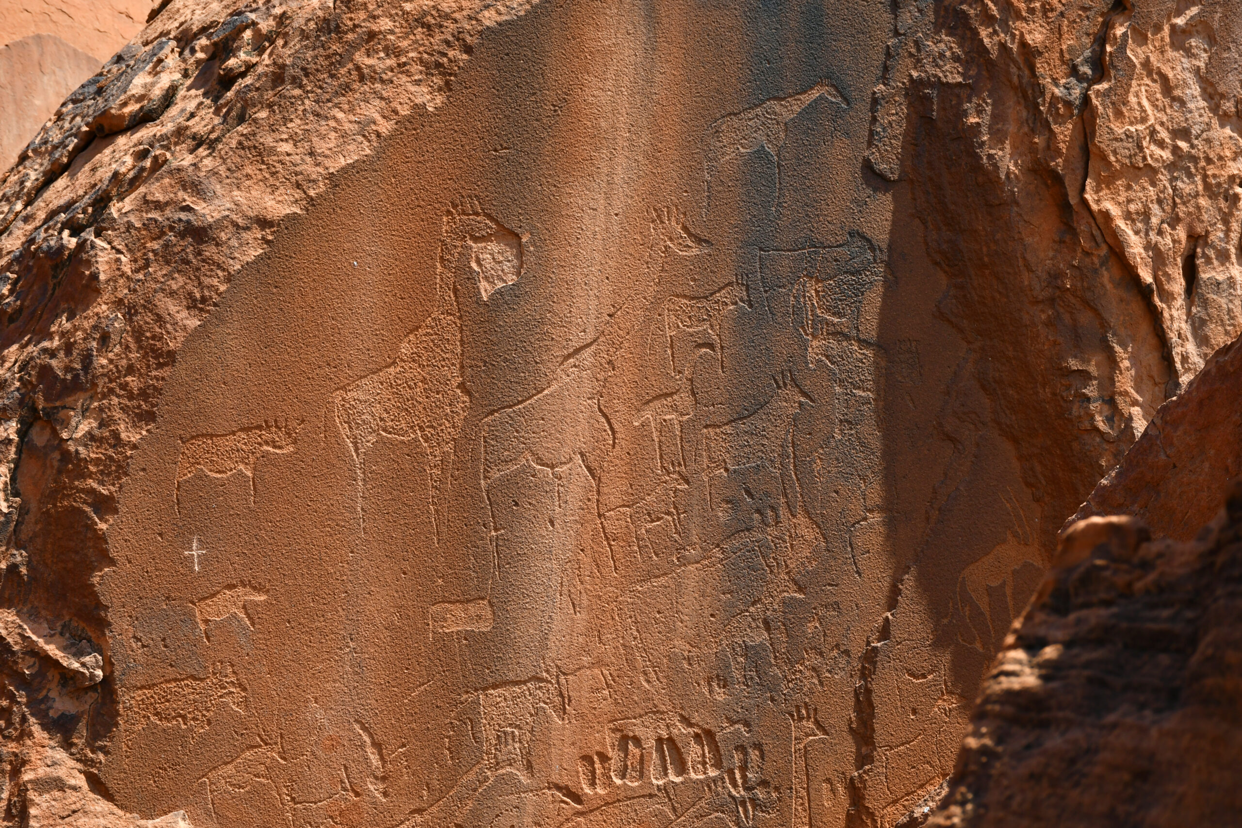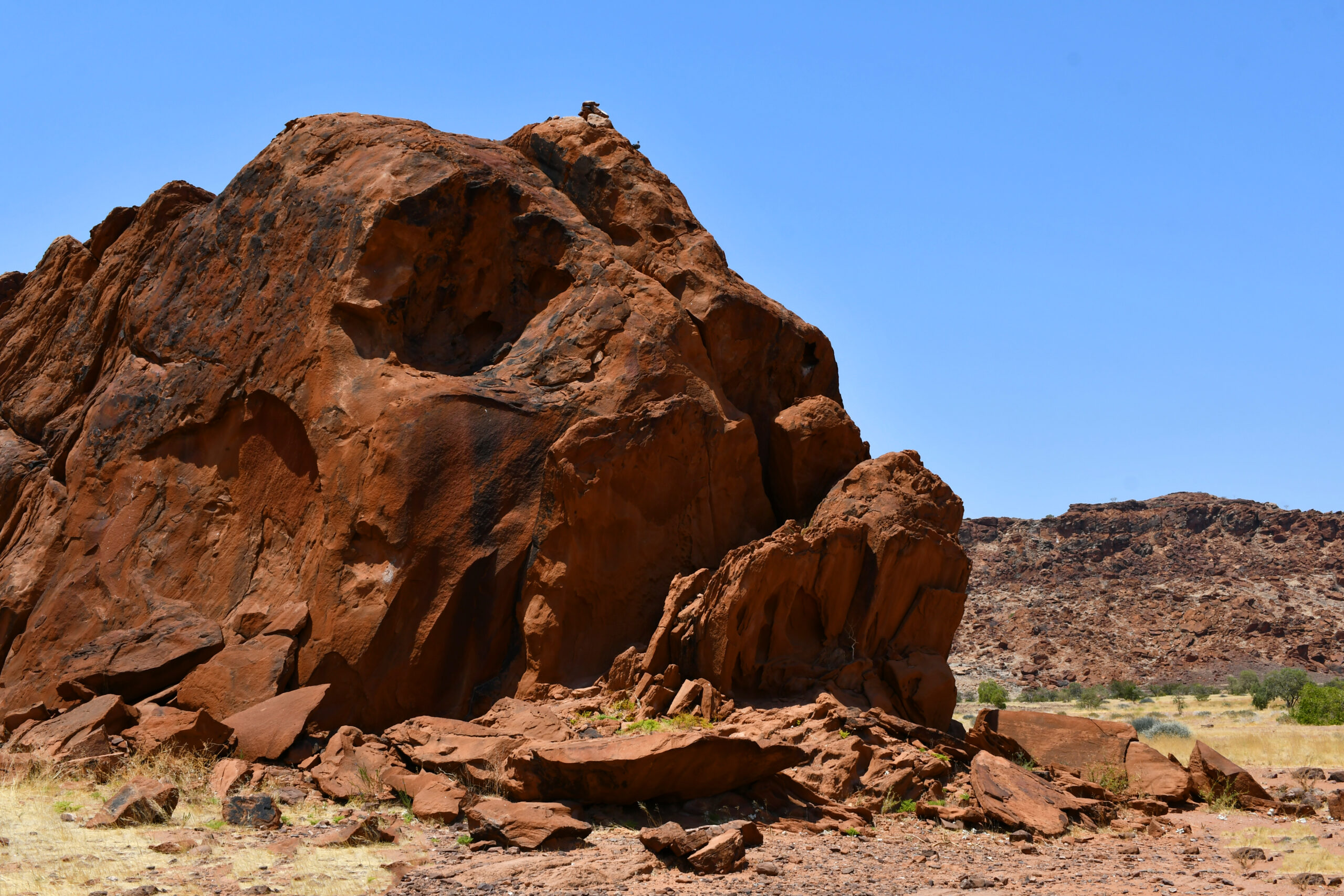 Ένα τοπίο αρχέγονο που ψιθυρίζει ιστορίες ανθρώπων της λίθινης εποχής, τότε που η επιβίωση ήταν τέχνη. Φωλιασμένη ανάμεσα στο εμβληματικό όρος Brandberg και το μικρό οικισμό Twyfelfontein, η γη των Νταμάρα, δεν είναι απλώς μια ακόμη έρημος. Είναι ένας τόπος με ιδιαίτερη πολιτιστική και γεωλογική σημασία, καθώς συνδυάζει τα γεωλογικά μνημεία, με την πλούσια βιοποικιλότητα και τους αρχαιολογικούς θησαυρούς. Σήμερα οι βράχοι του Τουάιφελφοντέϊν φιλοξενούν την μεγαλύτερη συγκέντρωση βραχογραφιών στην Αφρική και η περιοχή περιλαμβάνεται από το 2007 στα Μνημεία Παγκόσμιας Κληρονομιάς της UNESCO. Σκαλισμένα από τους Σαν (Bushmen) κυνηγούς-τροφοσυλλέκτες της λίθινης εποχής, τα πετρογλυφικά απεικονίζουν μορφές άγριας ζωής, καμηλοπαρδάλεις, ρινόκερους, λιοντάρια, ελέφαντες, στρουθοκαμήλους, αλλά και ανθρώπινες μορφές με τελετουργικό και σαμανικό χαρακτήρα. Χαρακτηριστική είναι η βραχογραφία με το λιοντάρι που φέρει ανθρώπινα άκρα.