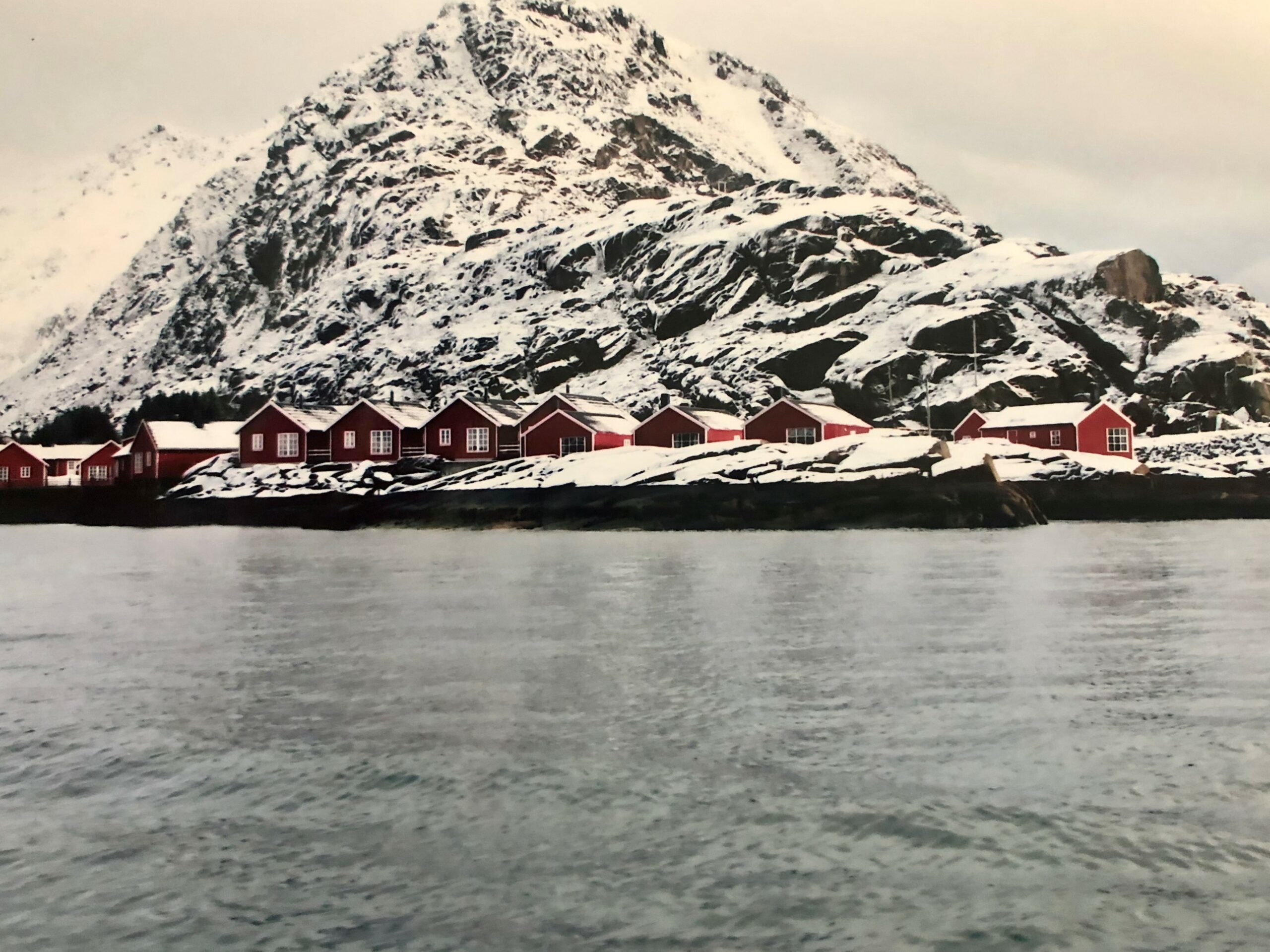 Μένουμε στο μοναδικό ξενοδοχείο του νησιού, το Bryggehotell, ακριβώς στην άκρη της αποβάθρας. Ένα κτίριο με ξύλινη βαθυκόκκινη επένδυση και παράθυρα στη σειρά, στο ύφος των rorbu των παραδοσιακών σπιτιών των νορβηγών ψαράδων. Εδώ, στην άκρη της αποβάθρας, στην άκρη του νησιού, στην άκρη του κόσμου, οι πιο κοντινοί μας γείτονες είναι η θάλασσα και τα γύρω βουνά, γνωστά και ως το Τείχος των Lofoten. Ένα πέτρινο τείχος από πανύψηλες κορυφές και ιλιγγιώδεις πλαγιές που αναδύονται κάθετα από τη θάλασσα.