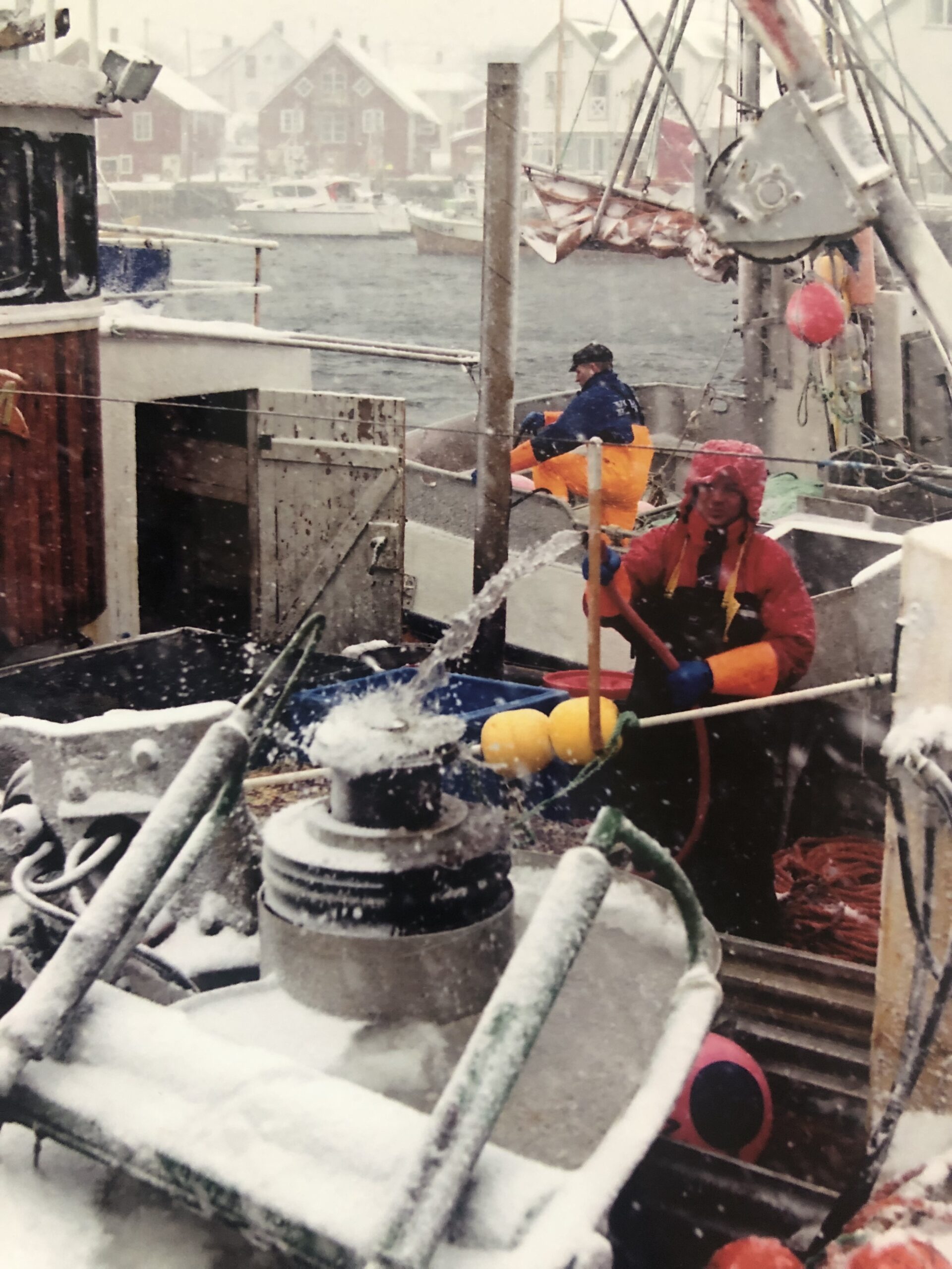 Περπατώντας προσεκτικά πάνω στο χιόνι φτάνουμε στο σημείο που φεύγουν τα αλιευτικά και μαθαίνουμε πως την περίοδο της αλιείας ο πληθυσμός του νησιού σχεδόν τετραπλασιάζεται. Μια σύγχρονη αλιευτική κοινότητα με περίπου 400 σκάφη και πάνω από 1500 ψαράδες που την εποχή αυτή φορούν τα παραδοσιακά τους αδιάβροχα καπέλα, τα sou’wester, μπαίνουν στα σκάφη τους και βγαίνουν στη θάλασσα. Η επαγγελματική αλιεία στα Lofoten είναι μια χειμερινή δραστηριότητα που βρίσκεται στην ακμή της μεταξύ Ιανουαρίου και Απριλίου. Αυτό διότι στην αρχή κάθε χρόνου, ο μπακαλιάρος ηλικίας περίπου πέντε ετών, που αλιεύεται το χειμώνα έξω από τις ακτές της Νορβηγίας (skrei) έρχεται από τη θάλασσα του Μπάρεντς στα φιόρδ για να γεννήσει.
