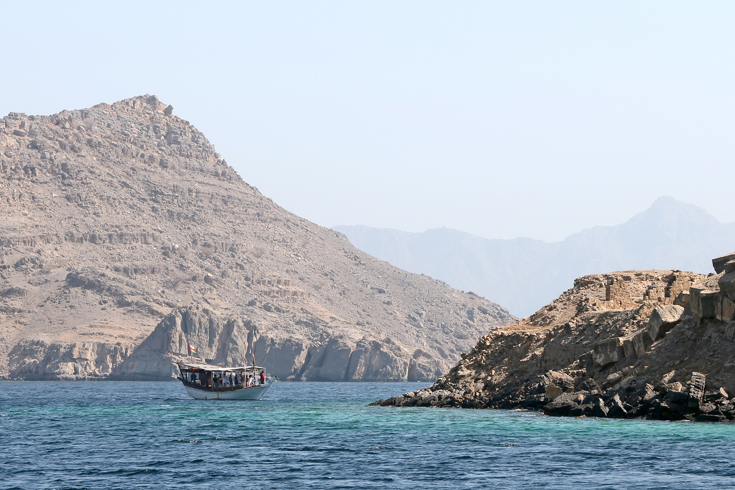 Εκεί, η επίπεδη έρημος του Ras-Al-Khaimah του βορειότερου από τα Ηνωμένα Αραβικά Εμιράτα δίνει τη θέση της σε εντυπωσιακά βουνά τα οποία συμπληρώνονται από διαδοχικούς λαβύρινθους από κόλπους και ορμίσκους. Είναι η γη των φιόρδ της ερήμου, εξίσου εντυπωσιακή με την αντίστοιχη της Σκανδιναβίας.