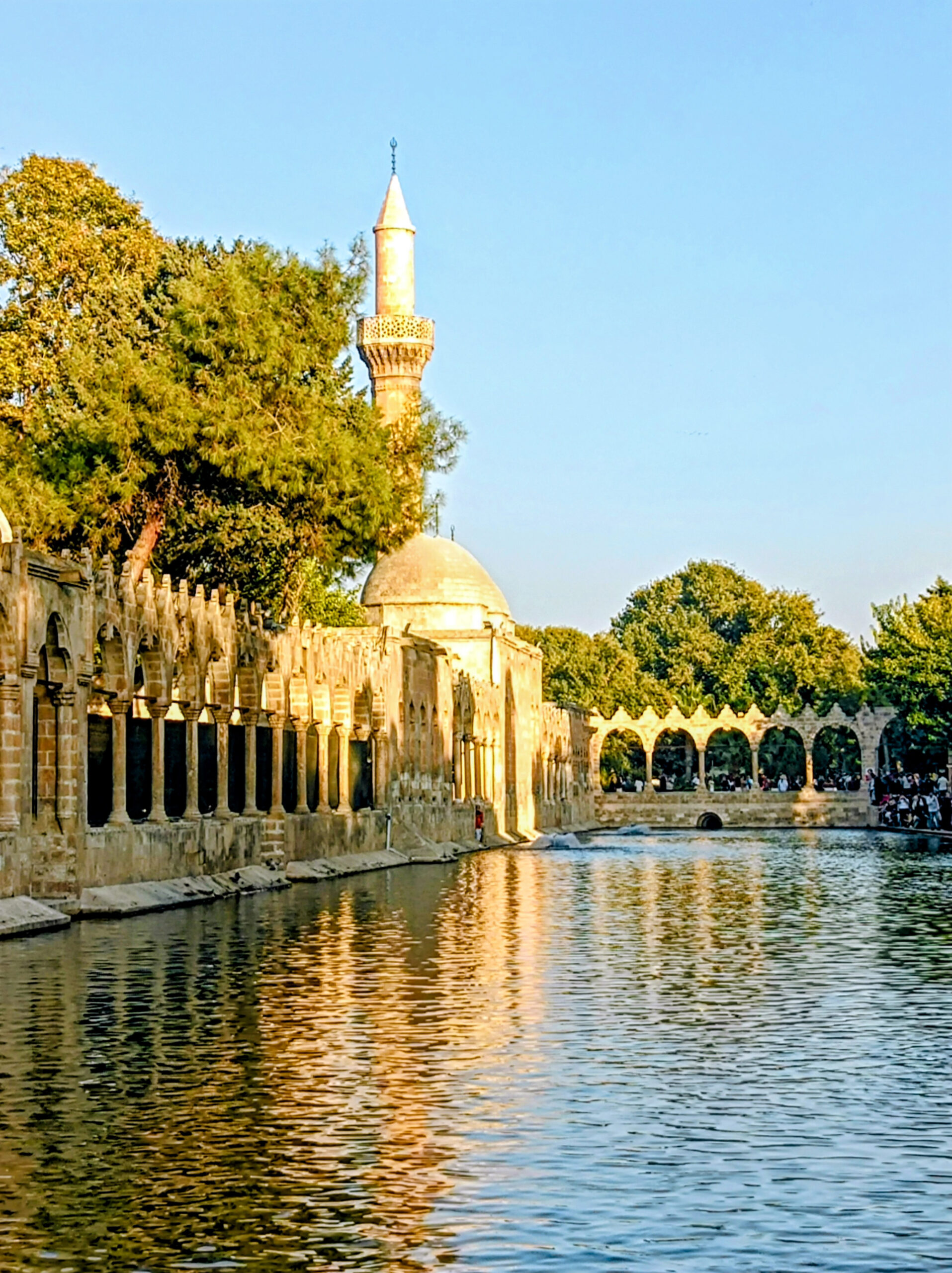 Πρώτη μας επίσκεψη λοιπόν είναι η λίμνη Balikligol. Ένα πανέμορφο τοπίο που αν το συνδυάσει κανείς με τη βιβλική ιστορία του χώρου του δίνει μια ξεχωριστή διάσταση. Σύμφωνα με τον θρύλο, ο βασιλιάς της Ούρφα, Νεμρούτ είχε σκοπό να θυσιάσει τον Αβραάμ στην πυρά, η οποία ως εκ θαύματος μετατράπηκε σε λίμνη και τα κάρβουνα σε ψάρια, έτσι δημιουργήθηκε η λίμνη Balinkligol. Δίπλα από τη λίμνη, στη σπηλιά που γεννήθηκε ο Αβραάμ, έχει χτιστεί το 1211 το τζαμί Halil-ur-Rahman. Το τοπίο είναι πανέμορφο. Καθόμαστε για λίγη ώρα και στη συνέχεια πάμε στο κέντρο της πόλης, εκεί που βρίσκεται ένα από τα γραφικότερα παζάρια.