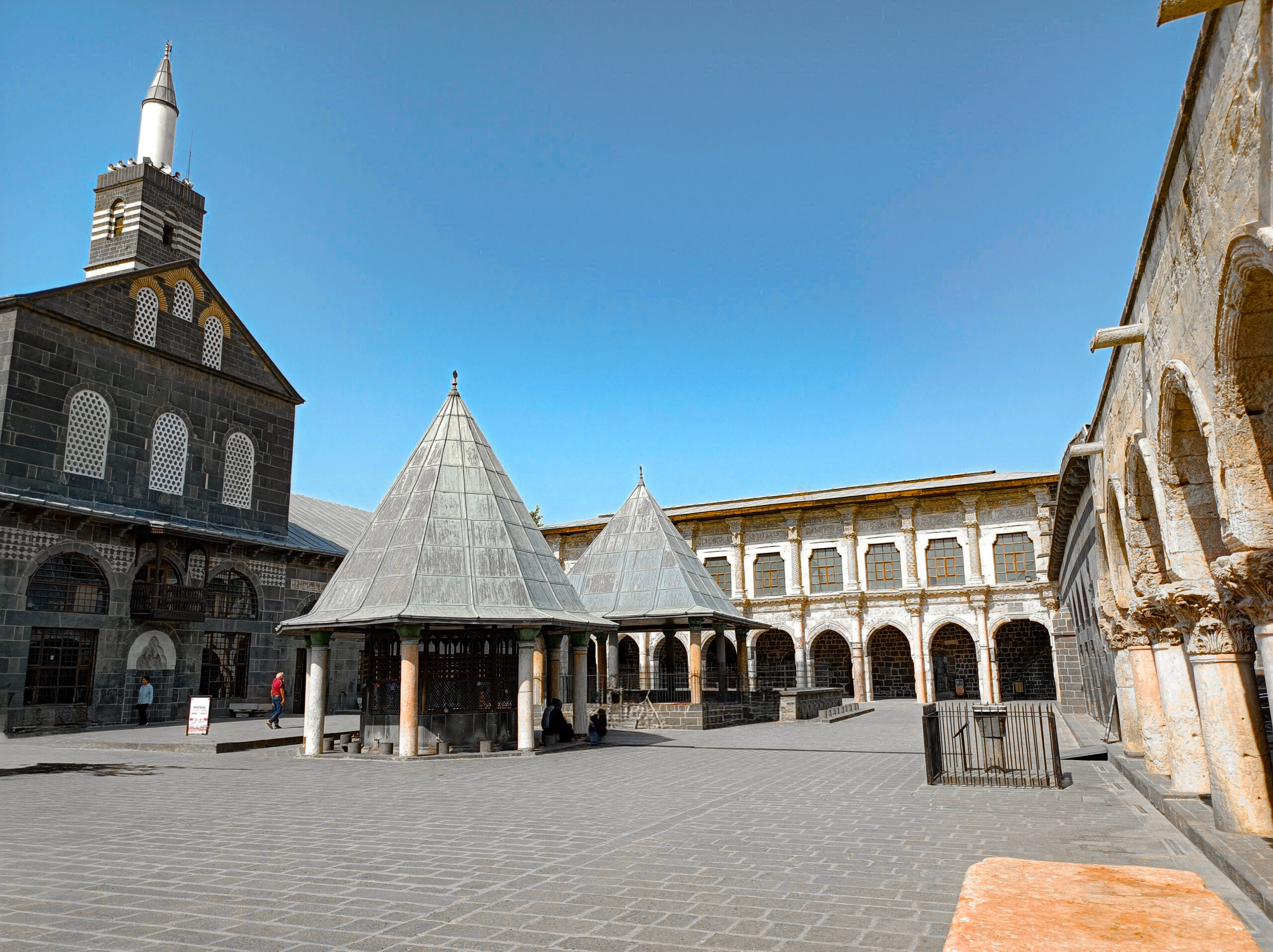 Πρώτη μας επίσκεψη το μεγάλο τζαμί Ulu Camii που είναι από τα πρώτα τζαμιά της Ανατολής και χρονολογείται τον 7ο αιώνα. Συνεχίζουμε στην Αρμένικη εκκλησία του Αγίου Κυριάκου, στην οποία ακούμε τον ιερέα να ψάλλει ένα απόσπασμα της Βίβλου στα αραμαϊκά, τη γλώσσα που μιλούσε ο Χριστός και στην συνέχεια τον χαλδαϊκό ναό του τοπικού Αγίου Πετυούν του 1700. Κάνουμε μια στάση για καφέ στην αυλή του ιστορικού Καραβάν Σεραϊ Πασά και μετά πάμε να επισκεφθούμε παλιές κουρδικές γειτονιές της περιοχής Σουρ που πριν λίγα χρόνια είχαν δεχθεί επιθέσεις από τουρκικές ένοπλες δυνάμεις. Σ’ ένα στενό σοκάκι ακούμε τους Dengbej. Το Dengbeji είναι ένα κουρδικό είδος μουσικής που εκτελείται από τους Dengbej, οι οποίοι αναπαράγουν παραδοσιακούς ήχους και αφηγήσεις μεταφέροντας έτσι την κουρδική ιστορία και την κουλτούρα τους.