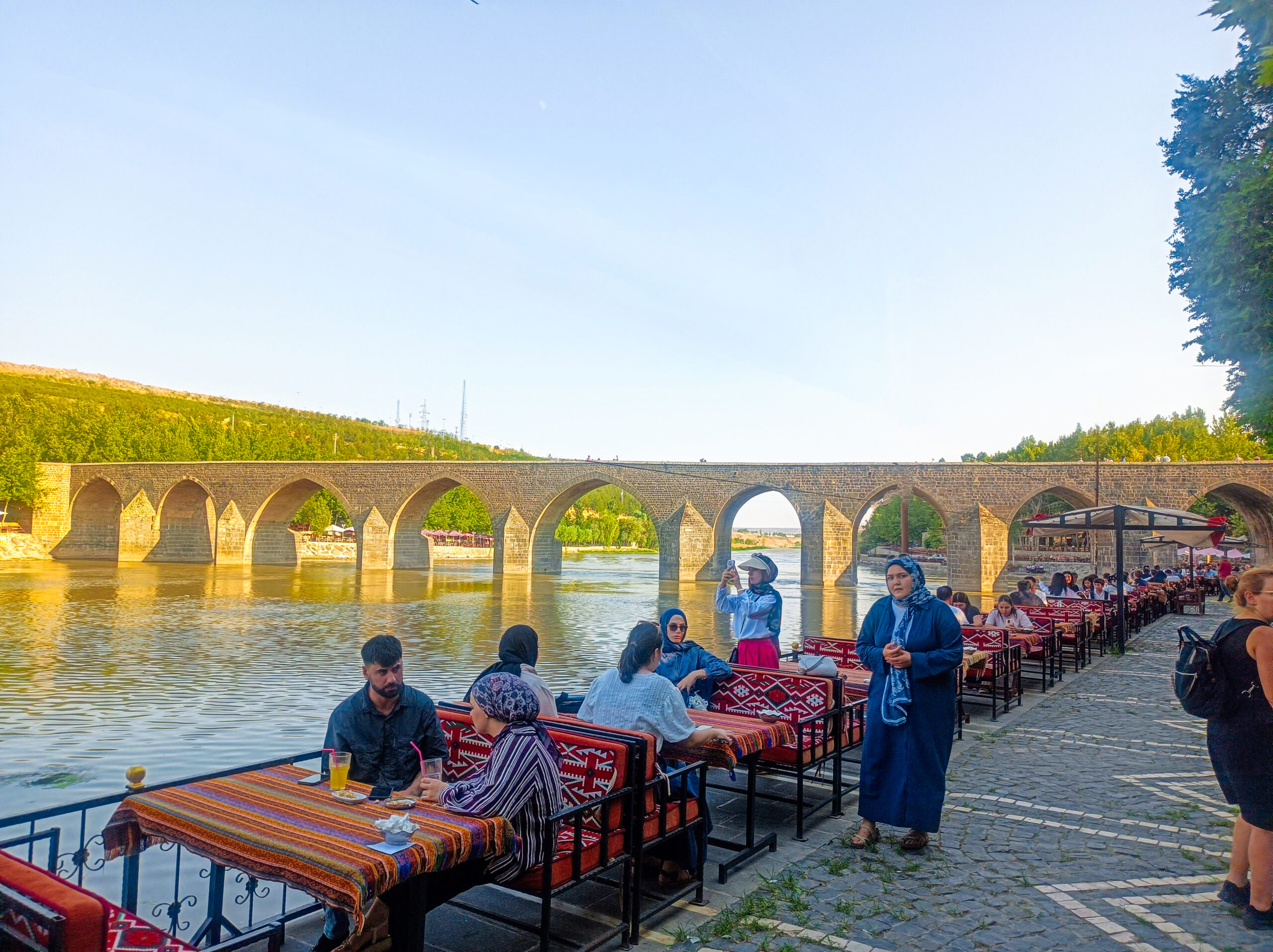 Μετά από αυτή την αναπάντεχη εμπειρία που ζήσαμε μέσα σ’ ένα Dengbej Evi (σπίτι των Dengbej), φεύγουμε για την ιστορική «Γέφυρα των δέκα Αψίδων», η οποία βρίσκεται δύο χιλιόμετρα νότια από τα τείχη του Ντιγιαρμπακίρ. Η γέφυρα, η οποία θεωρείται ορόσημο του Ντιγιαρμπακίρ, κατασκευάστηκε το 1.062 μ.Χ. και συνδέει τις δυο όχθες του Τίγρη με ογκόλιθους χτισμένους σε δέκα αψίδες. Τις καταπράσινες όχθες του ποταμού κοσμούν καφέ και ταβέρνες προσφέροντας μαγευτική θέα στην πανύψηλη γέφυρα. Καθόμαστε για φαγητό απολαμβάνοντας την υπέροχη θέα και στη συνέχεια αναχωρούμε για Μαρντίν διασχίζοντας κάθετα τον Τίγρη ποταμό.