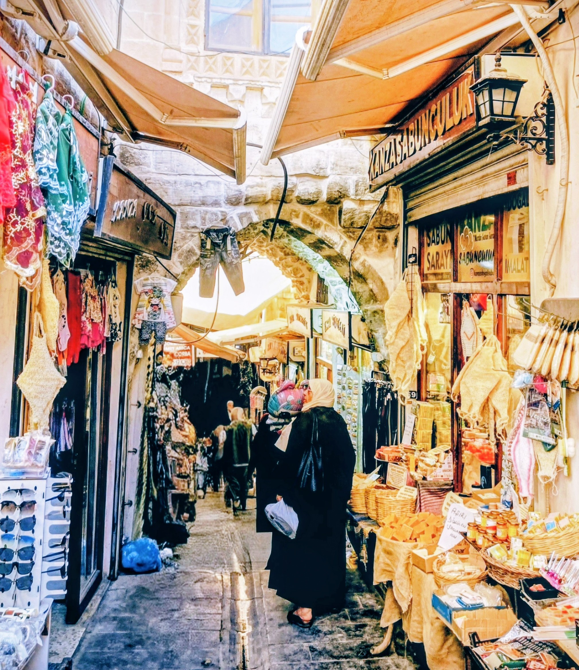 Κάνουμε έναν ευχάριστο περίπατο στο πολύβουο ιστορικό κέντρο με το σκεπαστό αψιδωτό παζάρι και τα ανακαινισμένα χάνια. Εκεί διαπιστώνω ότι είμαστε οι μόνοι μη Τούρκοι τουρίστες. Καθόμαστε στο ιστορικό “Tahmis Kahvesi” που λειτουργεί στην ίδια τοποθεσία από το 1635 για να δοκιμάσουμε τον διάσημο καφέ «Μενεγκιτς» φτιαγμένο από αλεσμένους καρπούς αγριοφυστικιάς.