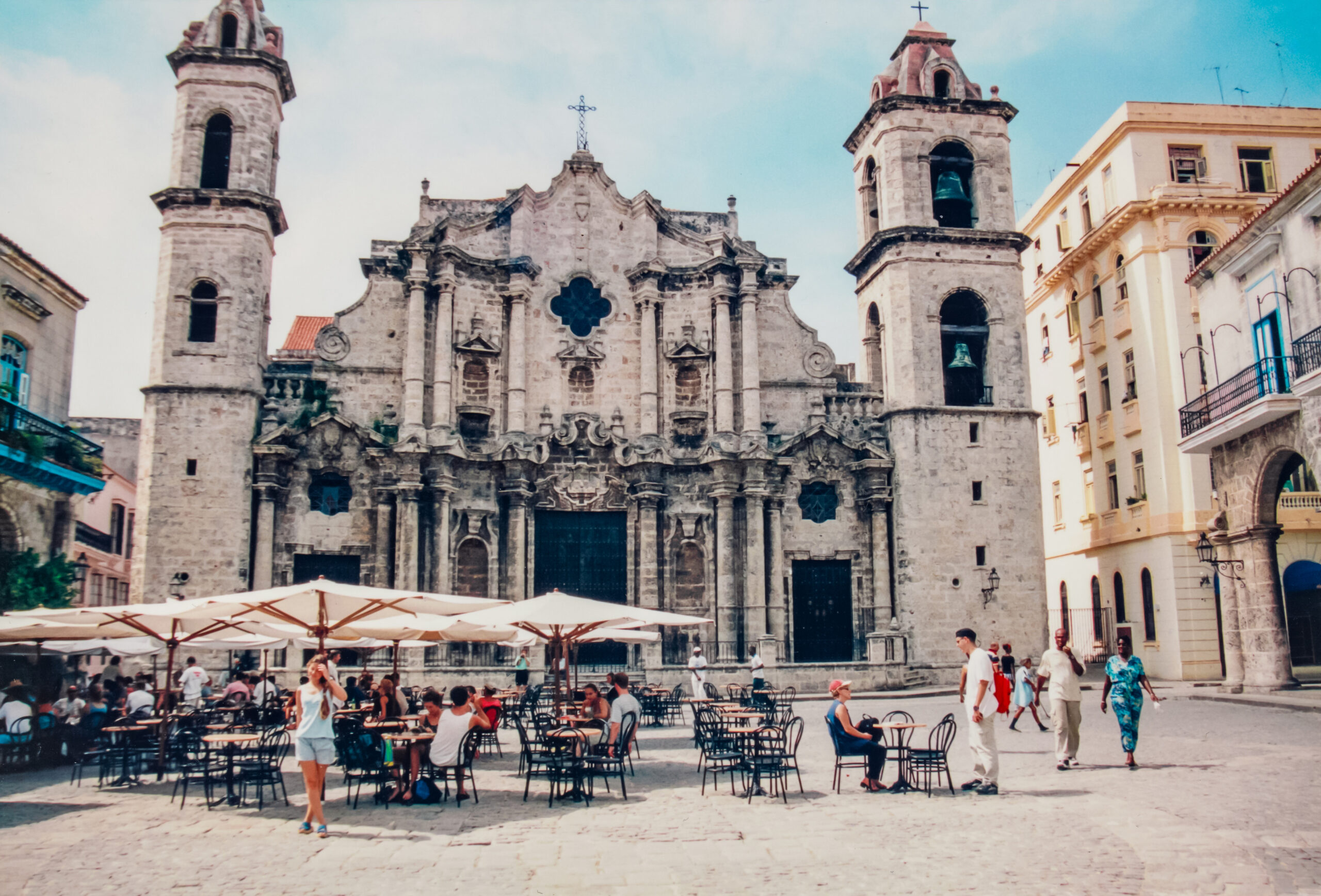 Φθάνουμε στην πλατεία του καθεδρικού ναού San Cristobal de la Habana γεμάτη από κόσμο. Εκεί, συναντάμε πολλούς ντόπιους, οι οποίοι ασκούν μια θρησκεία που ονομάζεται Santeria, μια αφρο-καραϊβική θρησκεία που αναπτύχθηκε στην Κούβα μετά το δουλεμπόριο του Ατλαντικού του 16ου έως τον 19ο αιώνα και η οποία συνδυάζει πτυχές της θρησκείας της Δυτικής Αφρικής με τον Χριστιανισμό. Συνεχίζουμε στην Plaza Vieja, μια όμορφη πλατεία που περιβάλλεται με αποικιακά κτίρια όπου το κουβανέζικο μπαρόκ φωλιάζει δίπλα στο art-nouveau εμπνευσμένο από τον Γκαουντί. Κατά την διάρκεια του καθεστώτος του Batista κατασκευάστηκε εδώ ένας υπόγειος χώρος στάθμευσης, αλλά ευτυχώς αυτό το τερατούργημα κατεδαφίστηκε το 1996. Η περιοχή εδώ είναι γεμάτη από μπαρ, εστιατόρια και καφέ.