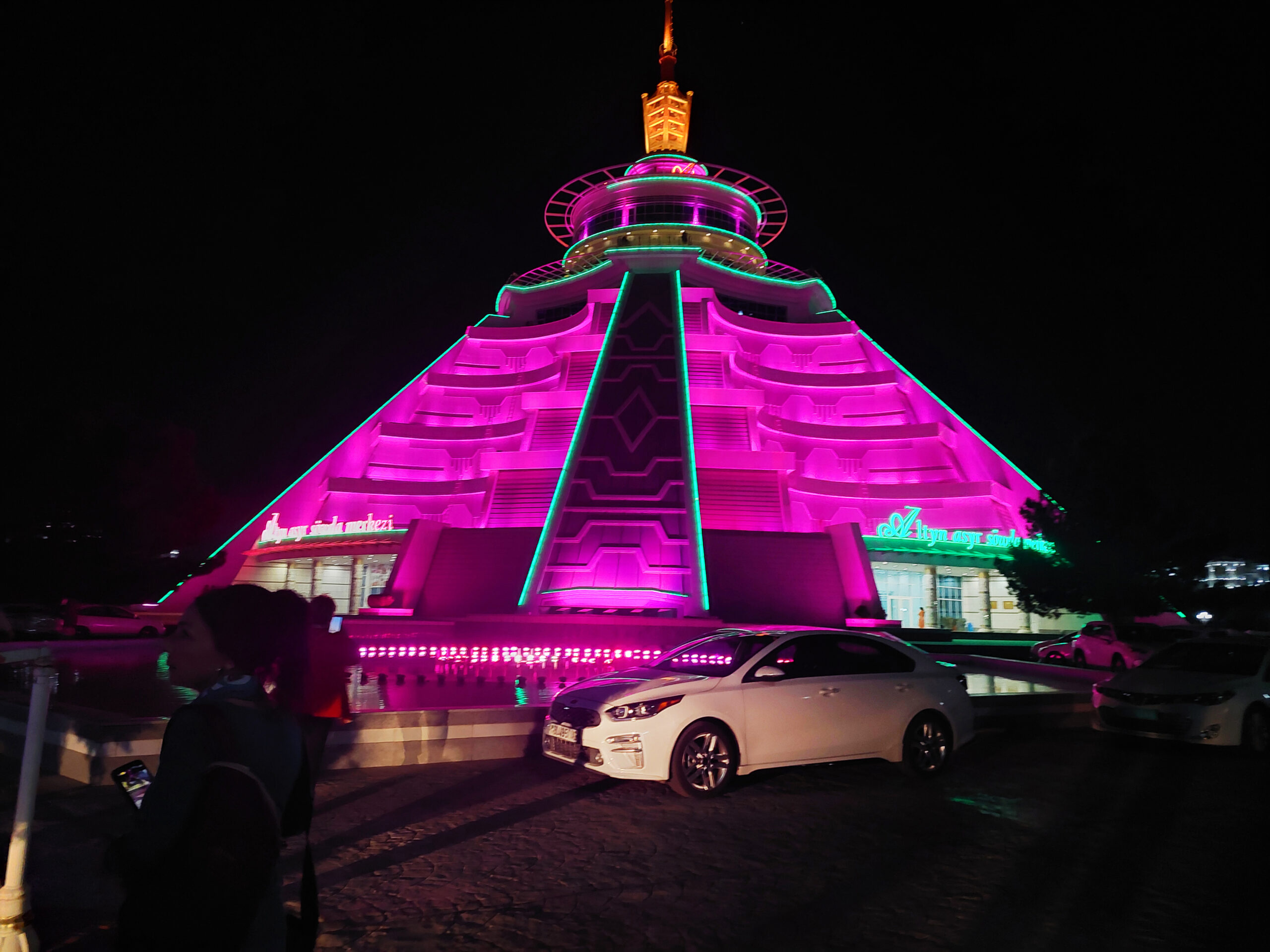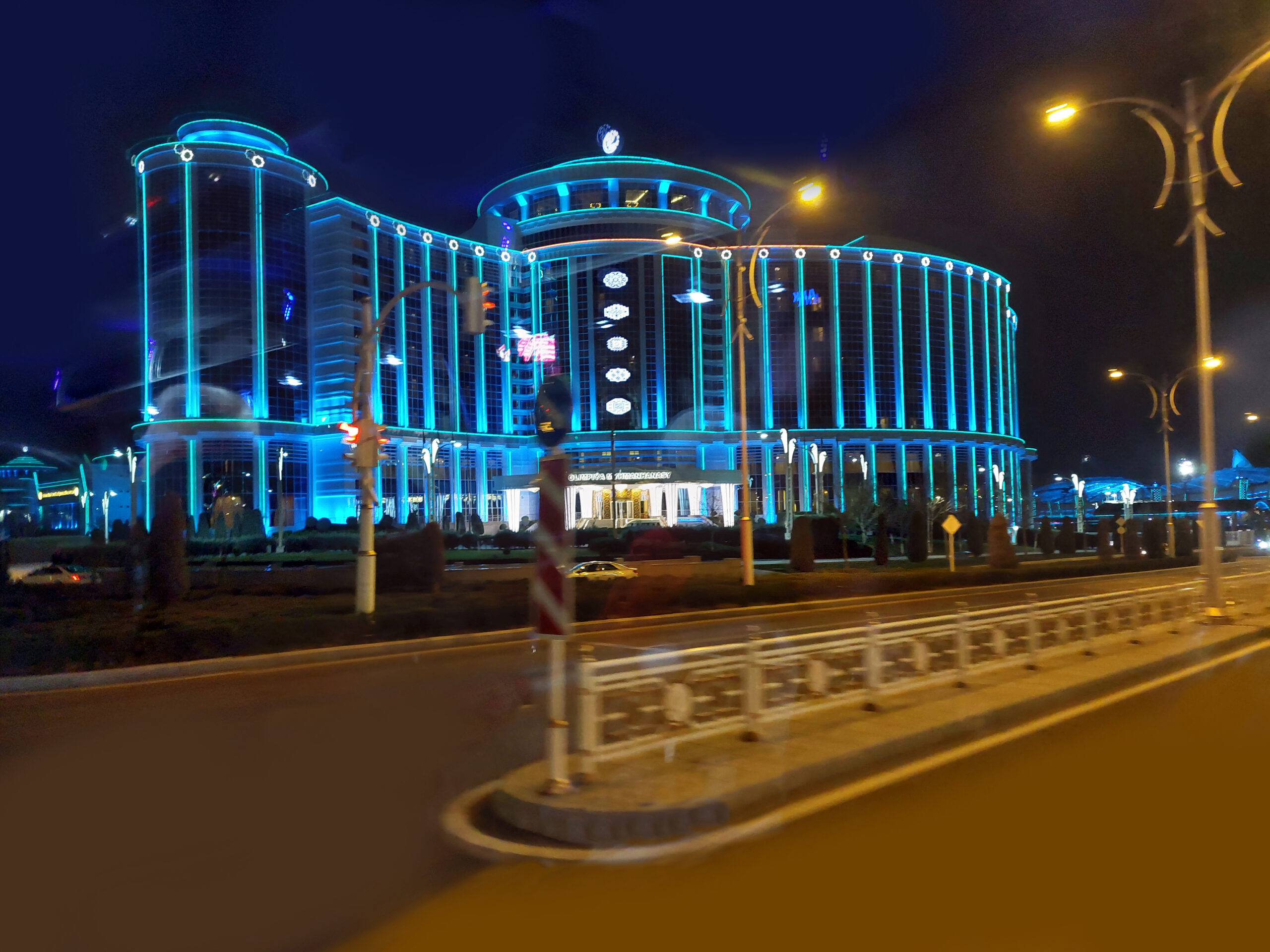 Το βράδυ πάντως η Ασγκαμπάτ αλλάζει πρόσωπο, μεταμορφώνεται, γίνεται ακόμη πιο φωτεινή, πολύχρωμη, υπέρλαμπρη. Τη μονοχρωμία διαδέχεται η πολυχρωμία με τη βοήθεια του ηλεκτρικού ρεύματος. Αλλά αυτό είναι το μόνο που δεν μας εκπλήσσει. Με δύο πρόσωπα άλλωστε εμφανίζεται η ίδια η χώρα. Πλούτος και λάμψη στην πρωτεύουσα, φτώχεια και ταπεινότητα στην περιφέρεια. Σε κάποιες περιοχές και η εγκατάλειψη.