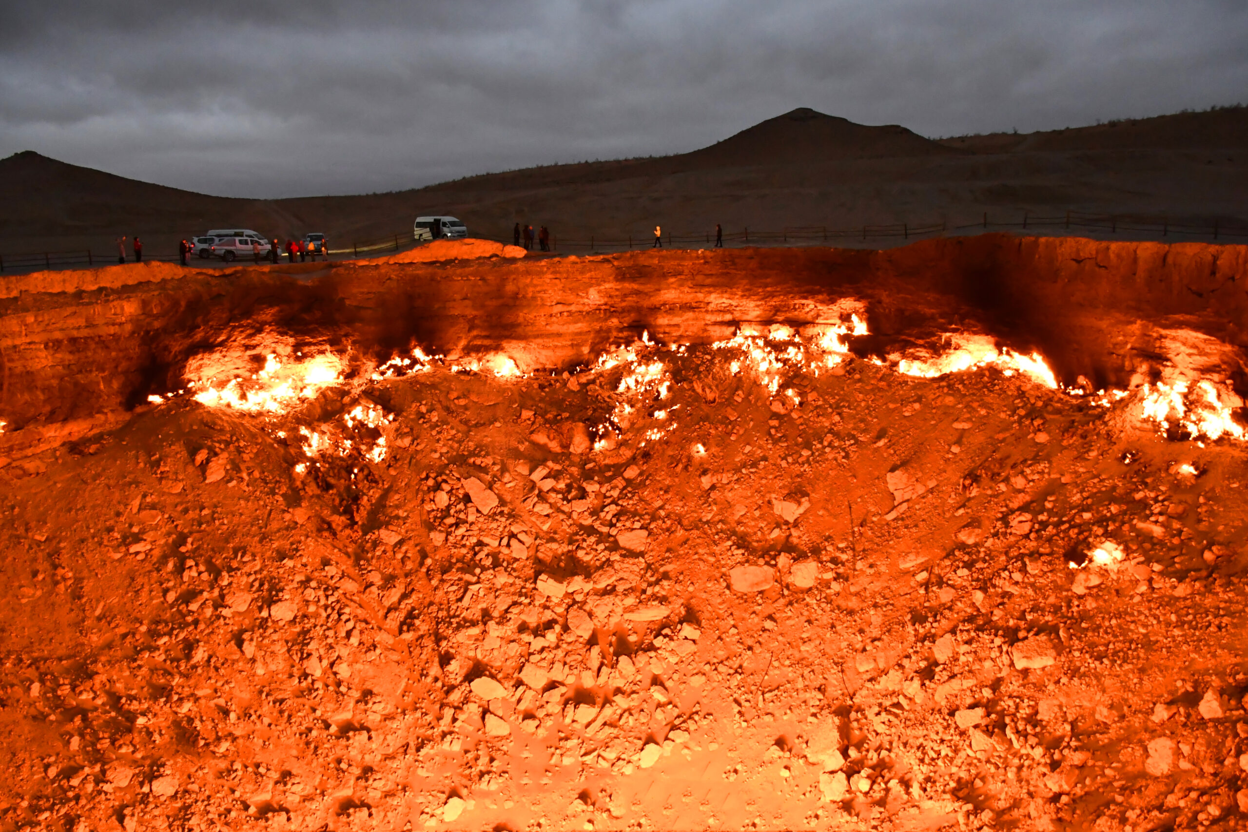 Αδιάψευστη απόδειξη η Νταρβάζα. Ο κρατήρας με τις πύρινες φλόγες στην καρδιά της ερήμου. Προέκυψε από μια γεώτρηση Σοβιετικών γεωλόγων πριν από μισό αιώνα. Η γεώτρηση χτύπησε υπόγειο σπήλαιο, γεμάτο φυσικό αέριο, το έδαφος υποχώρησε, το αέριο απελευθερώθηκε κι άρχισε να εκτοξεύει δηλητηριώδες μεθάνιο. Για να αναχαιτίσουν τις συνέπειες οι επιστήμονες έβαλαν φωτιά στον κρατήρα που δημιουργήθηκε, πιστεύοντας ό τι το αέριο θα εξαντληθεί σύντομα και η φωτιά θα σβήσει. Διαψεύστηκαν, από τότε ο κρατήρας φλέγεται και αποτελεί έκτοτε ένα από τα τουριστικά αξιοθέατα της χώρας. Νταρβάζα, η επονομαζόμενη και «Πύλη της Κόλασης».