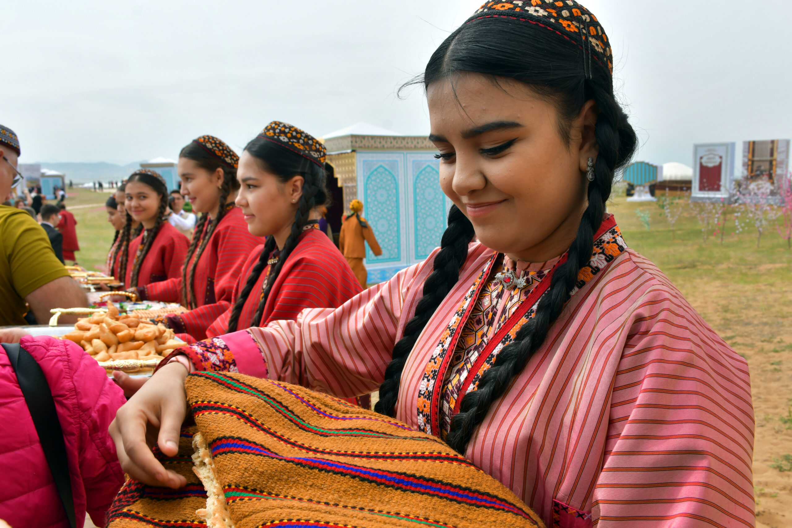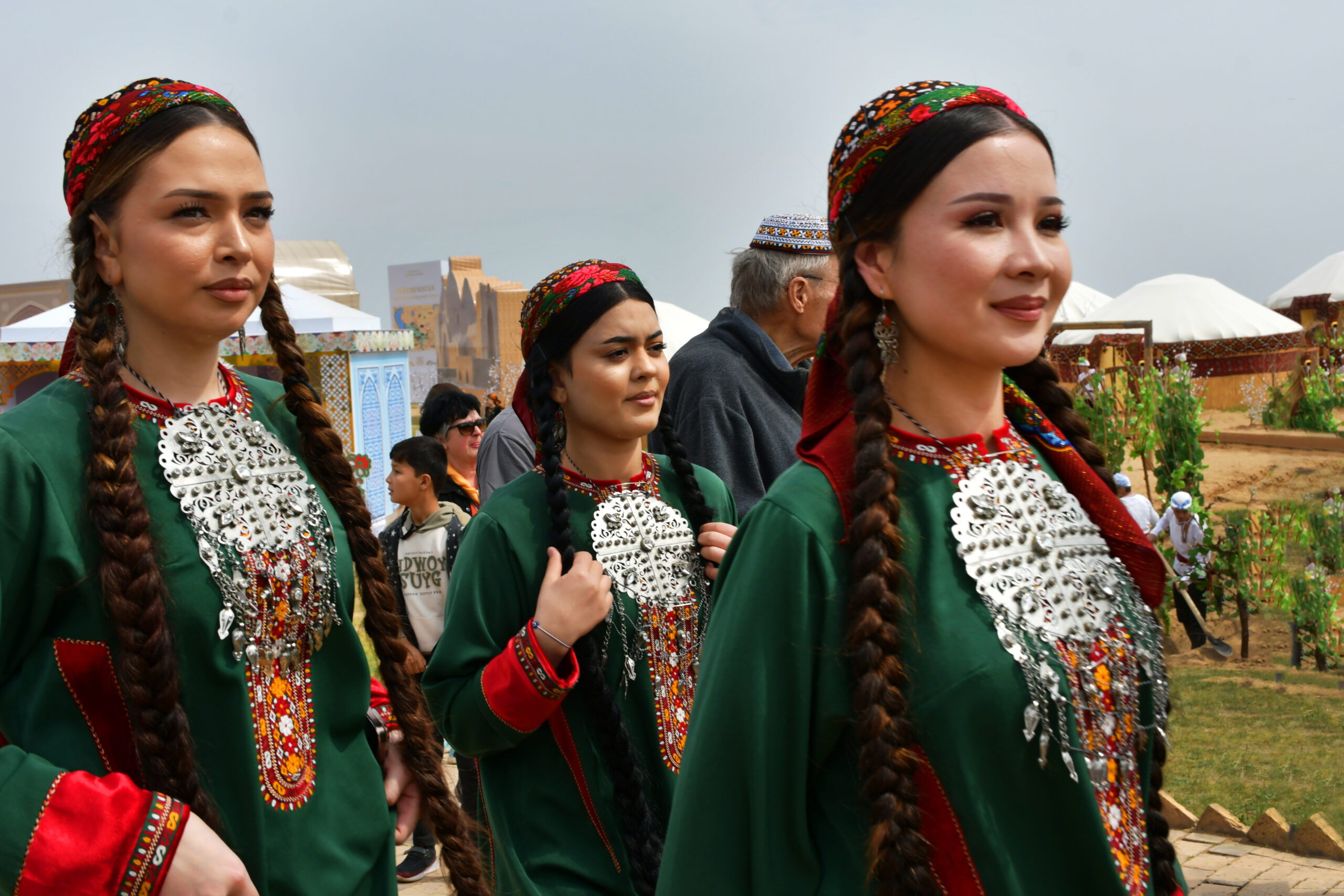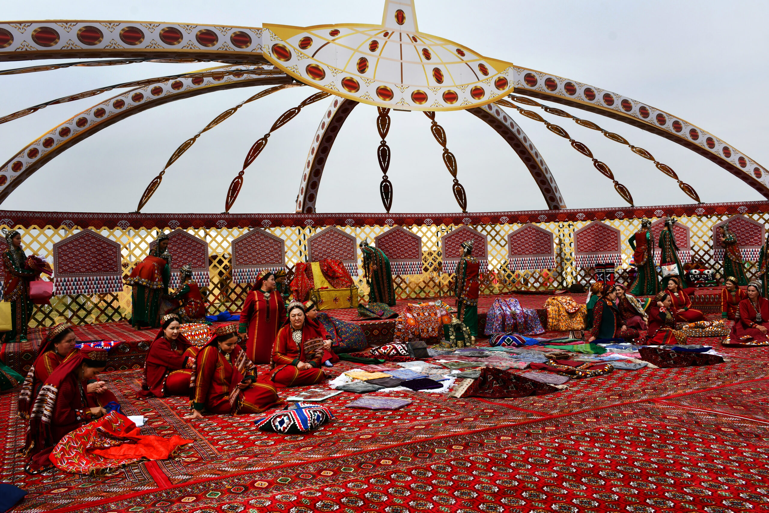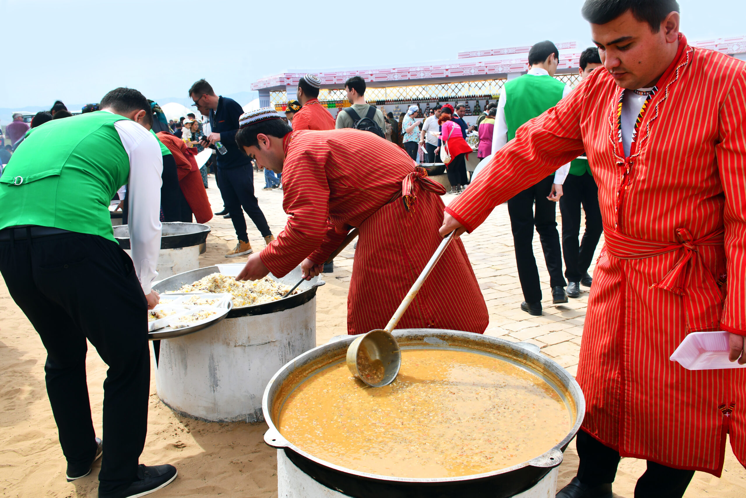 Κι ήρθε η ώρα για το Νοβρούζ. Μια πανάρχαια γιορτή που έλκει την καταγωγή της από την Περσία και τον ζωροαστρισμό. Το όνομά της σημαίνει «Πρωτοχρονιά» στα φαρσί, καθώς για τους αρχαίους Πέρσες σηματοδοτούσε την πρώτη ημέρα του νέου έτους. Το Νοβρούζ γιορτάζεται κάθε χρόνο σε όλες τις χώρες της Κεντρικής Ασίας την ημέρα της εαρινής ισημερίας για να καλωσορίσει την Άνοιξη, την Αναγέννηση, την Ζωή. Με τα παραδοσιακά καλπάκια και την ευχή «Νοβρούζ Μομπαράκ» (Ευλογημένο Νοβρούζ) φθάσαμε στο χώρο της γιορτής υπό την συνοδεία αξιωματούχου του υπουργείου Πολιτισμού. Μαζί με εμάς δύο ακόμα ολιγάριθμα γκρουπ ξένων ταξιδιωτών. Στην κοιλάδα Αχάλ στα περίχωρα της Ασγκαμπάτ έχει στηθεί ένα αυθεντικό Τουρκμένικο χωριό από γιούρτες. Στο κέντρο του χωριού εκτυλίσσονται ποικίλα θεατρικά δρώμενα, με αναπαραστάσεις και εικόνες από την παράδοση, την κουλτούρα και την καθημερινότητα των νομάδων της στέπας, με παραδοσιακούς χορούς, τραγουδιστές-αφηγητές και πανάρχαιες μελωδίες. Γυναίκες, άνδρες, παιδιά, συμμετέχουν στα δρώμενα, ντυμένοι με τις παραδοσιακές φορεσιές, δίνοντας ζωντάνια, χρώμα και κέφι στην ιδιαίτερη αυτή γιορτή.
