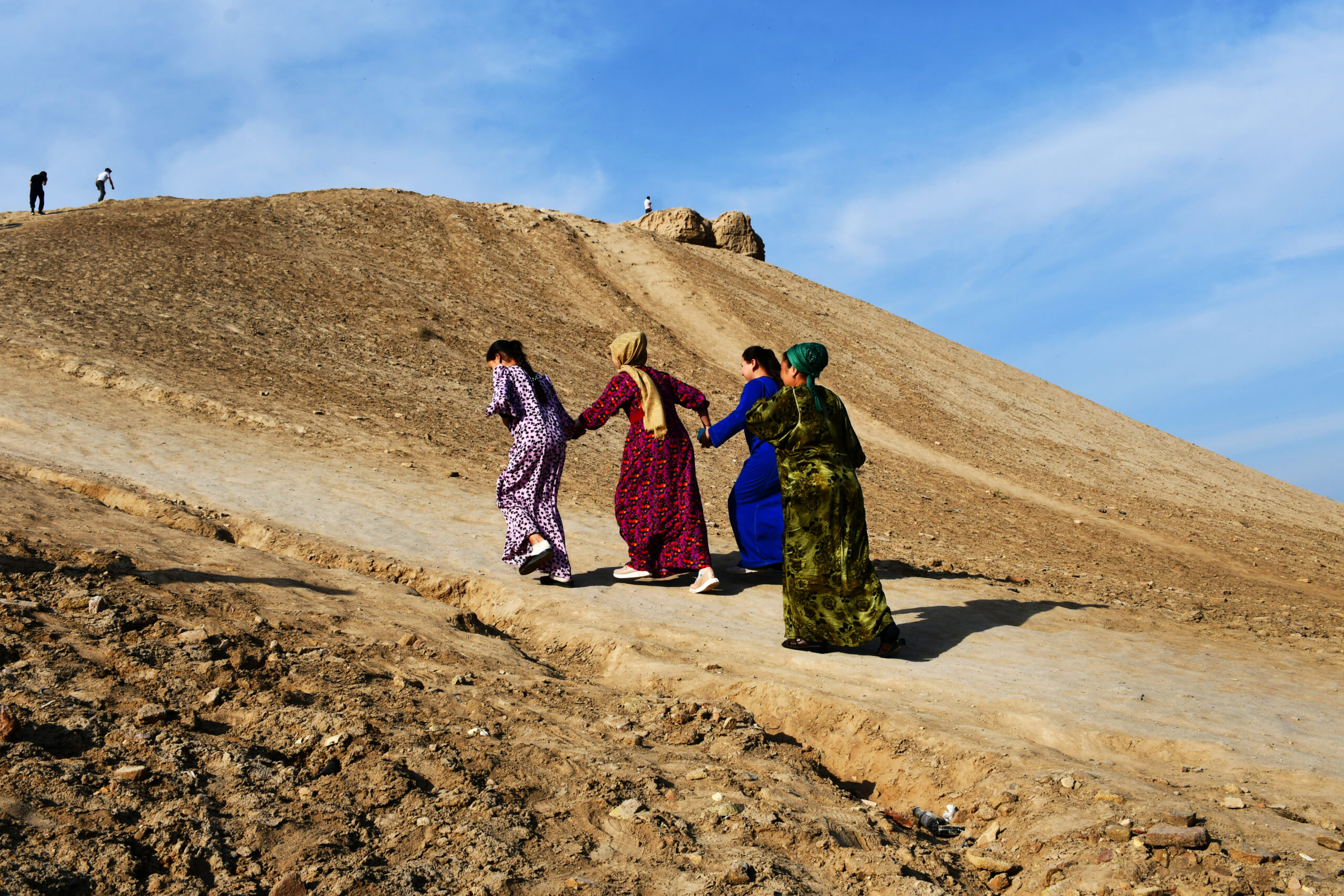 Μερικές εικόνες ακόμα κι επιστρέφουμε πάλι στο δρόμο με κατεύθυνση τη Ντασογκούζ στο βορρά. Θα φθάσουμε αργά τη νύχτα και με το πρώτο φως της ημέρας θα οδηγηθούμε ακόμη βορειότερα. Στην Κούνια Ουργκέντς, λίγα χιλιόμετρα μακριά από τα σύνορα. Μια περιοχή, όπου οι κάτοικοι είναι στην πλειοψηφία Ουζμπέκοι. Αγροτική περιφέρεια με πολλές καλλιεργήσιμες εκτάσεις, ζωντανά χωριά, μονόχωρα ταπεινά σπίτια με πράσινες στέγες και χωμάτινους δρόμους. Αυτό όμως που συγκεντρώνει το ενδιαφέρον στην περιοχή είναι τα μνημεία και η πνευματικότητα που αποπνέει η αρχαία πόλη. Κεντρικός σταθμός πάνω στον «Δρόμο του Μεταξιού», η Κούνια Ουργκέντς υπήρξε πόλη πλούσια και ισχυρή κι έδρα του Βασιλείου της Χορεσμίας. Χρονολογείται από τον 6ο και 7ο αιώνα π.Χ.