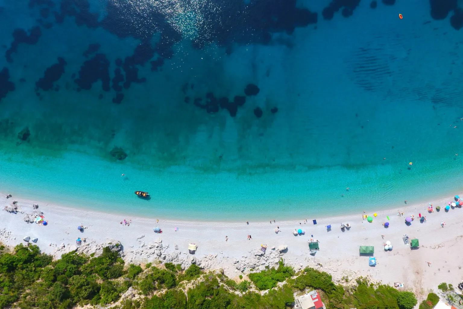 Βύθουρη: Η παραλία της Εύβοιας με τη γαλάζια θάλασσα και τη φυσική σκιά
