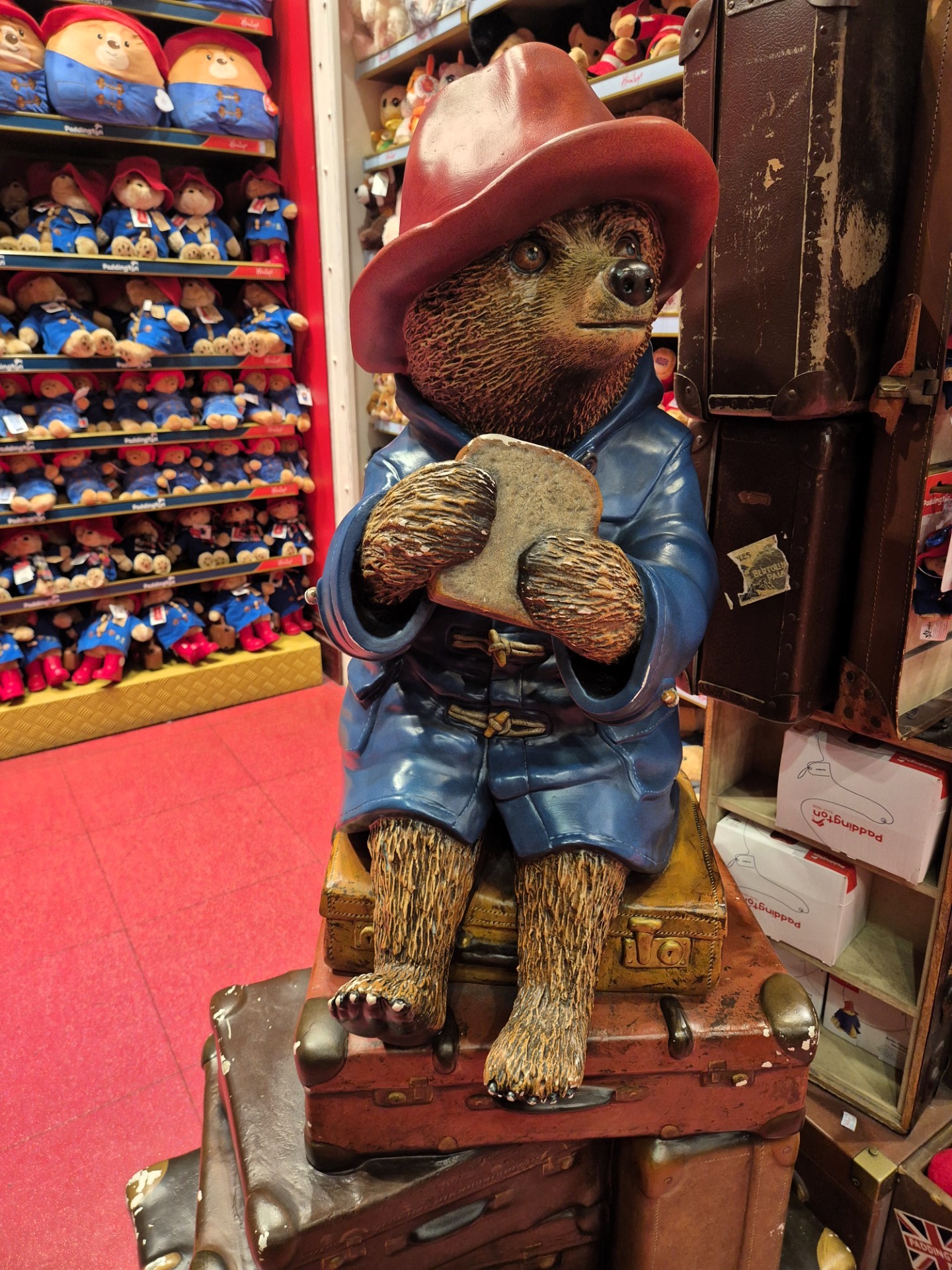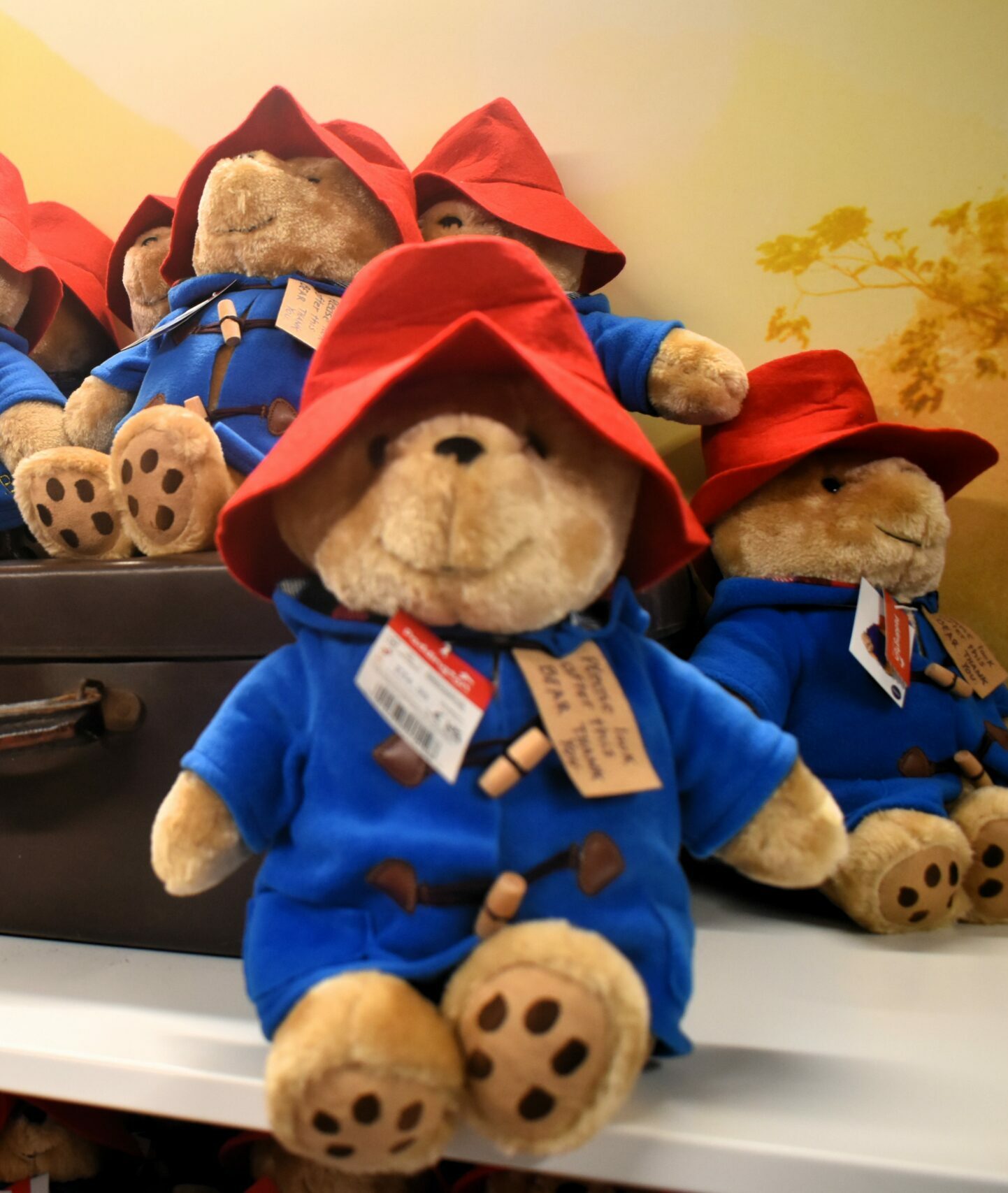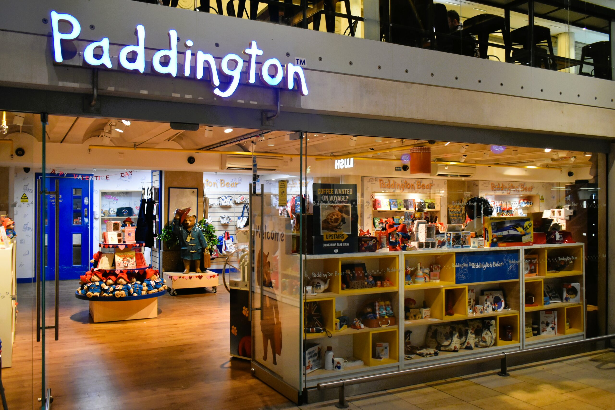 Όπως και με τα βιβλία, έτσι και τα τρυφερά ομοιώματα του Paddington, δεν θα μπορούσαν να λείπουν από τα εξειδικευμένα καταστήματα, τα φημισμένα παιχνιδάδικα του Λονδίνου. Ανεπανάληπτη εμπειρία ούτως ή άλλως για τα παιδιά και για όσους νοσταλγούν τα χρόνια της ανεμελιάς, το Hamley’s με πάνω από 250 χρόνια ιστορίας, ανήκει όχι μόνο στα παλαιότερα και καλύτερα καταστήματα παιχνιδιών της Ευρώπης, αλλά και σε εκείνη την κατηγορία μαγαζιών του Λονδίνου, όπου άνετα περνάς ολόκληρες ώρες χωρίς να το καταλάβεις. Εδώ, ο Paddington σταθερά κατέχει τη δική του προνομιακή θέση, όπου τον βρίσκουμε καταρχήν να ξαποσταίνει καθισμένος πάνω σε μια στοίβα βαλίτσες, τρώγοντας ένα ακόμη σάντουιτς μαρμελάδας. Εκατοντάδες λούτρινα αρκουδάκια με τη μορφή του γεμίζουν το αριστερό τμήμα του ισογείου του Hamley’s, κι αν δυσκολεύεστε να αποφασίσετε, ζητήστε τη βοήθεια των χαμογελαστών ξωτικών που τη γιορτινή περίοδο σκορπούν τη χαρά των Χριστουγέννων σε ολόκληρο το πολυώροφο κατάστημα.