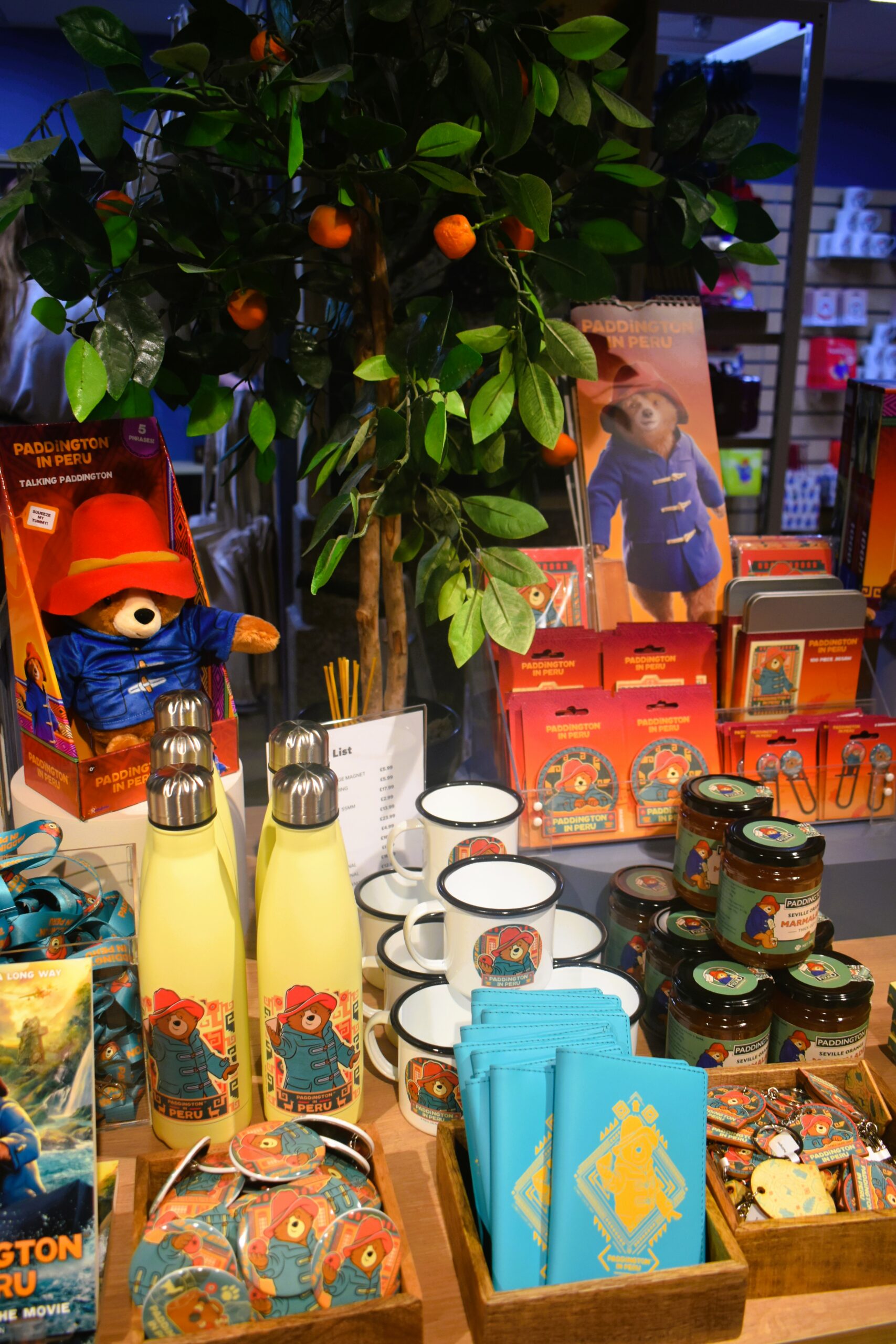 Σχολικά και είδη γραφικής ύλης, παζλ, παιχνίδια ακόμη και για βρέφη, T-shirts και φούτερ σε διάφορα σχέδια αλλά πάντα με την αξιαγάπητη φιγούρα του Paddington, μπρελόκ και κονκάρδες, κούπες και τσαγιέρες: μπορείτε εύκολα να γεμίσετε μια βαλίτσα αναμνηστικά και σουβενίρ, αλλά δύσκολα να συγκρατήσετε τα παιδιά σας μπροστά σε τόσα πραγματικά καλαίσθητα αναμνηστικά αντικείμενα.