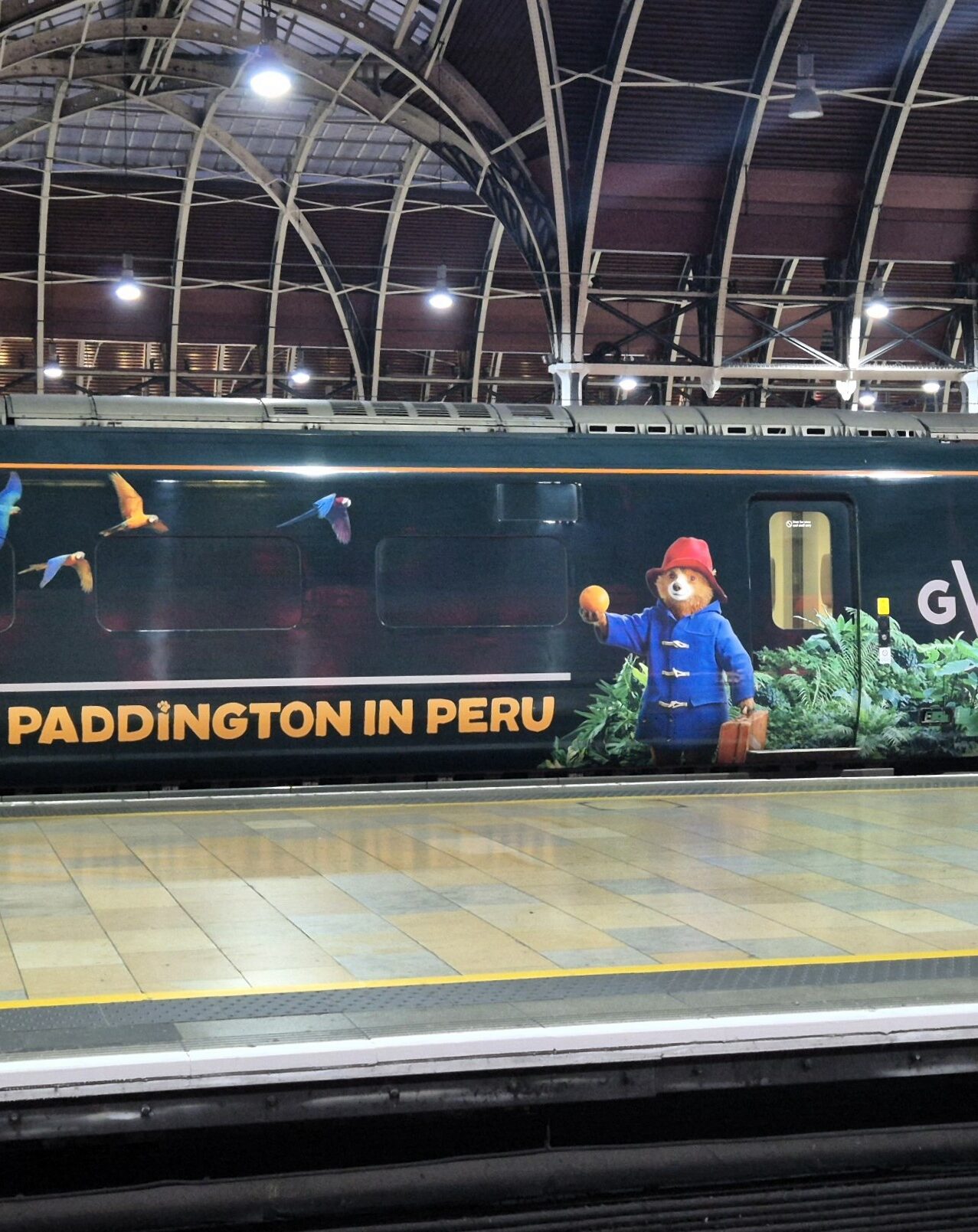 Σχεδόν δίπλα, ένα διθέσιο παγκάκι σε σχήμα ανοιχτού βιβλίου, εικονογραφημένου με τις περιπέτειες του Paddington, σας καλεί να ξαποστάσετε χαζεύοντας τα τρένα που πηγαινοέρχονται ντυμένα με τη μορφή του και σκηνές από τη νέα ταινία. Ρίξτε μια ματιά στην πράσινη αναθηματική πλάκα πάνω από το παγκάκι, η οποία μνημονεύει το αφήγημα του Michael Bond για το πως ο Paddington έφτασε στο συγκεκριμένο σταθμό αλλά και για τα γυρίσματα που έγιναν ακριβώς εδώ το φθινόπωρο του 2013, κι ύστερα αναζητήστε σουβενίρ στα δύο εξιδεικευμένα καταστήματα Paddington, εντός του σταθμού.