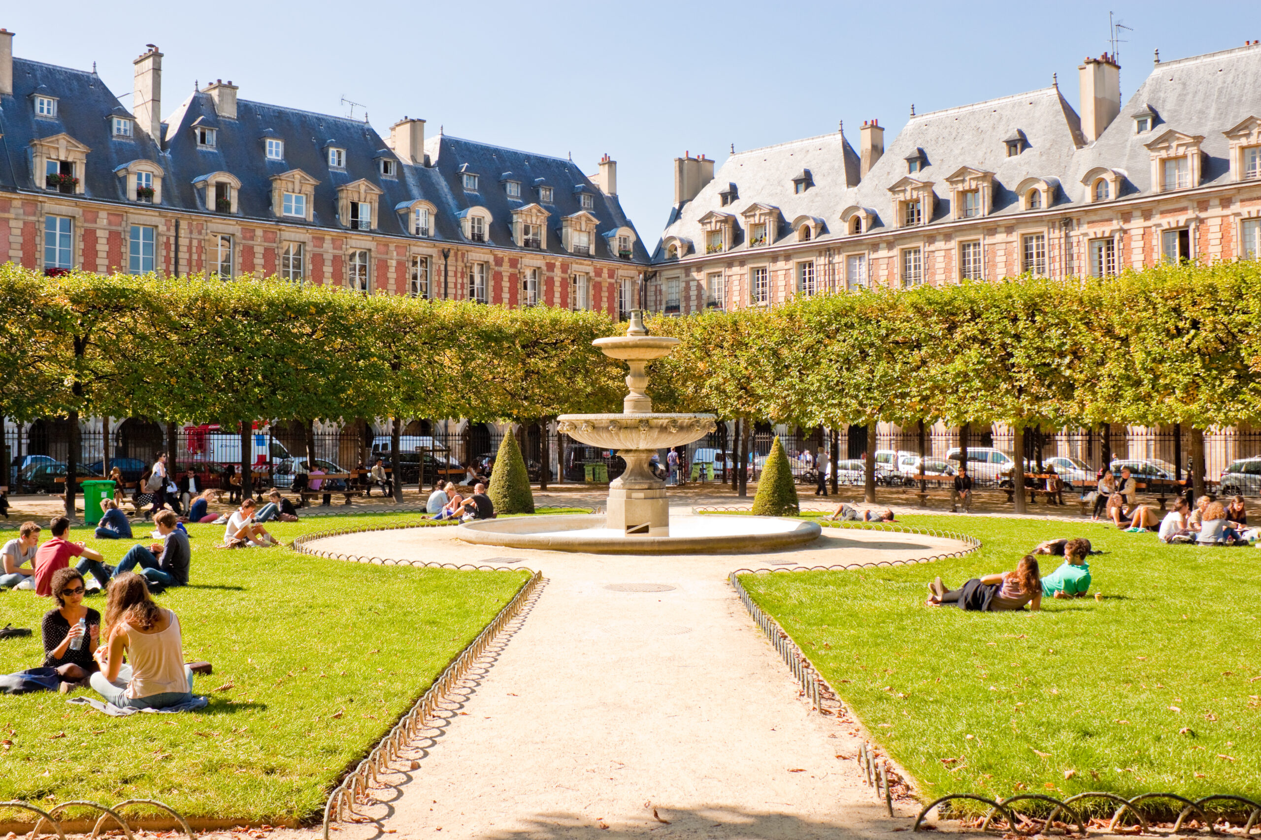 Η μικρή αυτή πλατεία του Παρισιού, με το καταπράσινο πάρκο στο κέντρο της, παραμένει μέχρι σήμερα σύμβολο της καλής ζωής στη γαλλική πρωτεύουσα. Ένα πραγματικό διαμάντι ανάμεσα στα πολυάριθμα και εντυπωσιακά αξιοθέατα της Πόλης του Φωτός, όπου η ιστορία συναντά τη φινέτσα σε καλαίσθητες στοές και κομψά κτήρια. Η Place des Vosges άρχισε να κατασκευάζεται το 1605, στο σημείο όπου βρισκόταν παλαιότερα το βασιλικό συγκρότημα Hôtel des Tournelles, το οποίο για αιώνες λειτουργούσε ως κατοικία των Γάλλων βασιλέων και της αυλής τους. Εκεί, το 1559, πέθανε ο βασιλιάς Ερρίκος Β΄, ύστερα από σοβαρό τραυματισμό που υπέστη. Μετά τον θάνατό του, η σύζυγός του, βασίλισσα Αικατερίνη των Μεδίκων, διέταξε να γκρεμιστεί ολόκληρο το κτίσμα που της «θύμιζε οικεία κακά» και ζήτησε από τη βασιλική αυλή να μετακινηθεί στο Λούβρο.