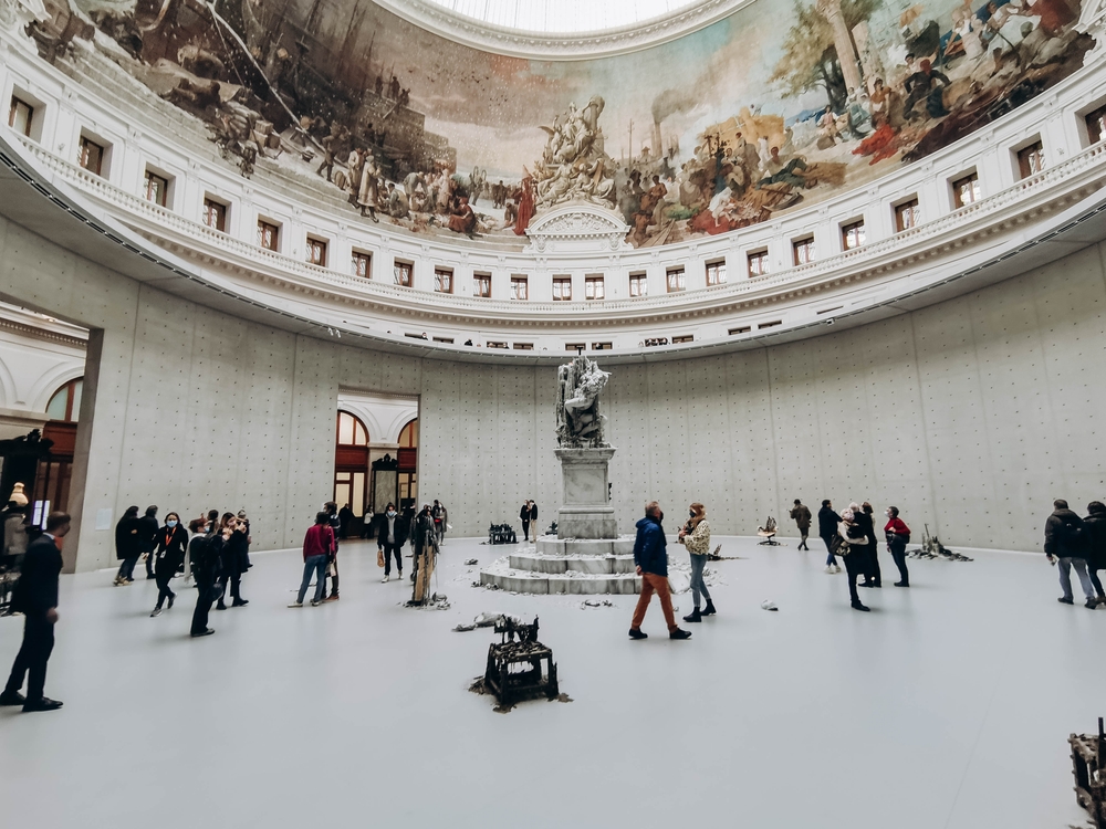 Λίγα βήματα μακριά από τη Rue de Rivoli και το Μουσείο του Λούβρου, η ιδιαίτερα ενδιαφέρουσα Bourse de Commerce ξεχωρίζει ως ένας από τους πιο θαυμαστούς χώρους τέχνης στο Παρίσι. Πρόκειται για έναν χώρο που σε καλεί να αφεθείς σε αυτόν, αφιερώνοντας χρόνο σε κάθε έκθεμα. Στεγασμένη σε ένα εντυπωσιακό, κυκλικό κτήριο με ιστορία αιώνων, το οποίο ανασχεδιάστηκε από τον αρχιτέκτονα Tadao Ando, η Bourse de Commerce συνδυάζει με σχεδόν μαγικό τρόπο το παλιό με το σύγχρονο. Από τη στιγμή που θα περάσετε το κατώφλι της, γίνεται αισθητό ότι πρόκειται για έναν χώρο που τιμά την ιστορία του, ενώ κοιτά σταθερά προς το παρόν και το μέλλον της σύγχρονης τέχνης.