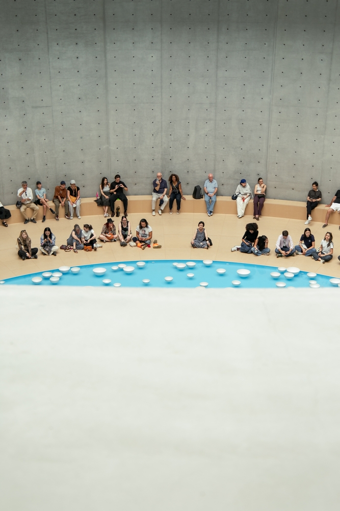 Η εκπληκτική συλλογή του Γάλλου συλλέκτη François Pinault αποτελεί τη μόνιμη έκθεση του μουσείου και δεν ενδείκνυται για σύντομη επίσκεψη. Αντίθετα, ενθαρρύνει τον επισκέπτη να παρατηρήσει και να αφουγκραστεί τη σχέση ανάμεσα στα έργα τέχνης και τον ίδιο τον χώρο. Το φυσικό φως που διαχέεται από τον θόλο, οι καμπύλες γραμμές και οι λιτές παρεμβάσεις του Ando δημιουργούν ένα περιβάλλον όπου τα έργα αναδεικνύονται με φυσικό τρόπο.