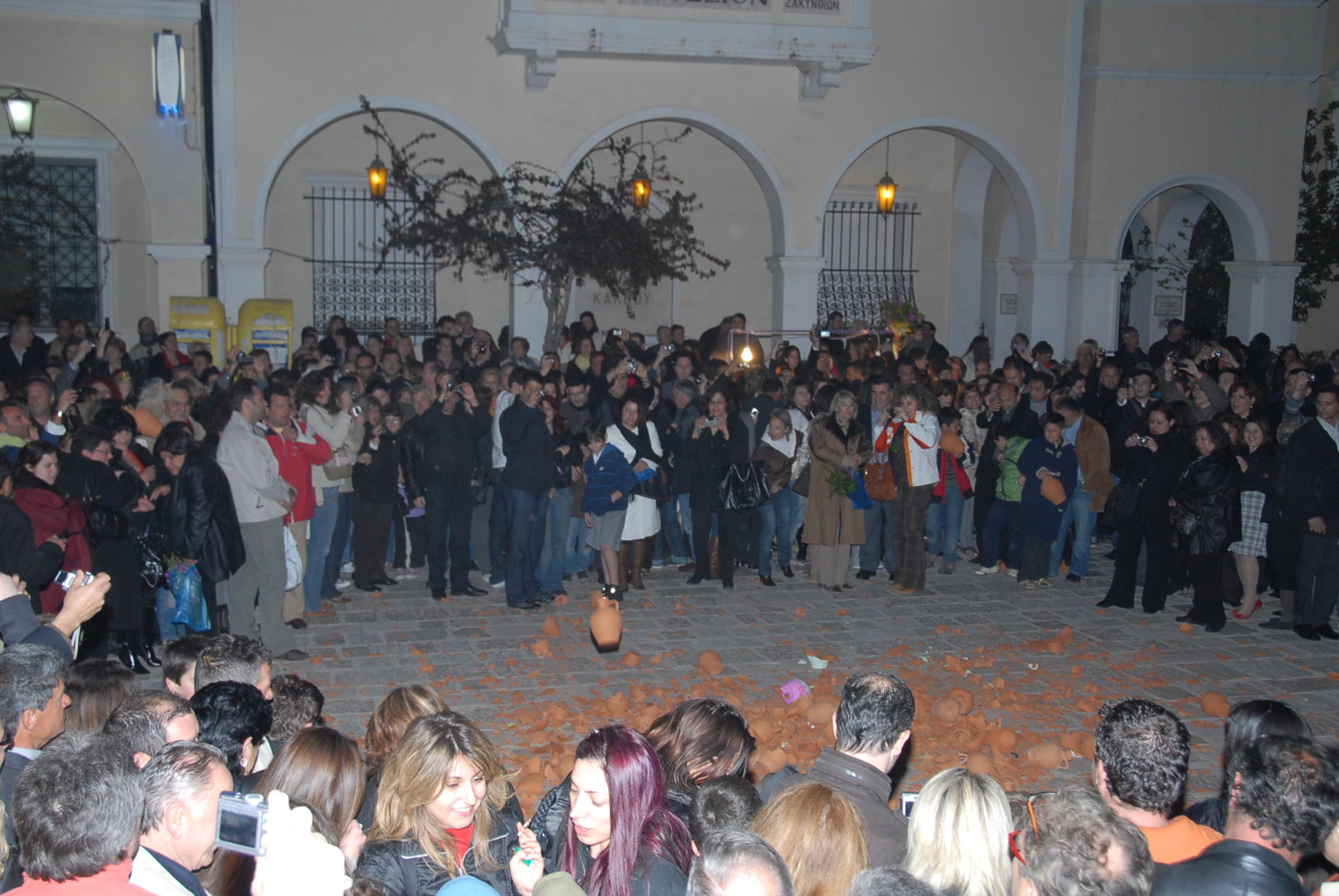 Η περιφορά αυτή συνοδεύεται από πένθιμα εμβατήρια των φιλαρμονικών του νησιού, όπως ο “Αμλετ”, το πένθιμο εμβατήριο του Ιταλού συνθέτη Faccio, που από παράδοση παίζεται από την Παλαιά φιλαρμονική, το “Calde Lacrime” (καυτά δάκρυα) του άλλου Ιταλού συνθέτη Michelli από την φιλαρμονική Μάντζαρος και τέλος από την Φιλαρμονική Καποδίστριας το πένθιμο εμβατήριο από την Ηρωική του Μπετόβεν. Ακολουθεί το γνωστό έθιμο με τα κανάτια, ενώ νωρίς το πρωί, την Κυριακή του Πάσχα, θα γίνει η περιφορά της εικόνας της Ανάστασης φιλαρμονικές, σχολεία, προσκόπους και χορωδίες.