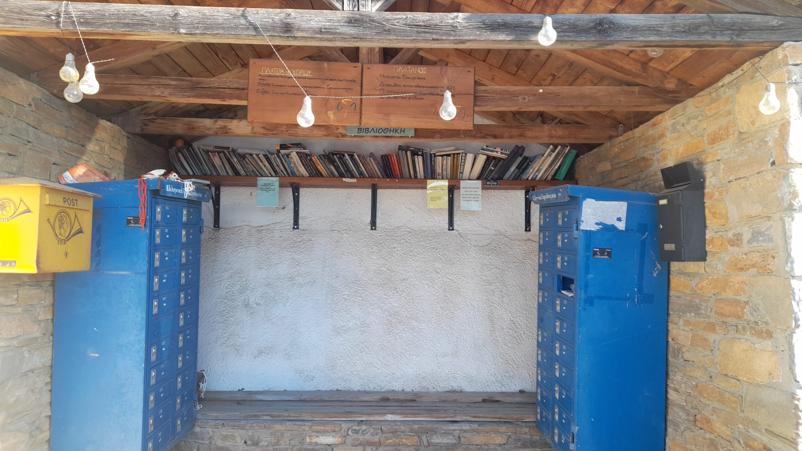 Την τελευταία μέρα ξεκινάμε για το Φεστιβάλ Φιρικιού στη Βυζίτσα. Ωστόσο, κάνουμε μια στάση στις Πινακάτες. Εδώ, μια στάση λεωφορείου έχει μετατραπεί σε δανειστική βιβλιοθήκη η οποία διαθέτει και αγγλικούς τίτλους παρακαλώ. Ακριβώς από κάτω, βρίσκεται η μικρή αλλά πολύ ατμοσφαιρική πλατεία που αρκεί ένας μεγάλος πλάτανος για να της δώσει σκιά.
